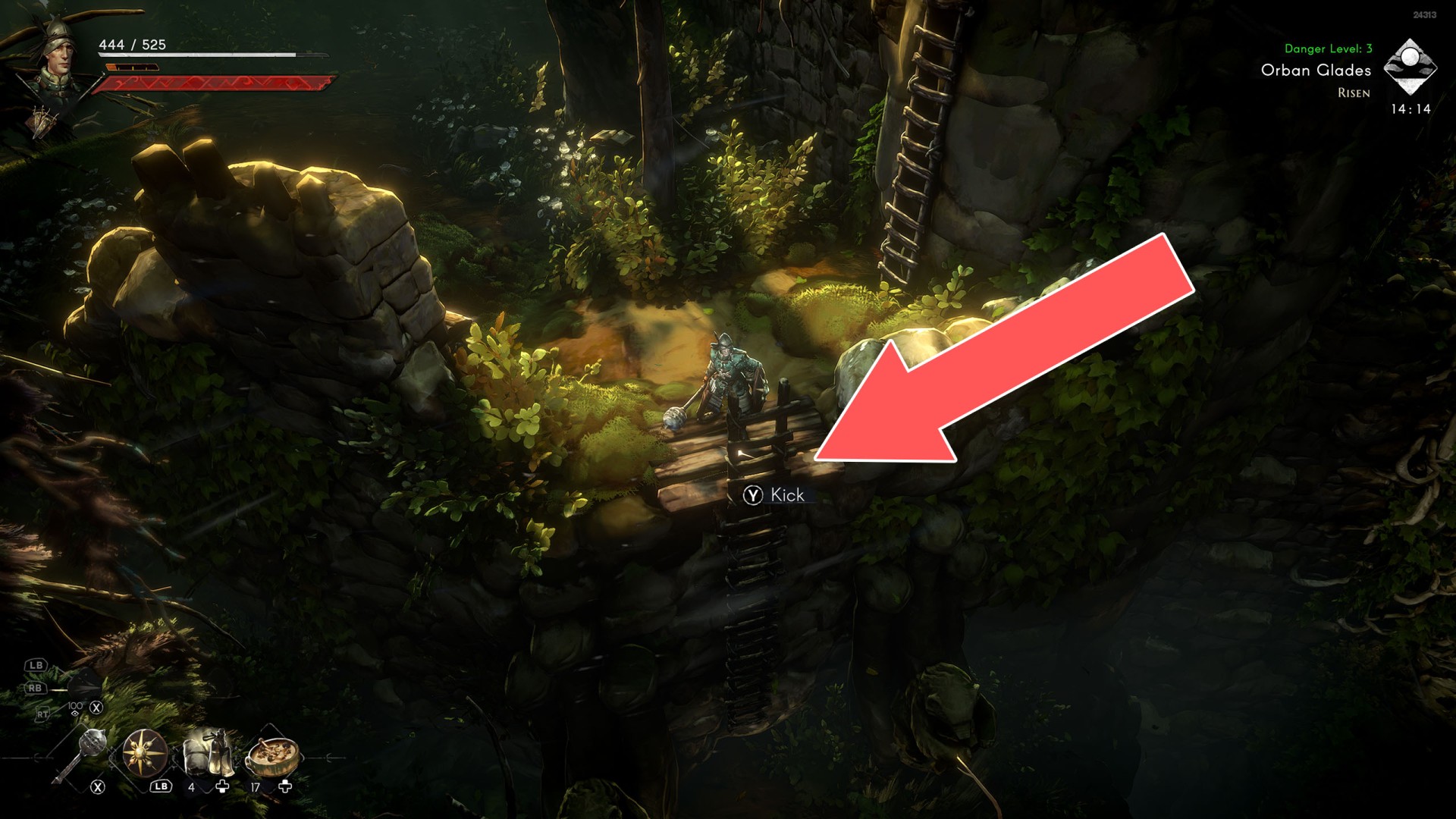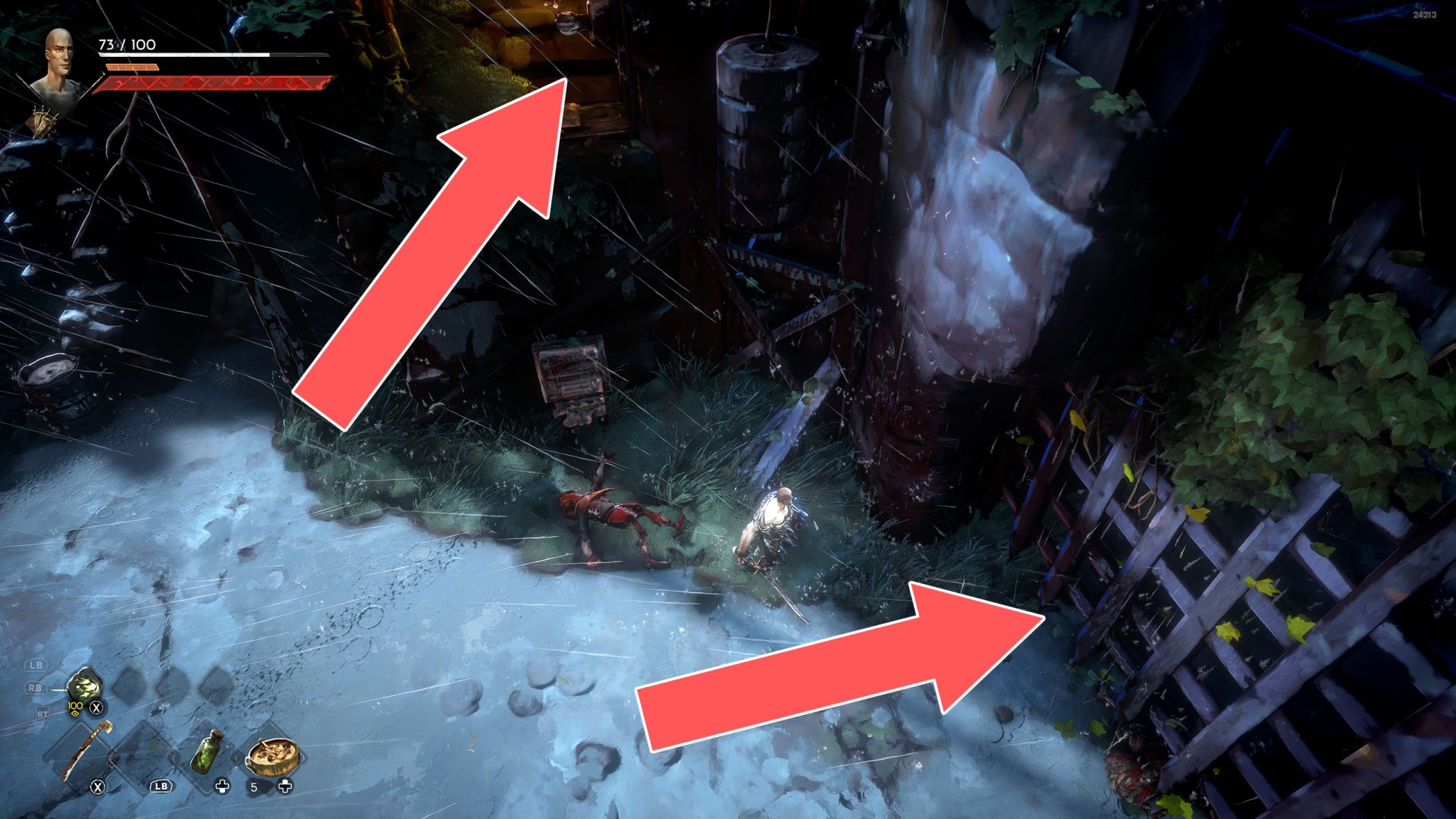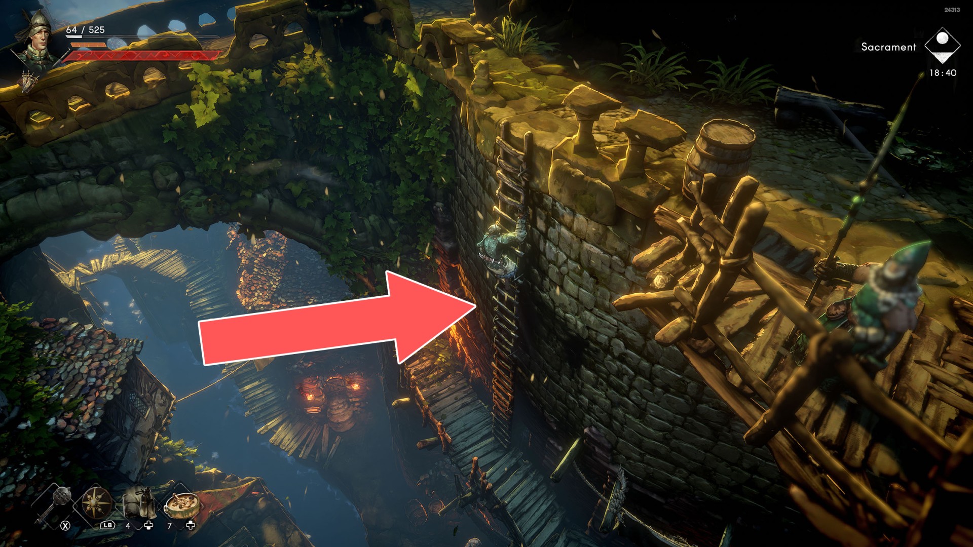 Ladders, creepers and other such objects on which the player can climb to a higher or lower level, sometimes also horizontally. Some of the ladders are raised, so in this case you will need to lower them first. To do this, you need to find a way to approach them at the top and then kick them down.