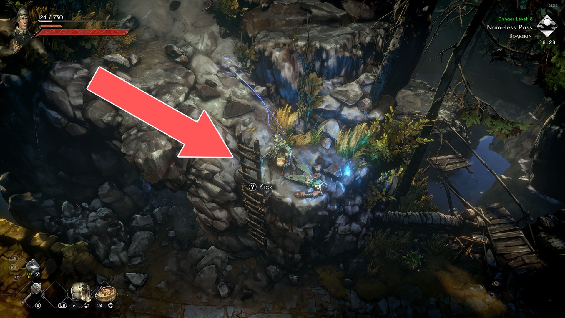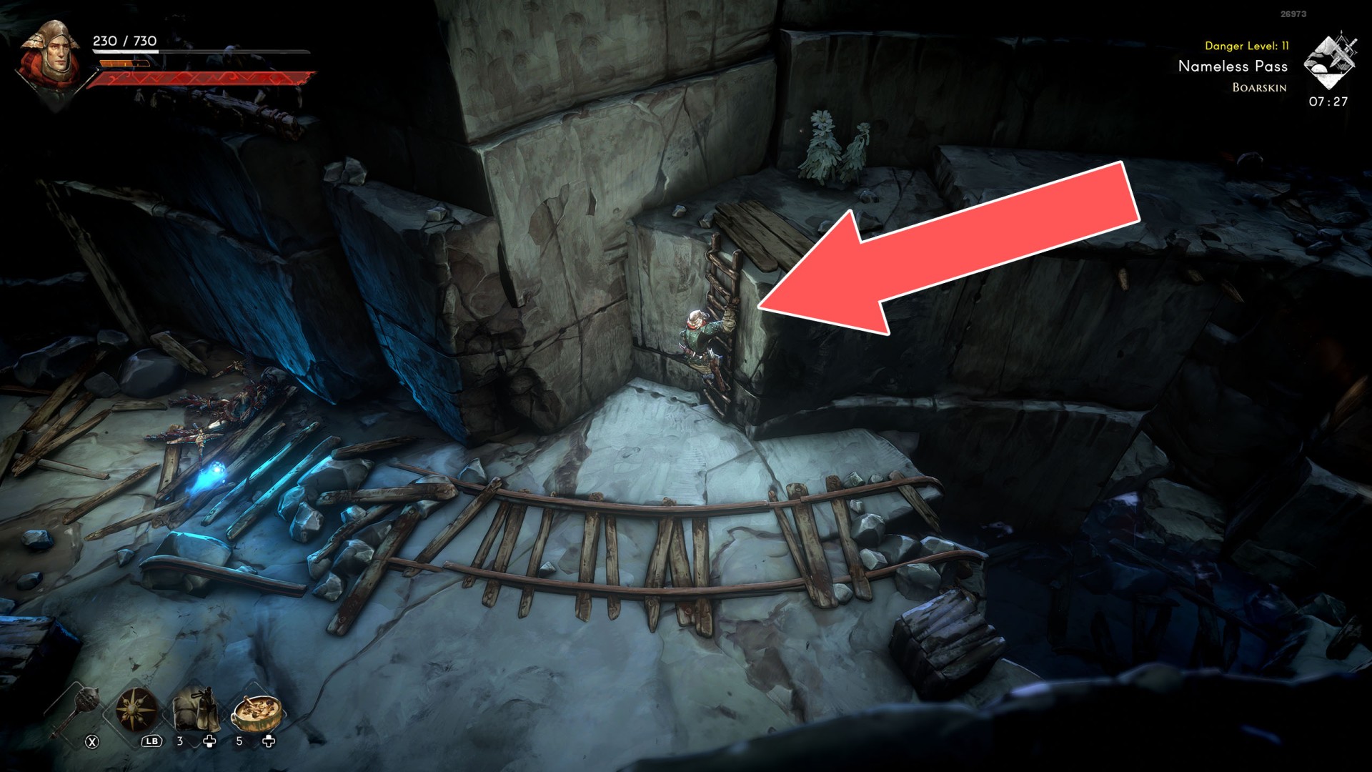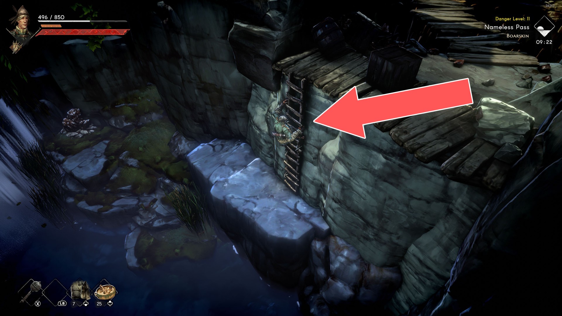 Ladders, creepers and other such objects on which the player can climb to a higher or lower level, sometimes also horizontally. Some of the ladders are raised, so in this case you will need to lower them first. To do this, you need to find a way to approach them at the top and then kick them down.