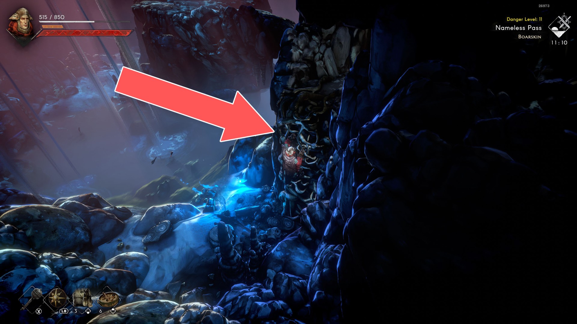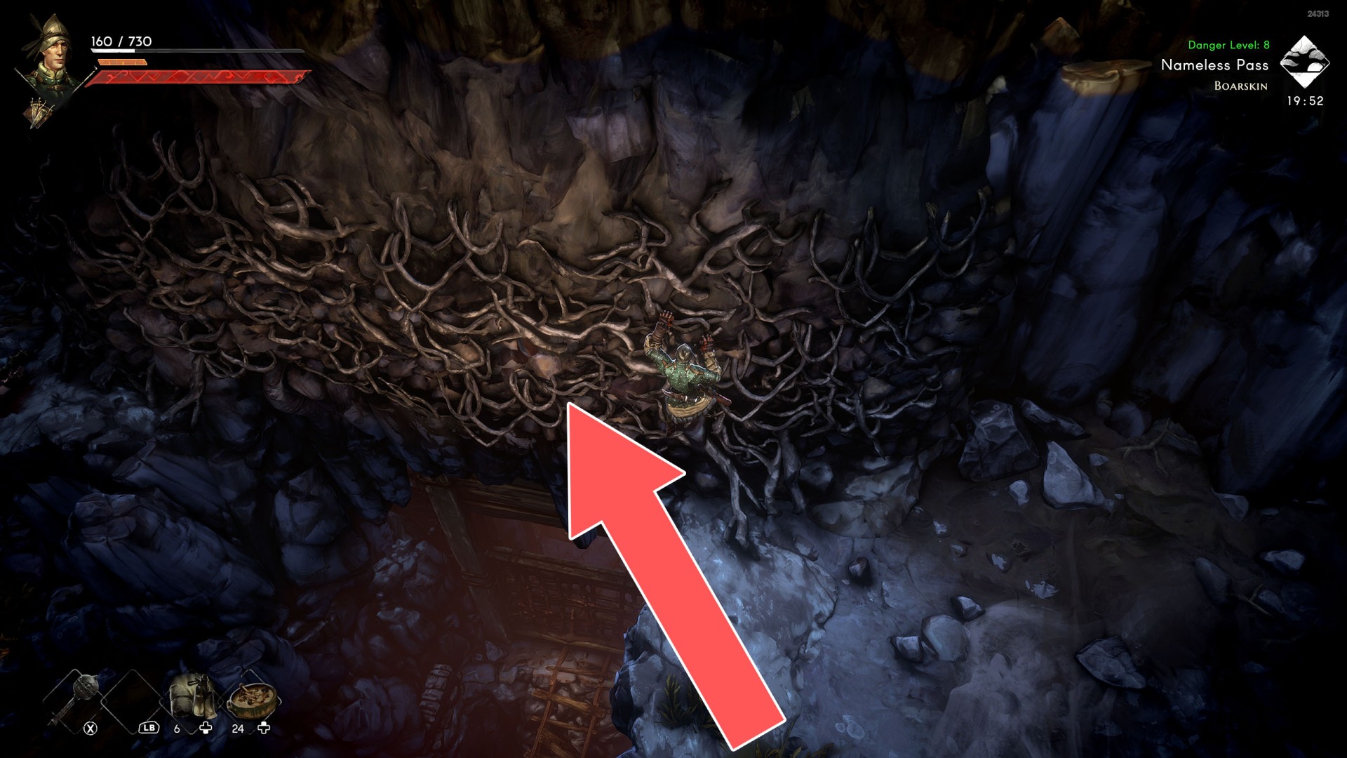 Show the mapIt can be destroyed. Just hit it a few times with the weapon you have and you will make a passage into the cave.