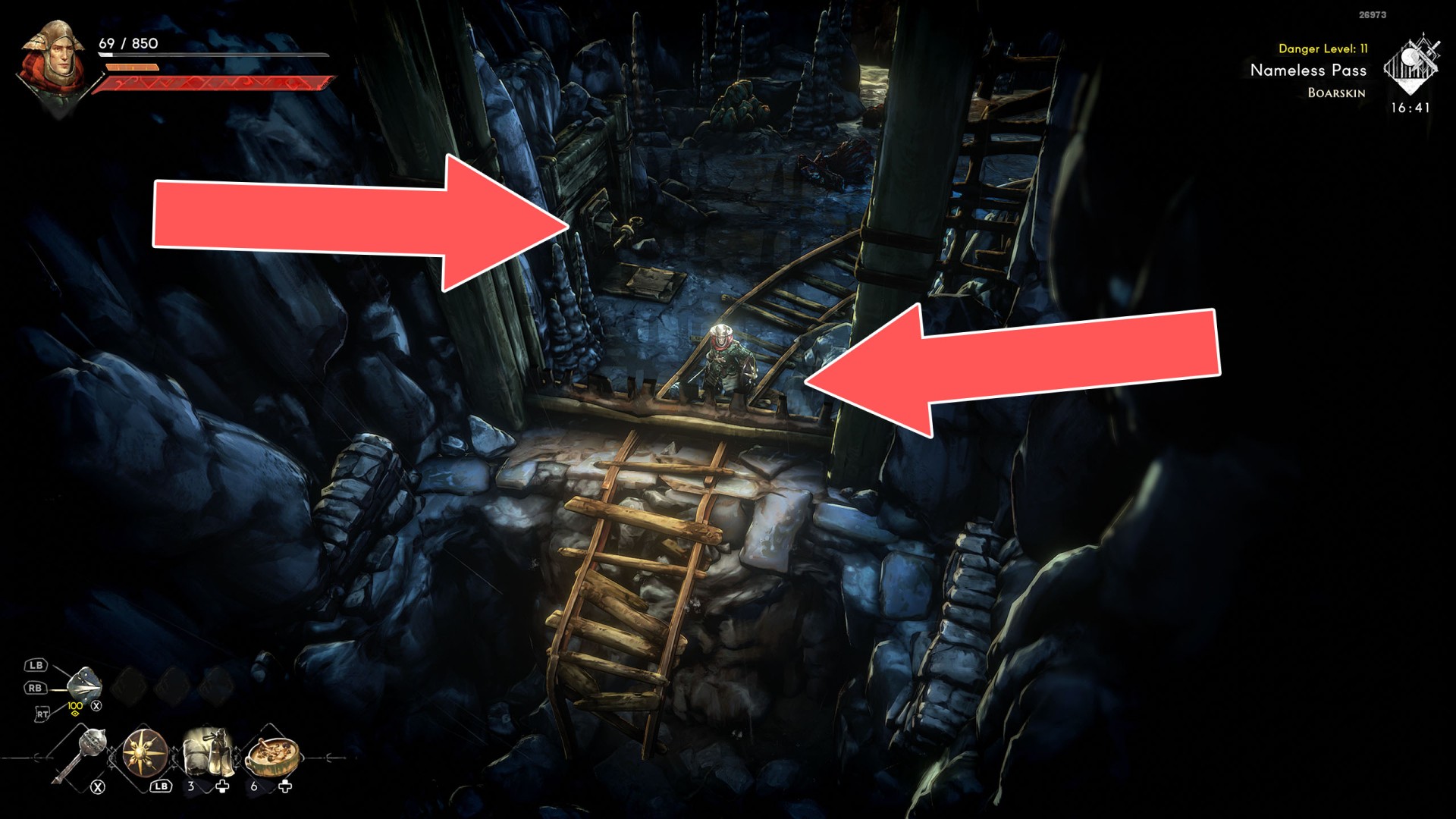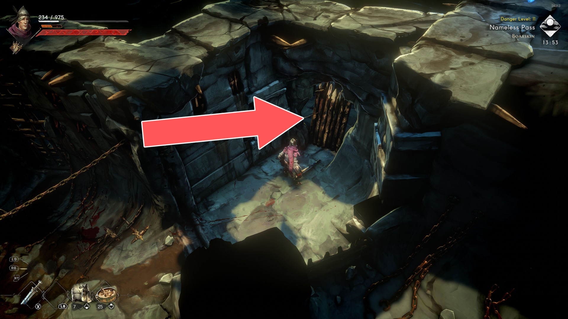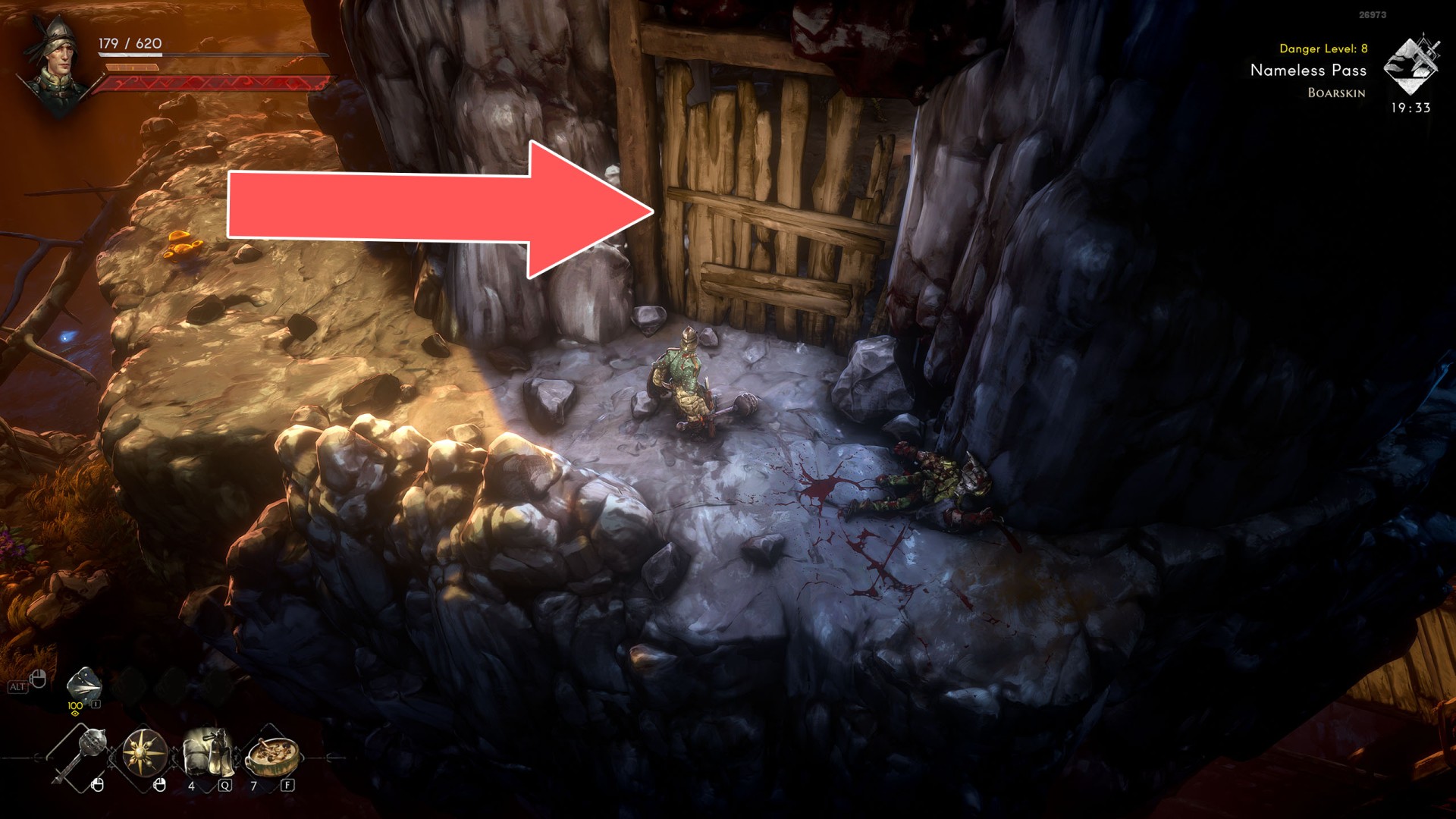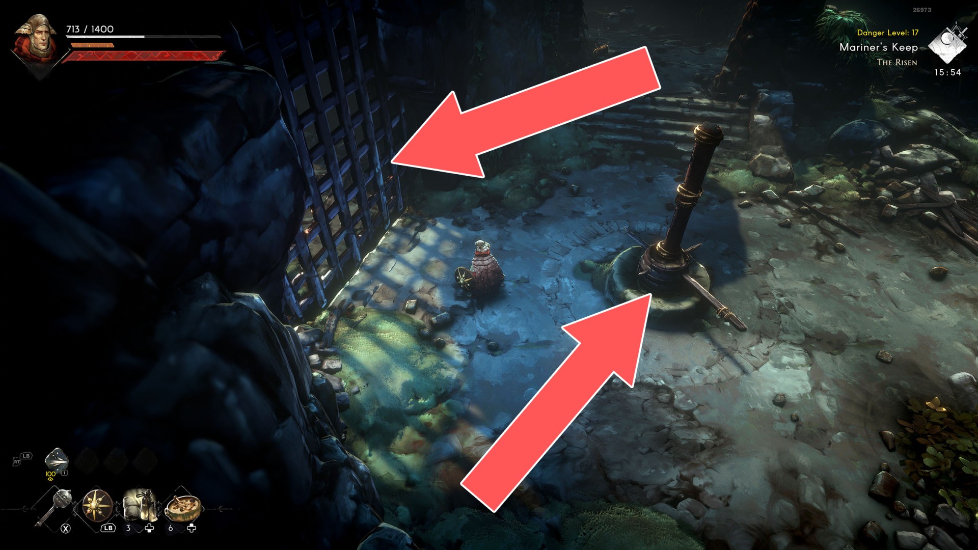 Various passageways, for example, closed doors or gates where you have to find a way to open them. Sometimes you will have to find the right key, sometimes they can only be unlocked from one of the sides. In some cases, all you have to do is use a weapon and destroy them.