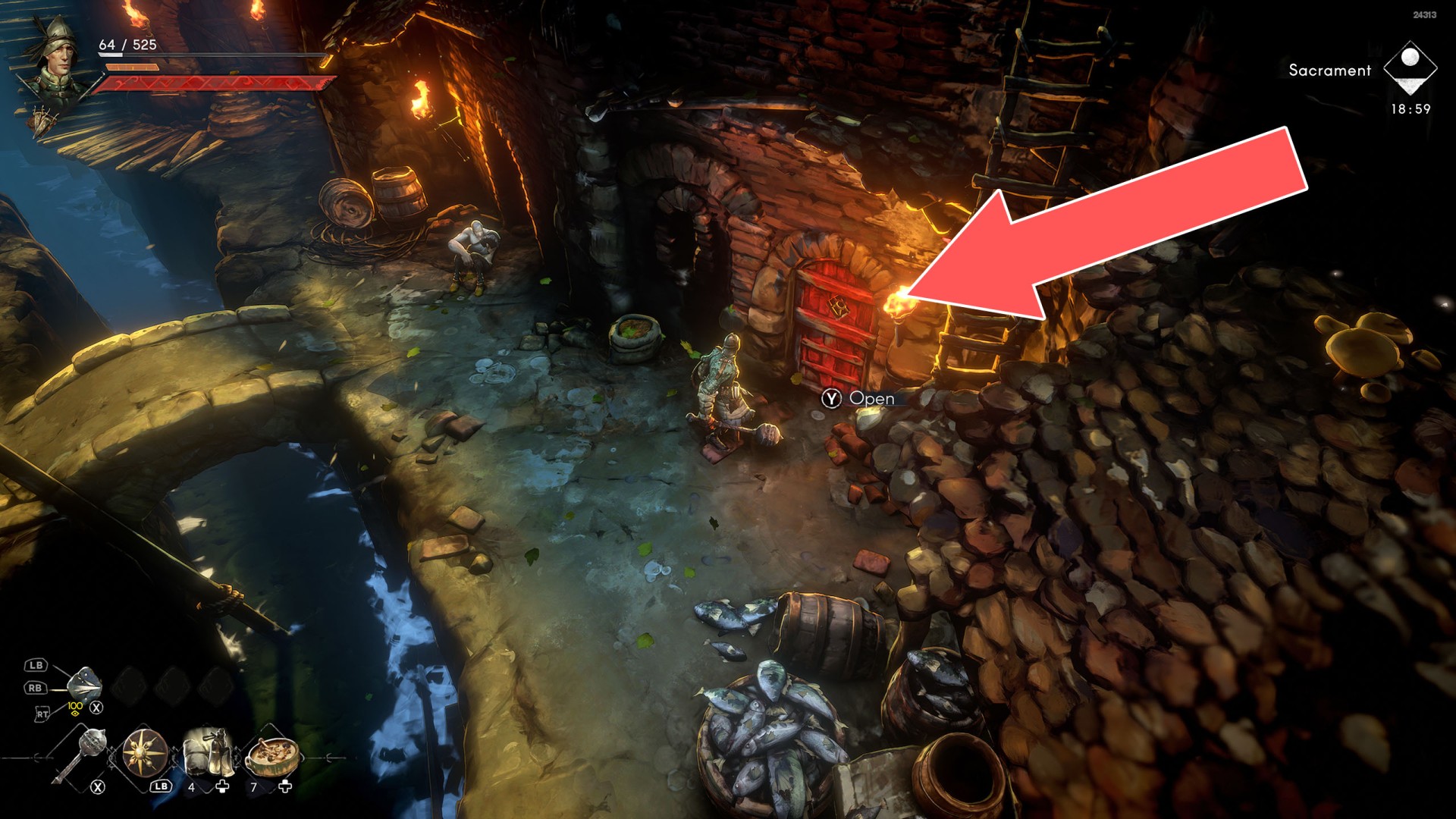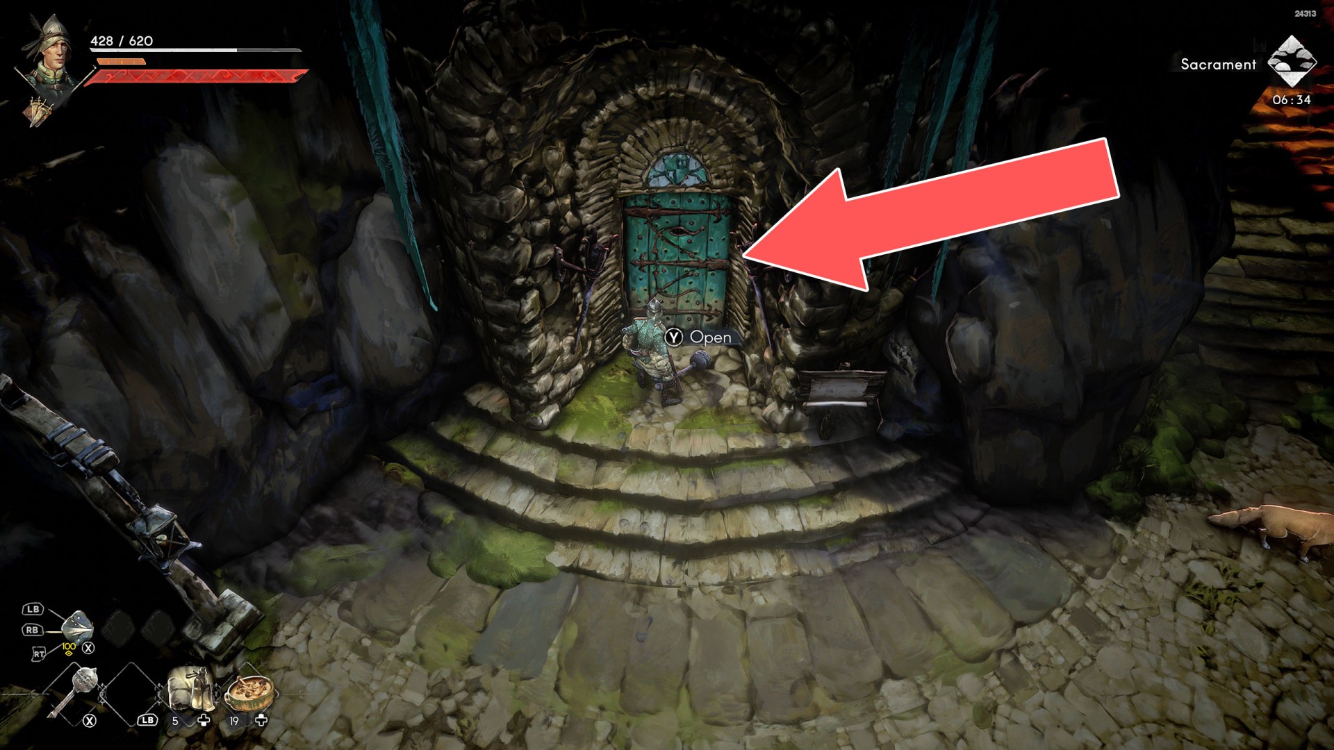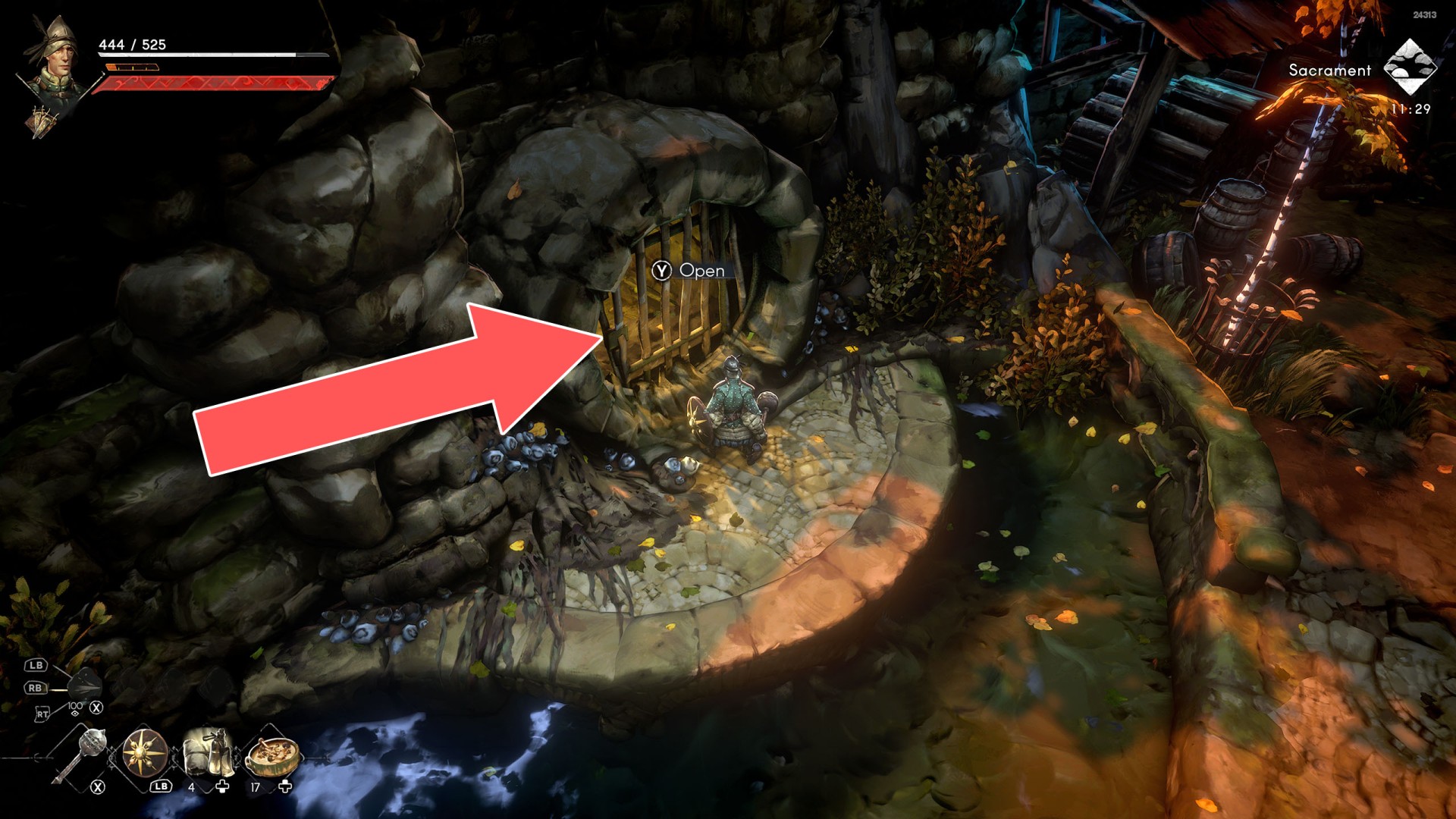 Show the mapThis gate can be opened from the inside. You can do this after your first visit to The Black Trench, when you are leaving this dungeon.