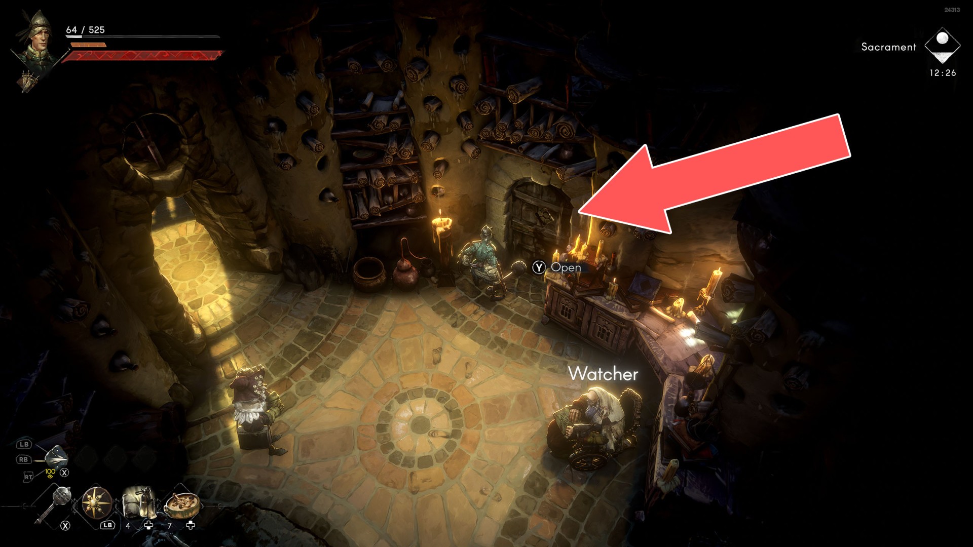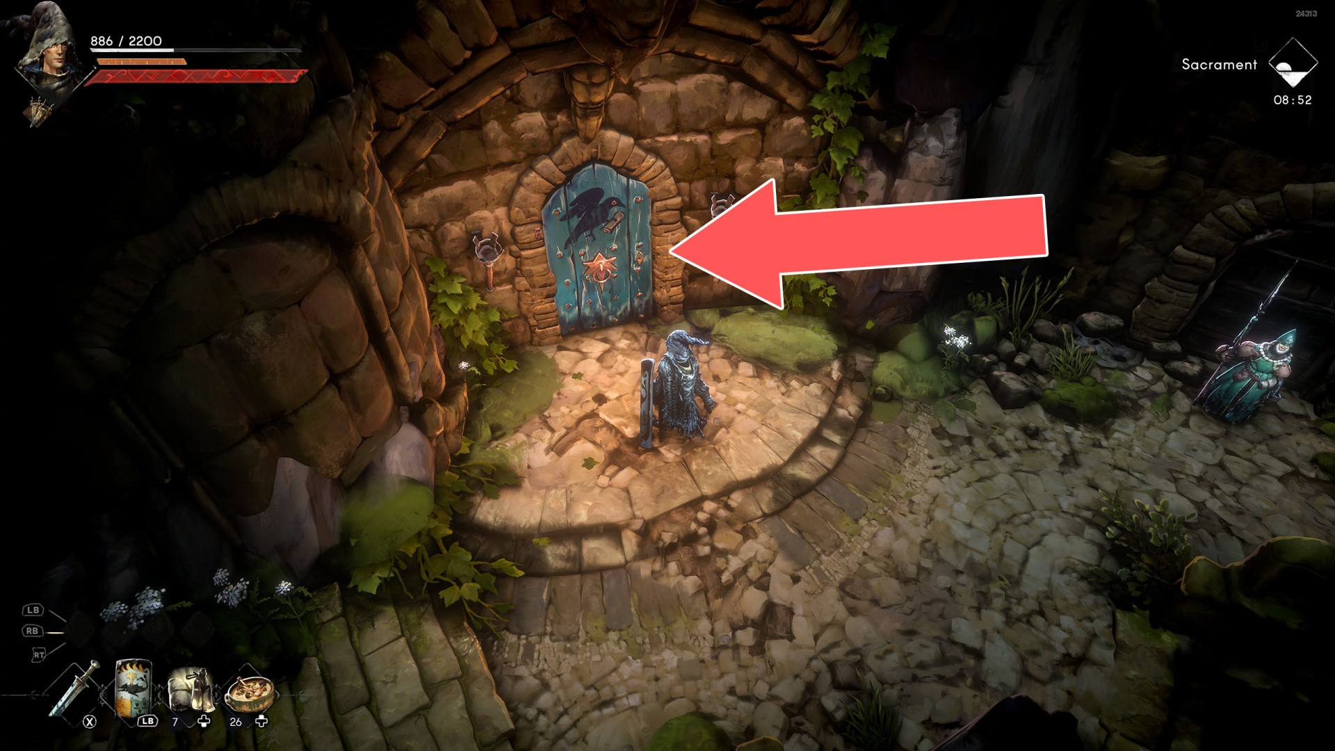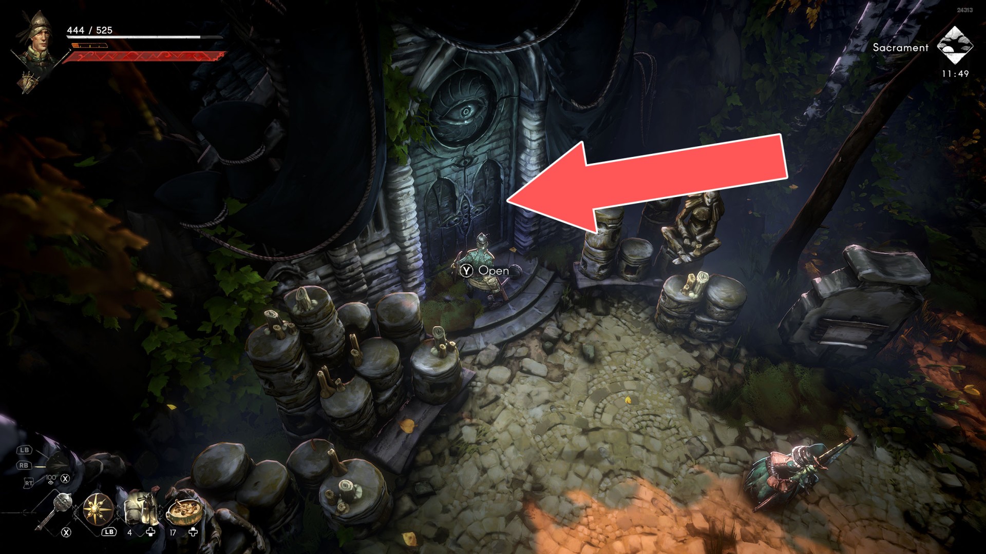 Show the mapThis gate can be opened from the inside. You can do this after your first visit to The Black Trench, when you are leaving this dungeon.