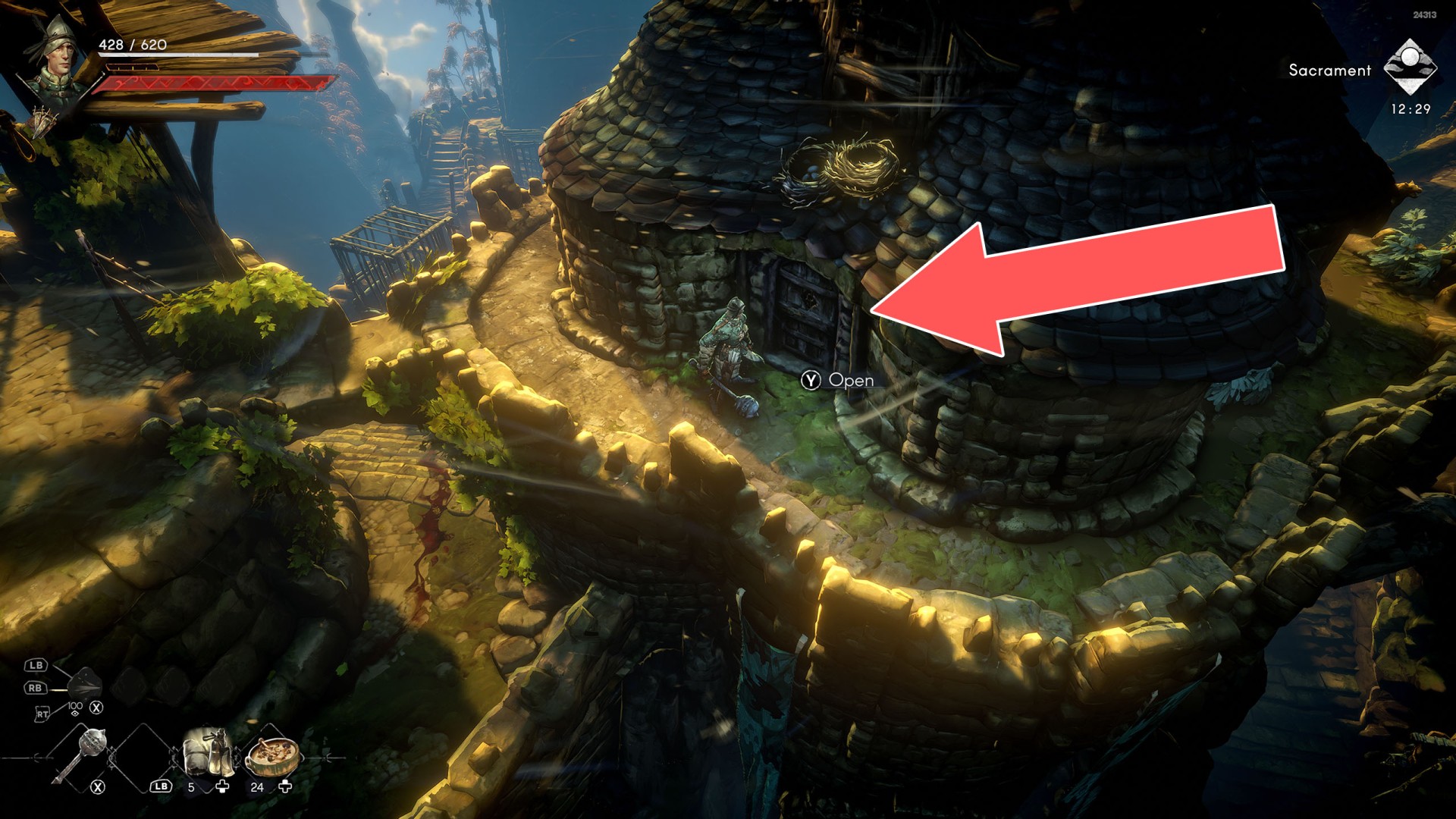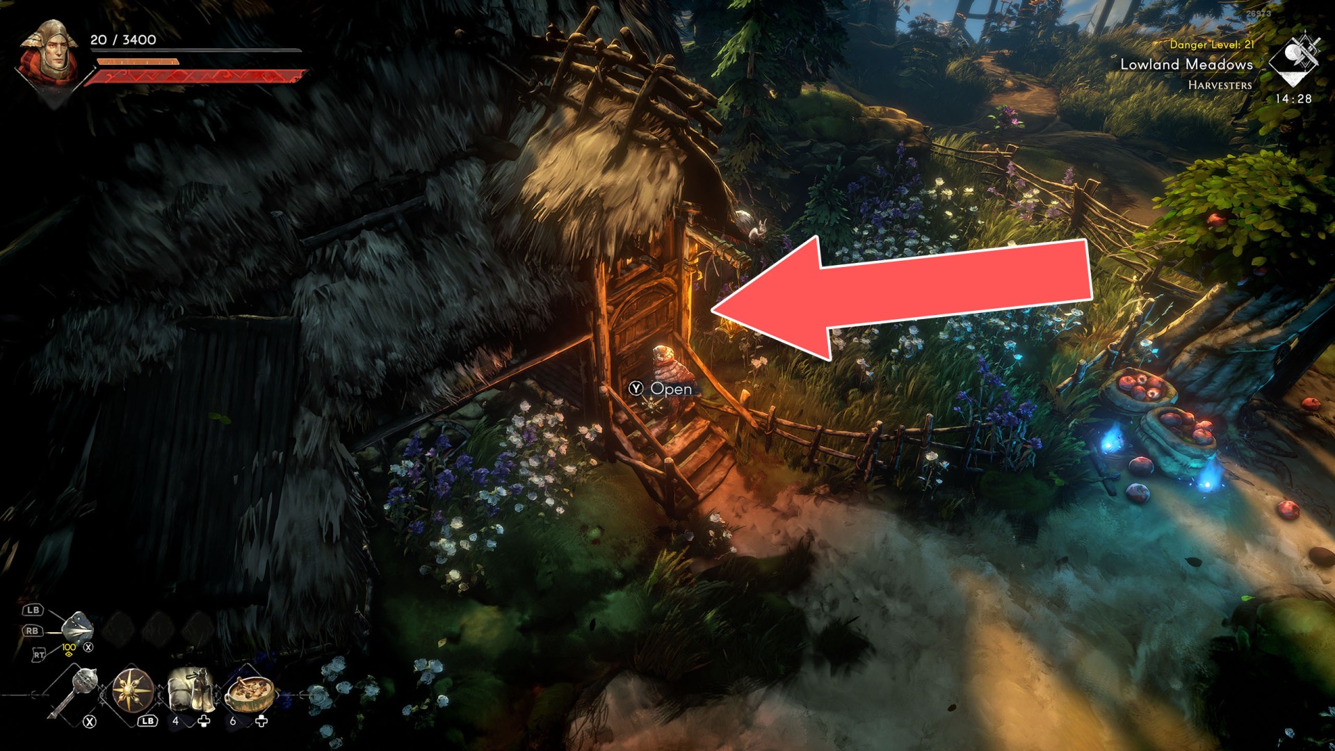 Show the mapTo use this entrance, you must first talk to Danos (Builder) and repair the stairs leading to the quarters.