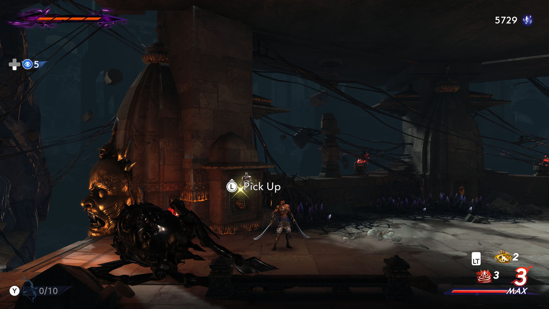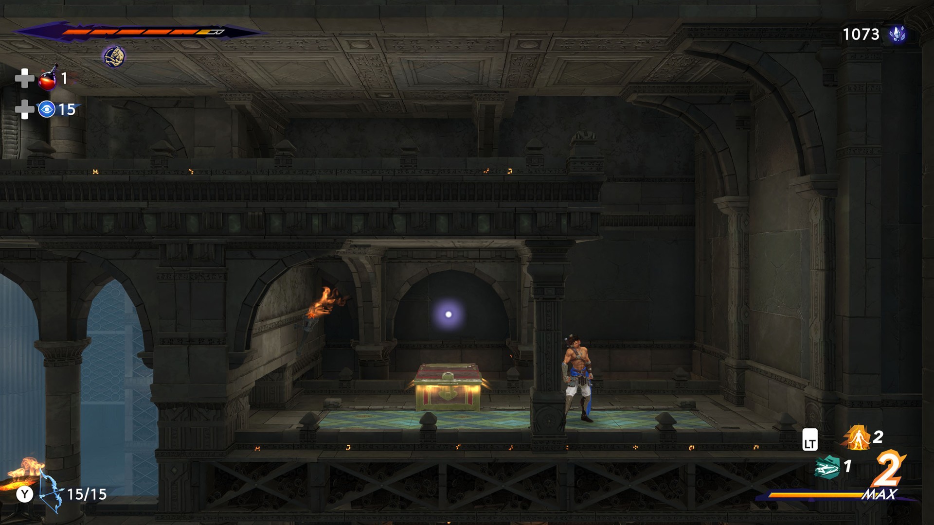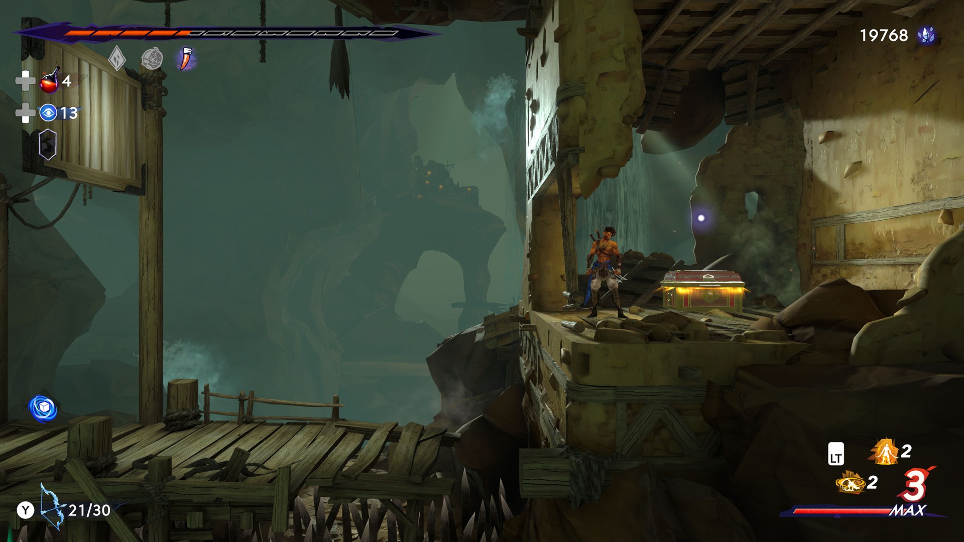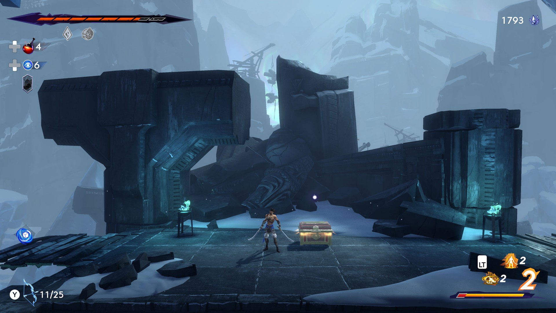 Show the mapMysterious Chest Puzzle (8). Place the "Shadow of the Simurgh" marker in front of one of the face plates so that it lights up, and jump in front of the other face plate so that they both light up at the same time. It counts as The Depths Valuable Item.