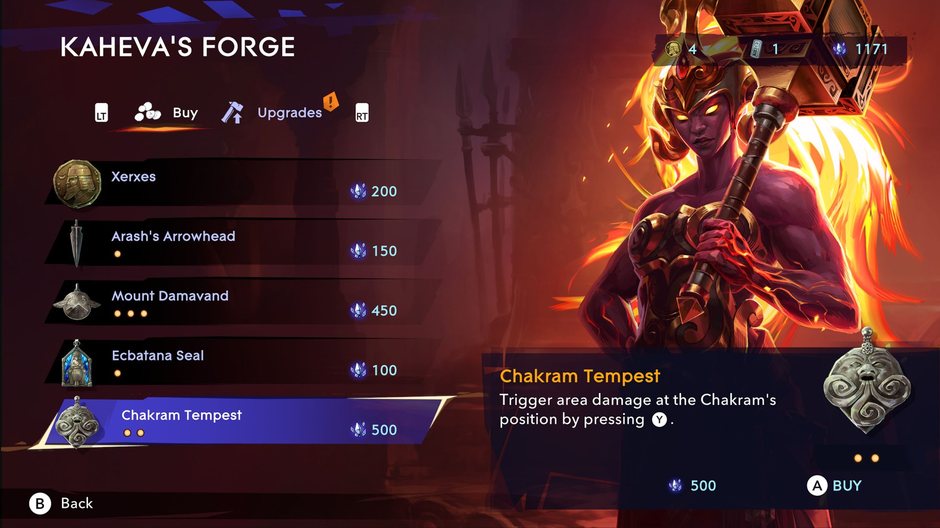 Slots: 2. Effect: Trigger area damage at the Chakram's position by pressing (Y). Each hit increases the amount of health restored once the Chakram has returned.