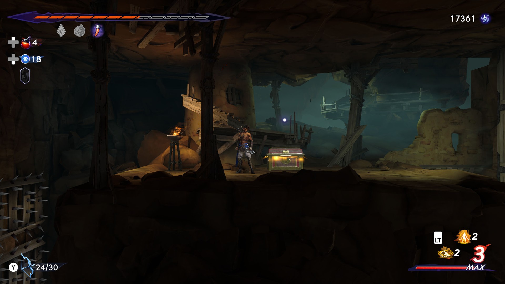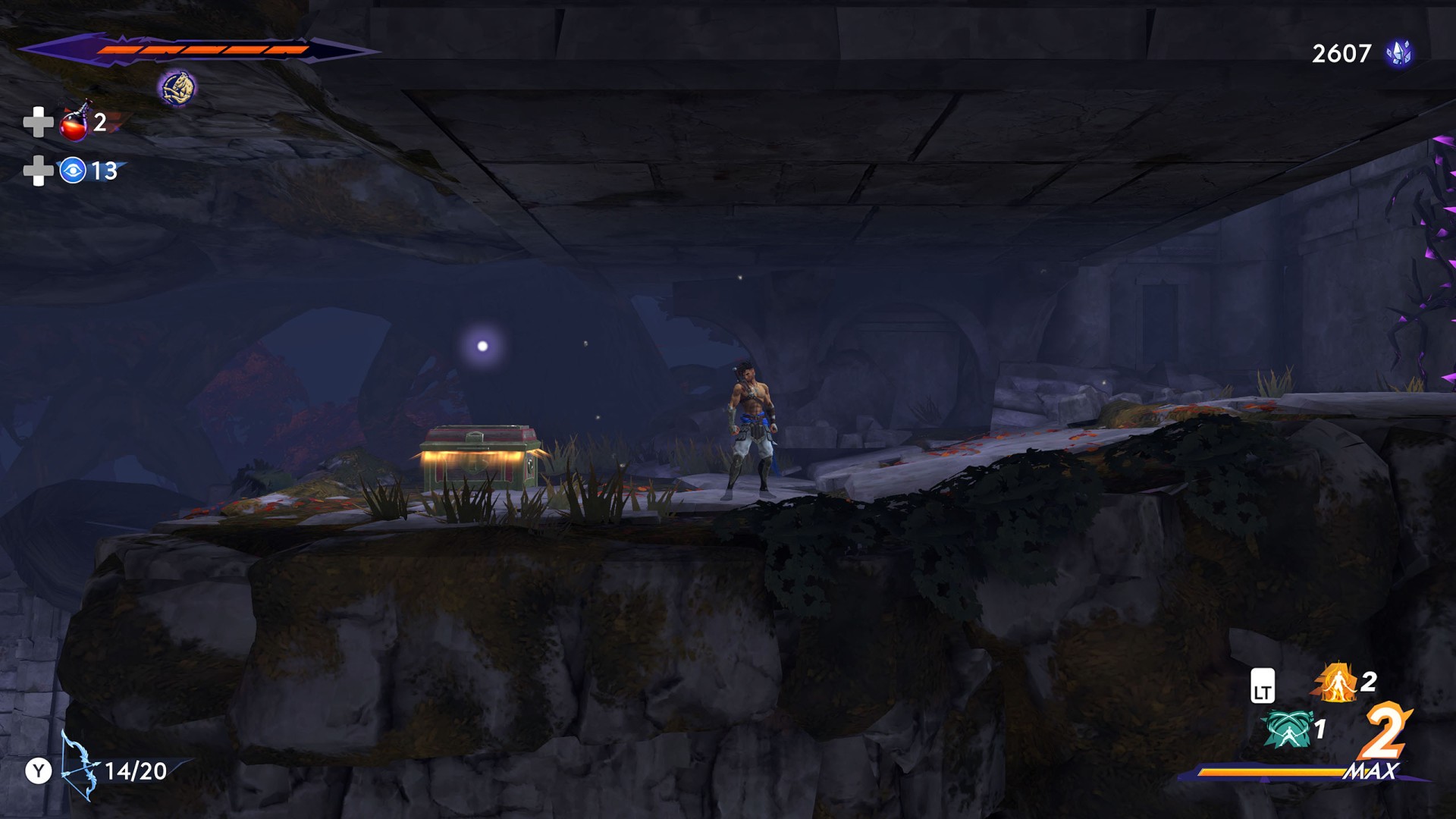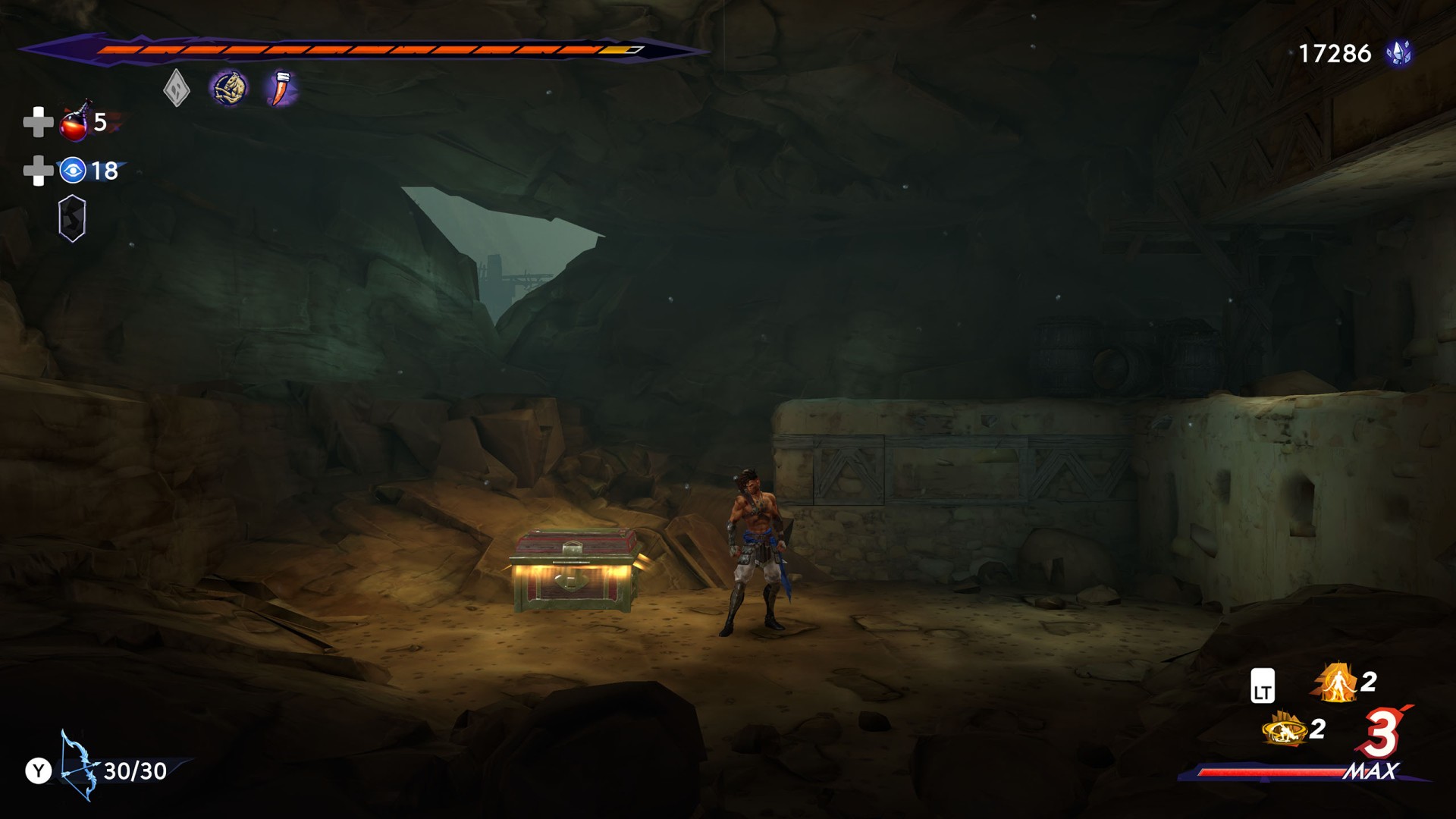 Show the mapMysterious Chest Puzzle (1). Use the Bow of Menolias and and shoot a chakram / arrow upward. It counts as a Lower City Valuable Item.