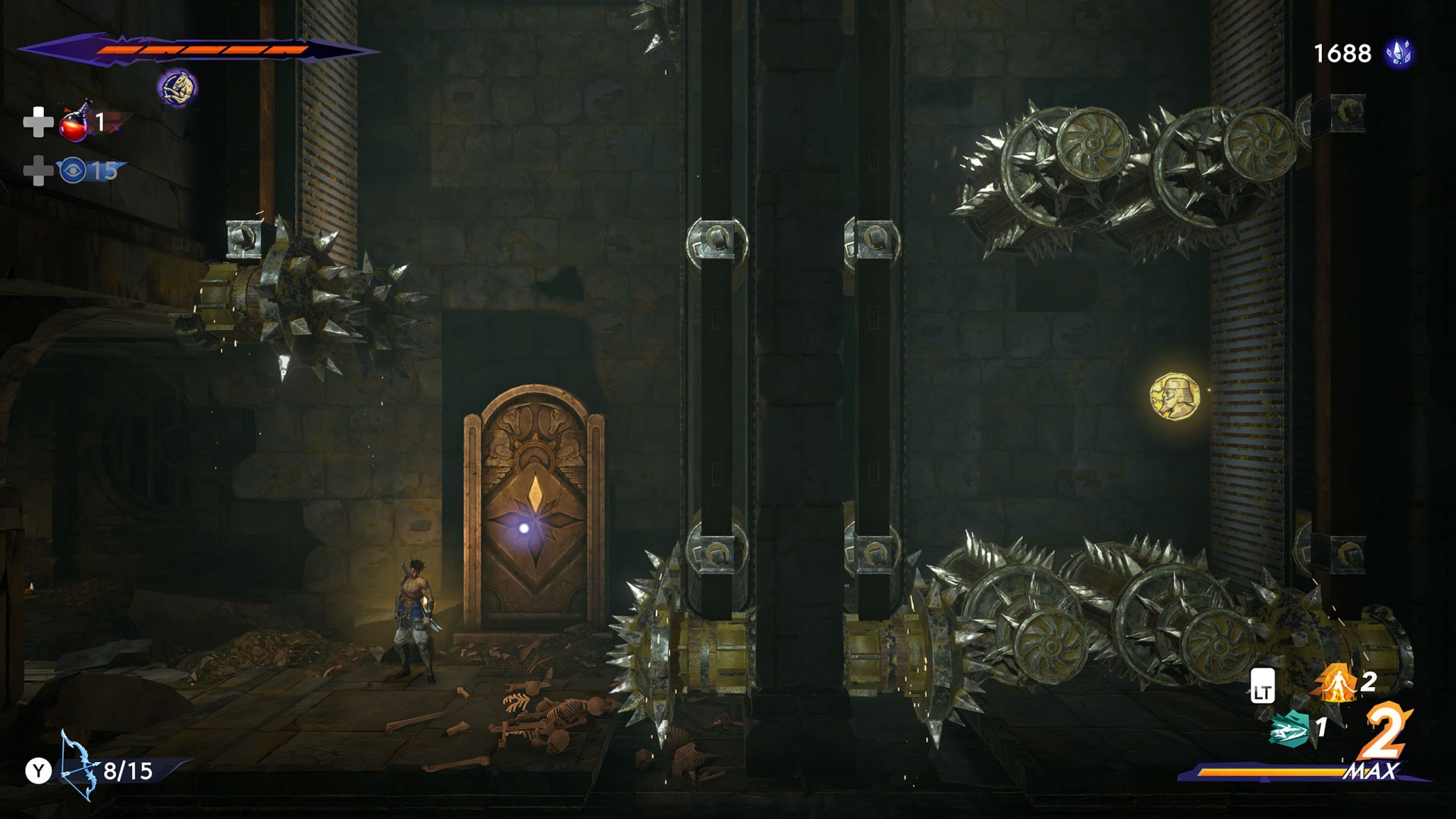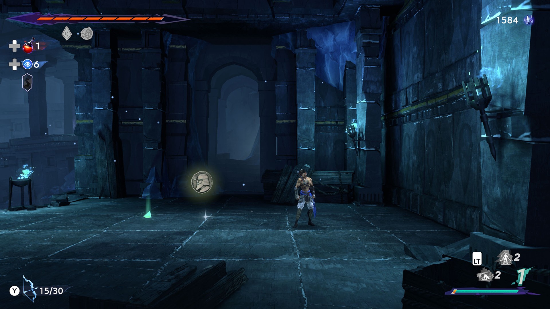 Show the mapThe video starts when you have already reached the previous coin - Xerxes Coin (Pit of Eternal Sands #7).