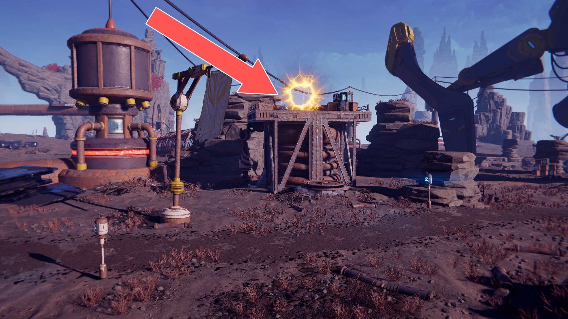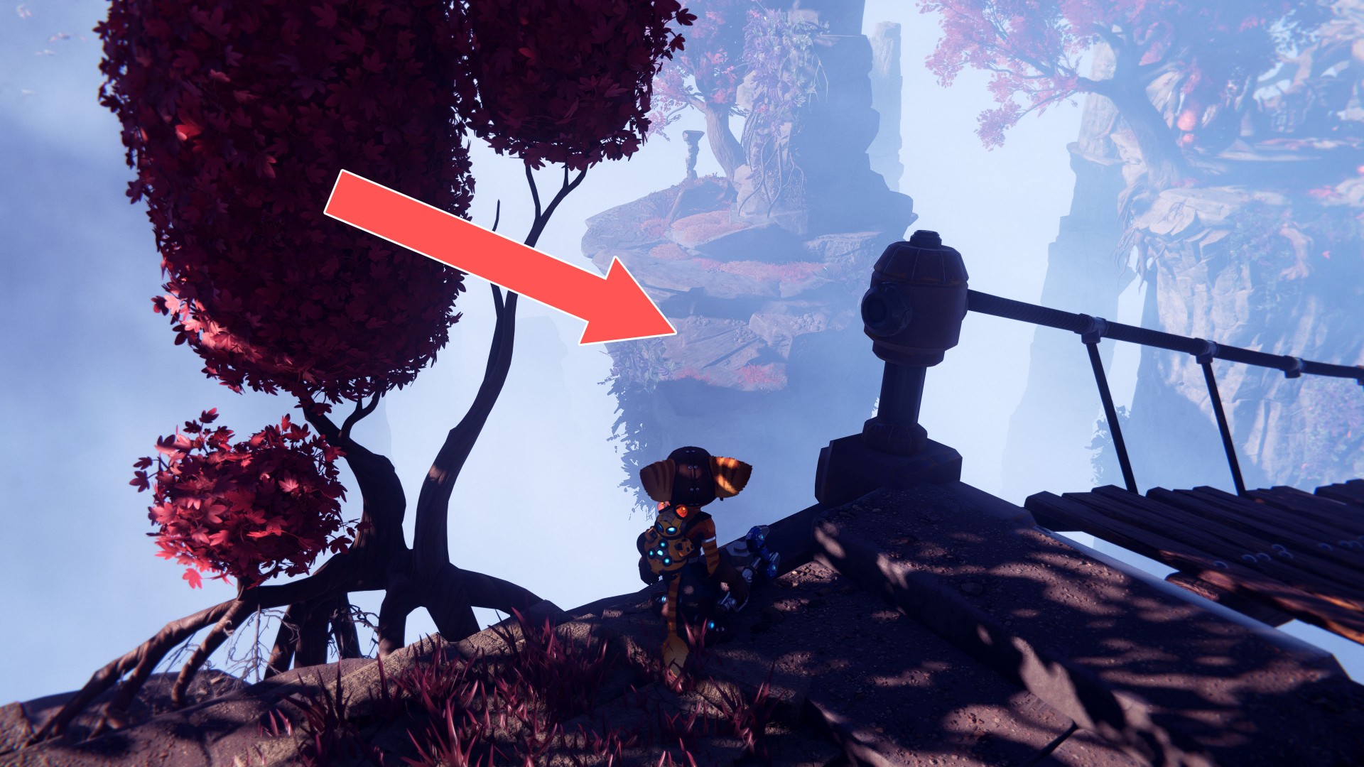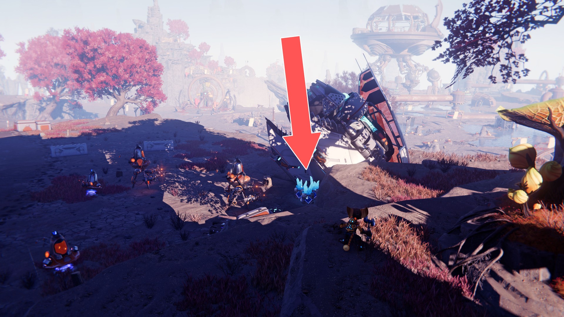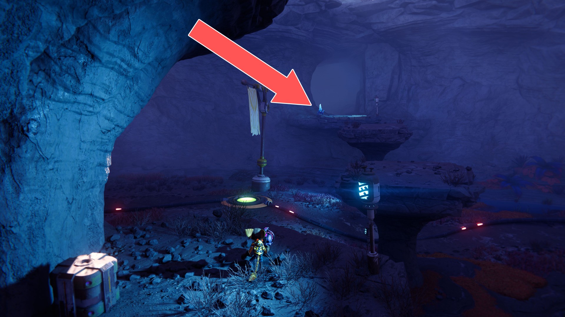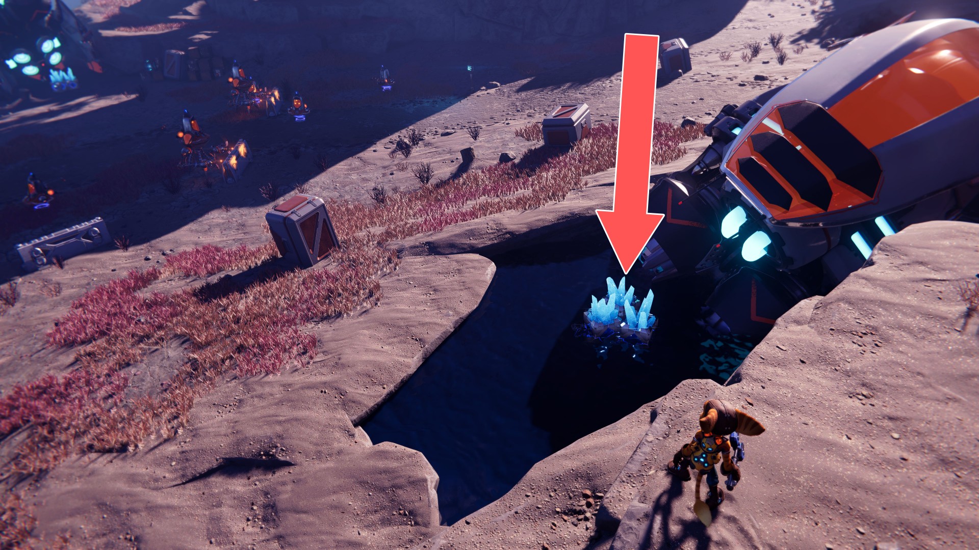 Show the mapUse your hoverboots, accelerate and then use the ramp to jump up. While riding the rail, swing the wrench when you are near the crates.