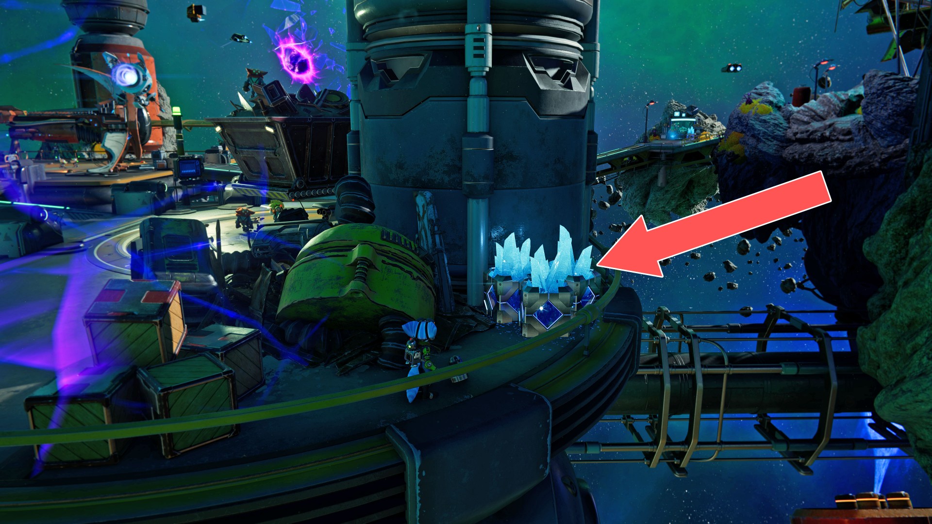 Raritanium (Scarstu Debris Field) are blue crystals sticking out of crates that you will find during the game. To collect them you should smash them with your hammer. If you've been near some raritanium, it'll appear on your map. Raritanium can be used to upgrade your weapons (stat boosts and new abilities). To upgrade a weapon you must talk to Ms. Zurkon and navigate to the upgrades tab.