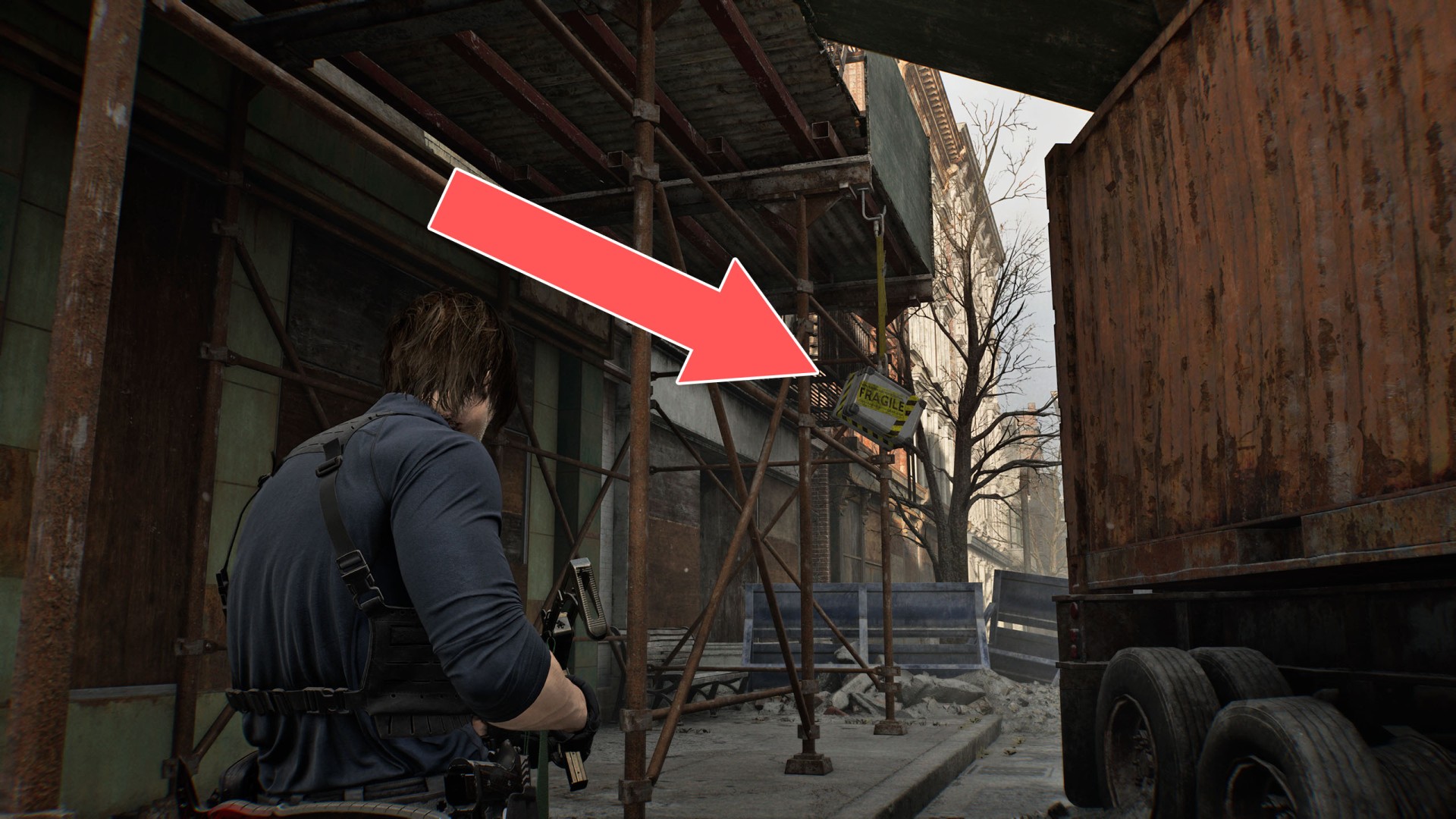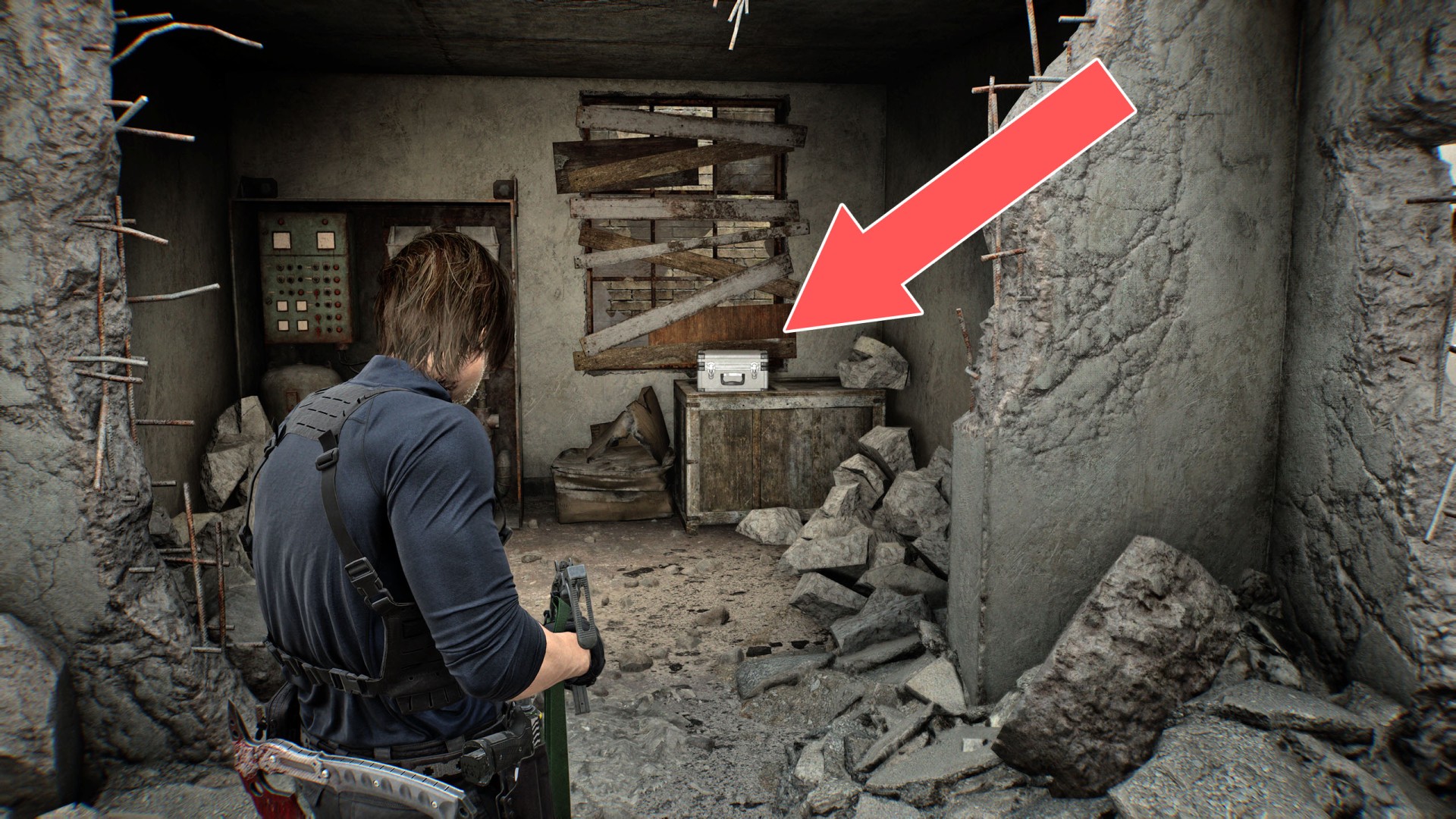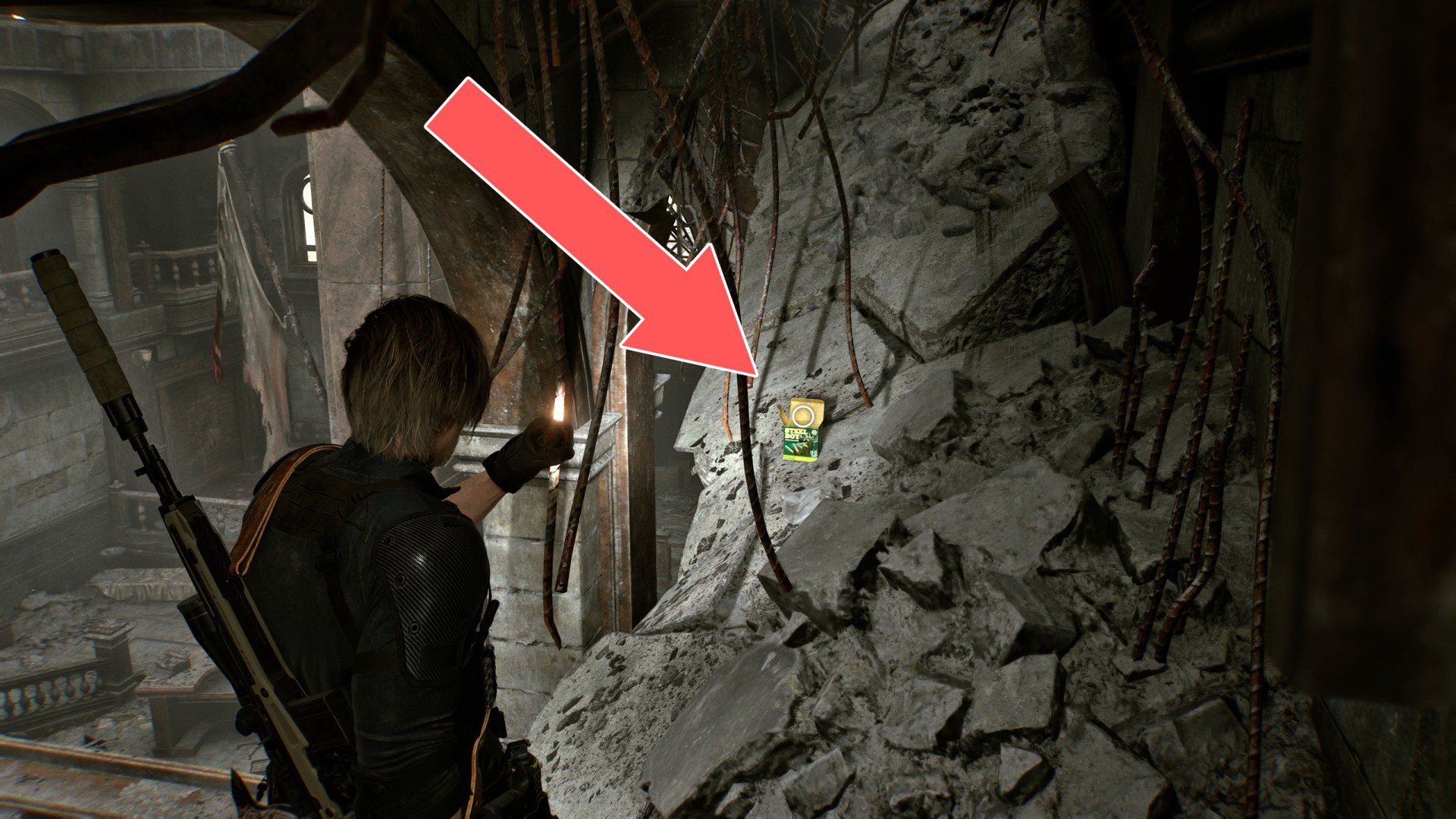 It can only be reached by blowing up the rubble via grenade or mortar strike.