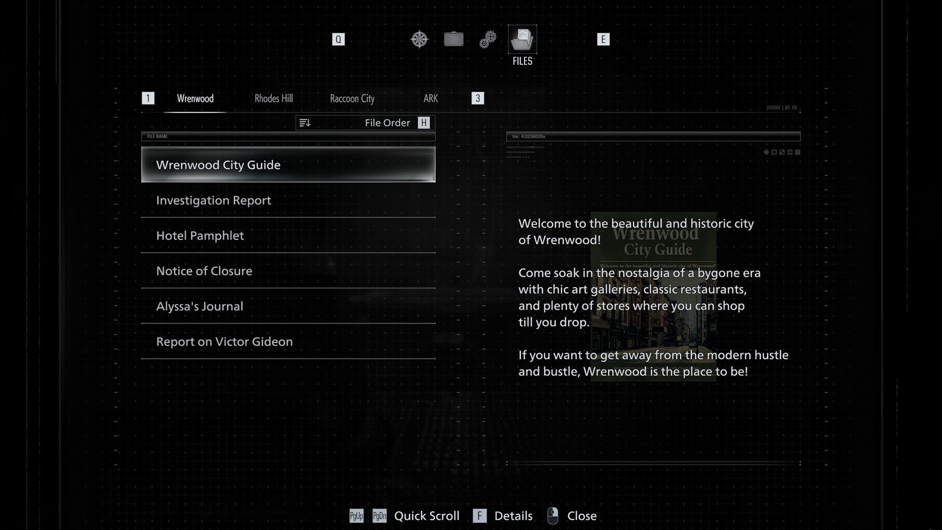 Show the mapWrenwood File 6/6. You receive it automatically during the cutscene in which Leon arrives on the street outside the Wrenwood Hotel.