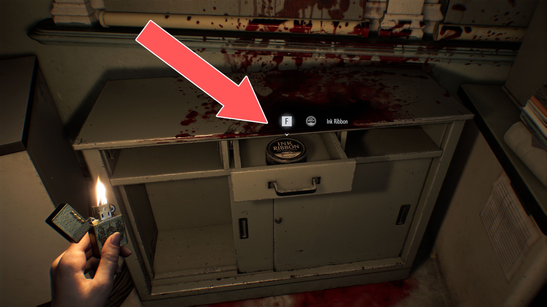 Unlike the ribbons themselves, Ink Ribbon Tins are crafting materials and cannot be used directly to save your game. While you can find Ink Ribbons scattered throughout various areas - usually tucked away near Typewriters - you can also manufacture your own. To craft an Ink Ribbon, you will need: 1 Ink Ribbon Tin + 40 Infected Blood.