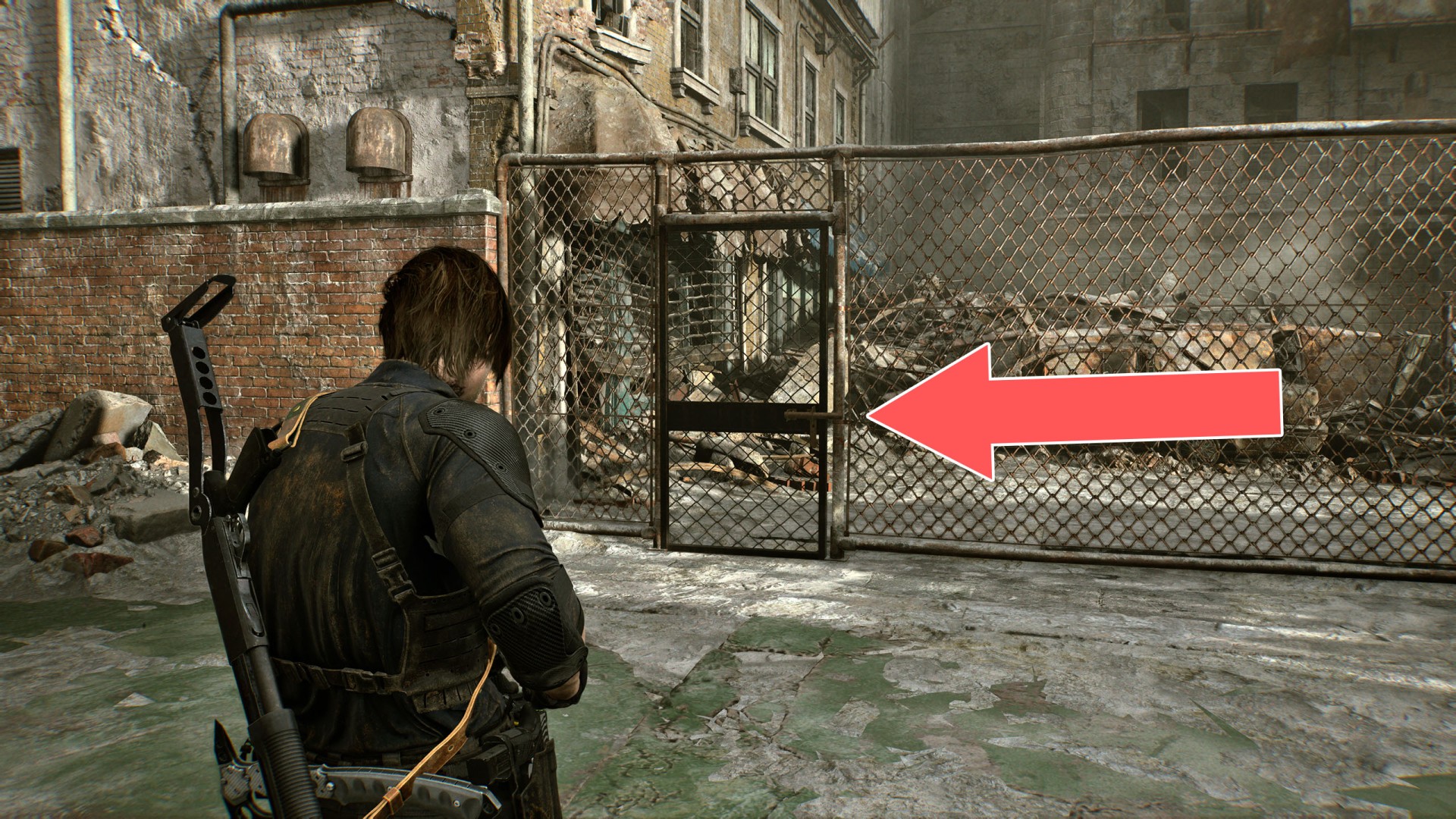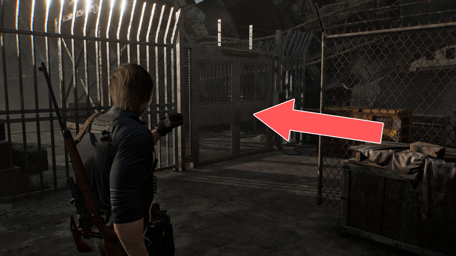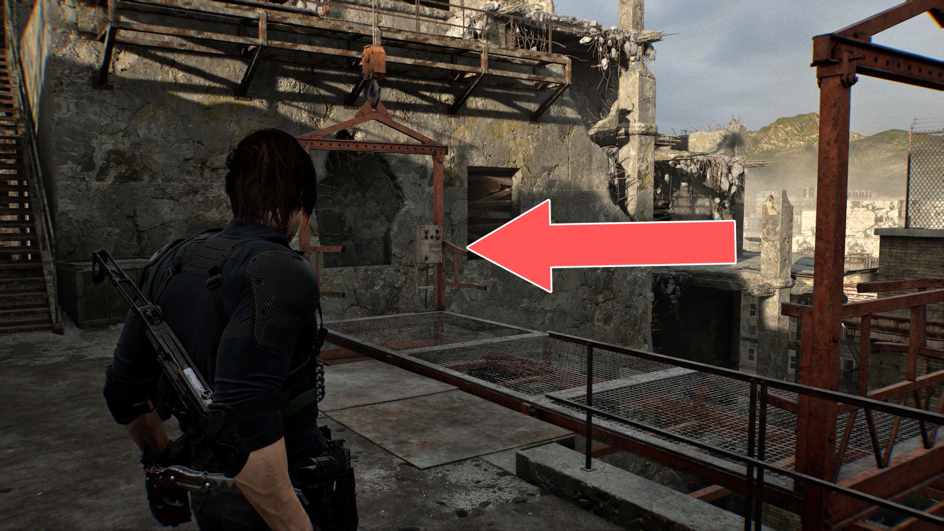 Show the mapYou'll be able to pass through here as Leon, but Grace must first find a way to clear the excavator bucket blocking the path.