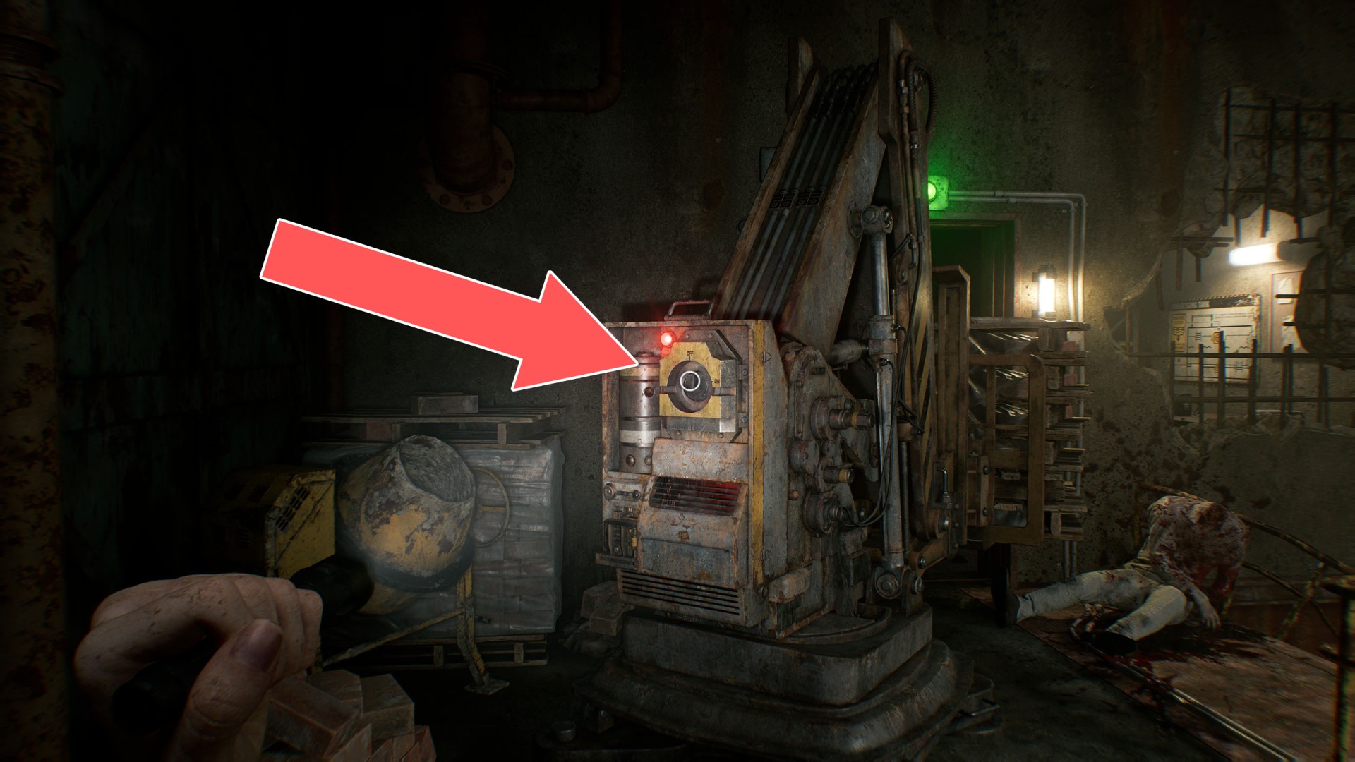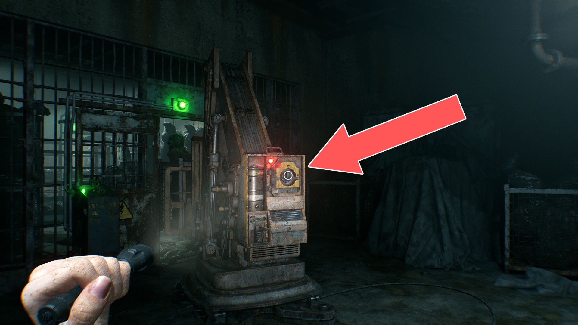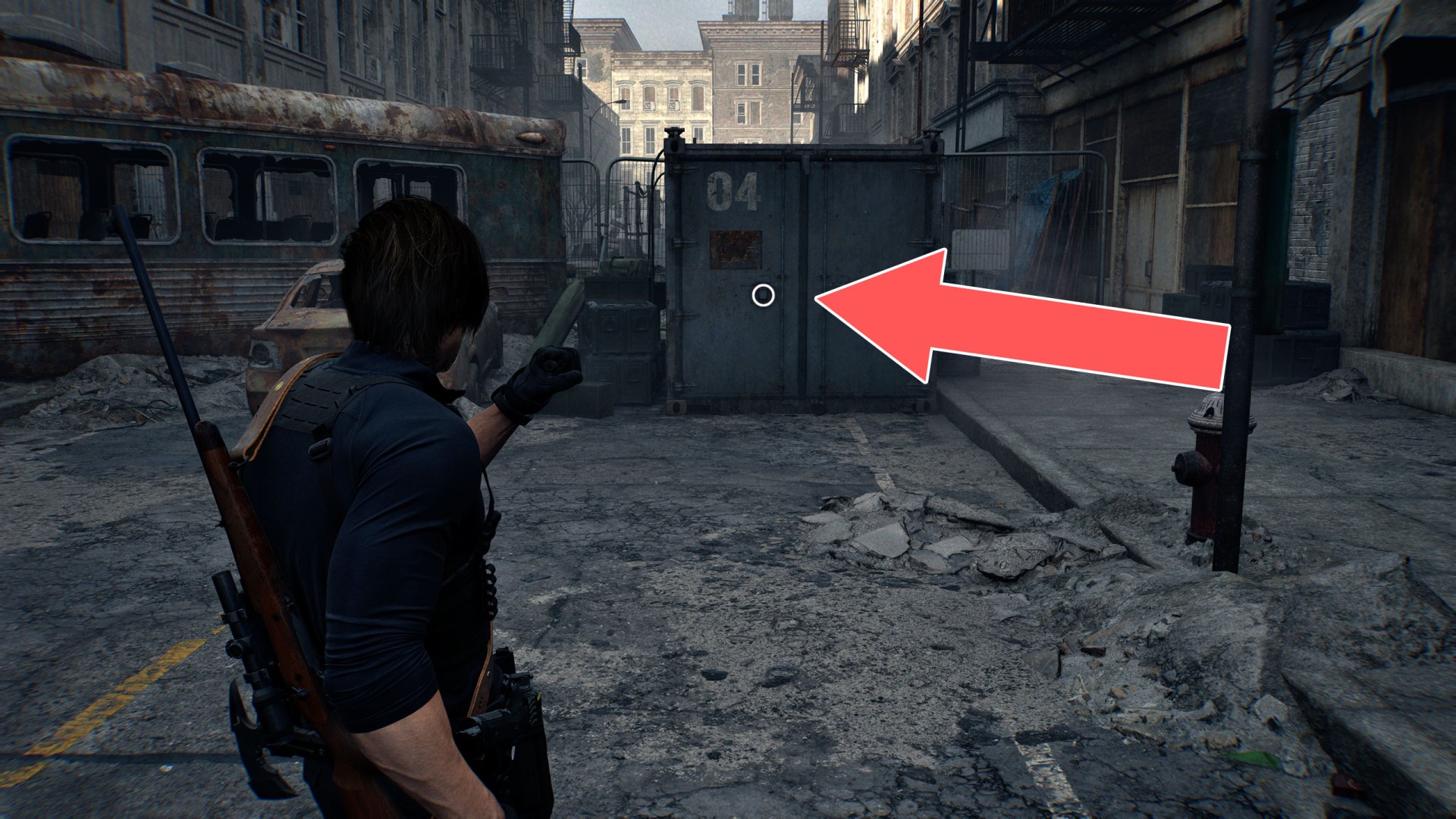 Show the mapYou'll be able to pass through here as Leon, but Grace must first find a way to clear the excavator bucket blocking the path.