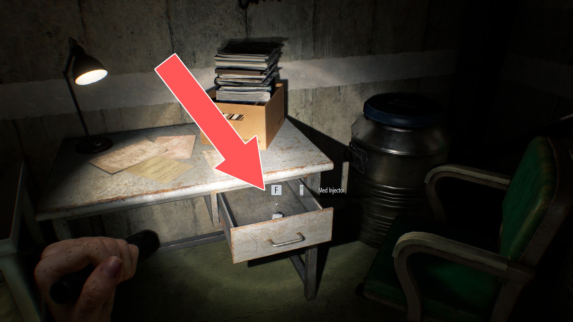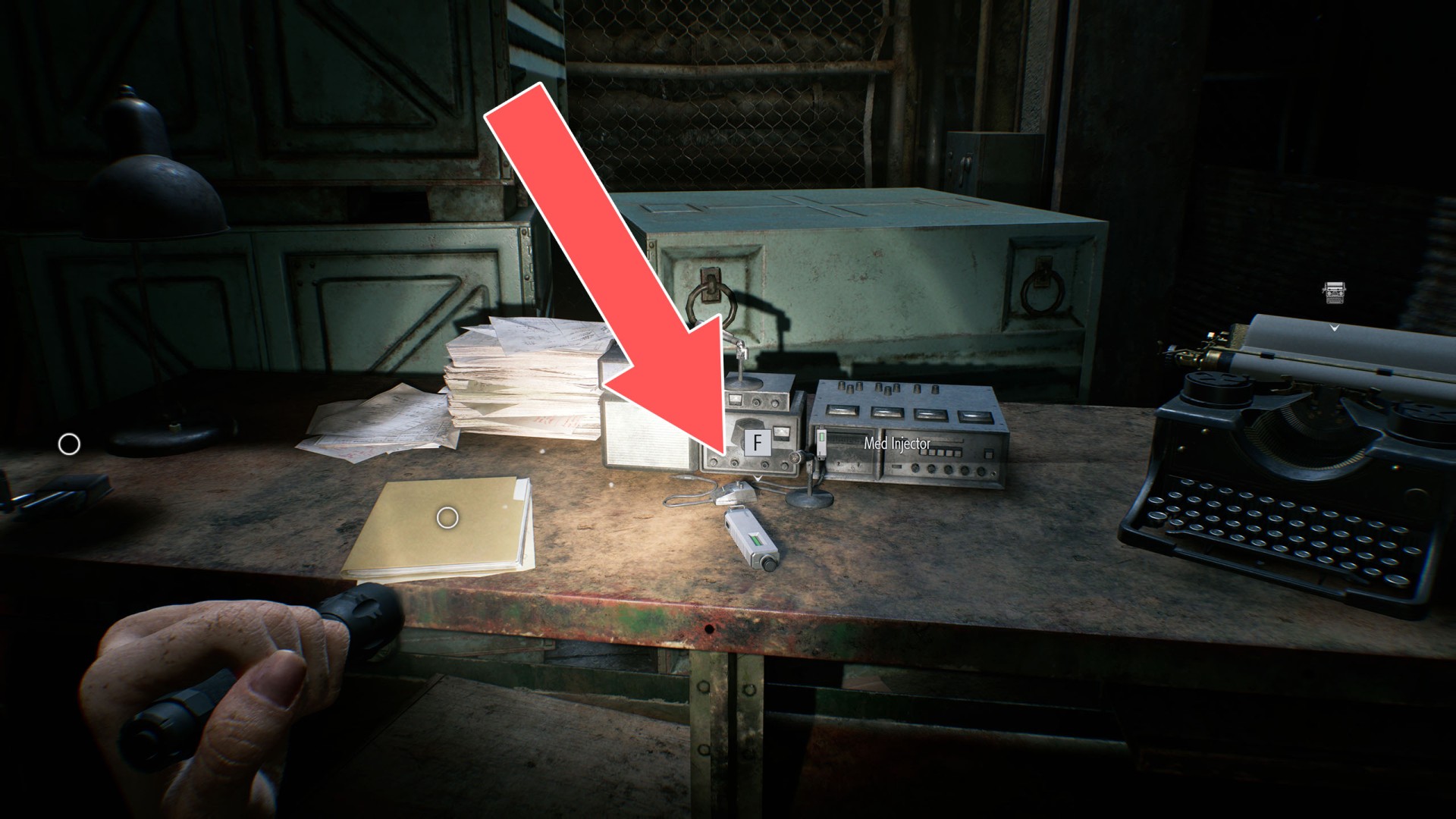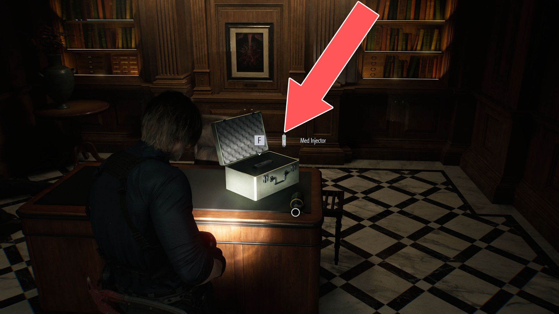 Show the mapYou can obtain this injector while playing as Leon, as only he is able to open the locker where it is stored.