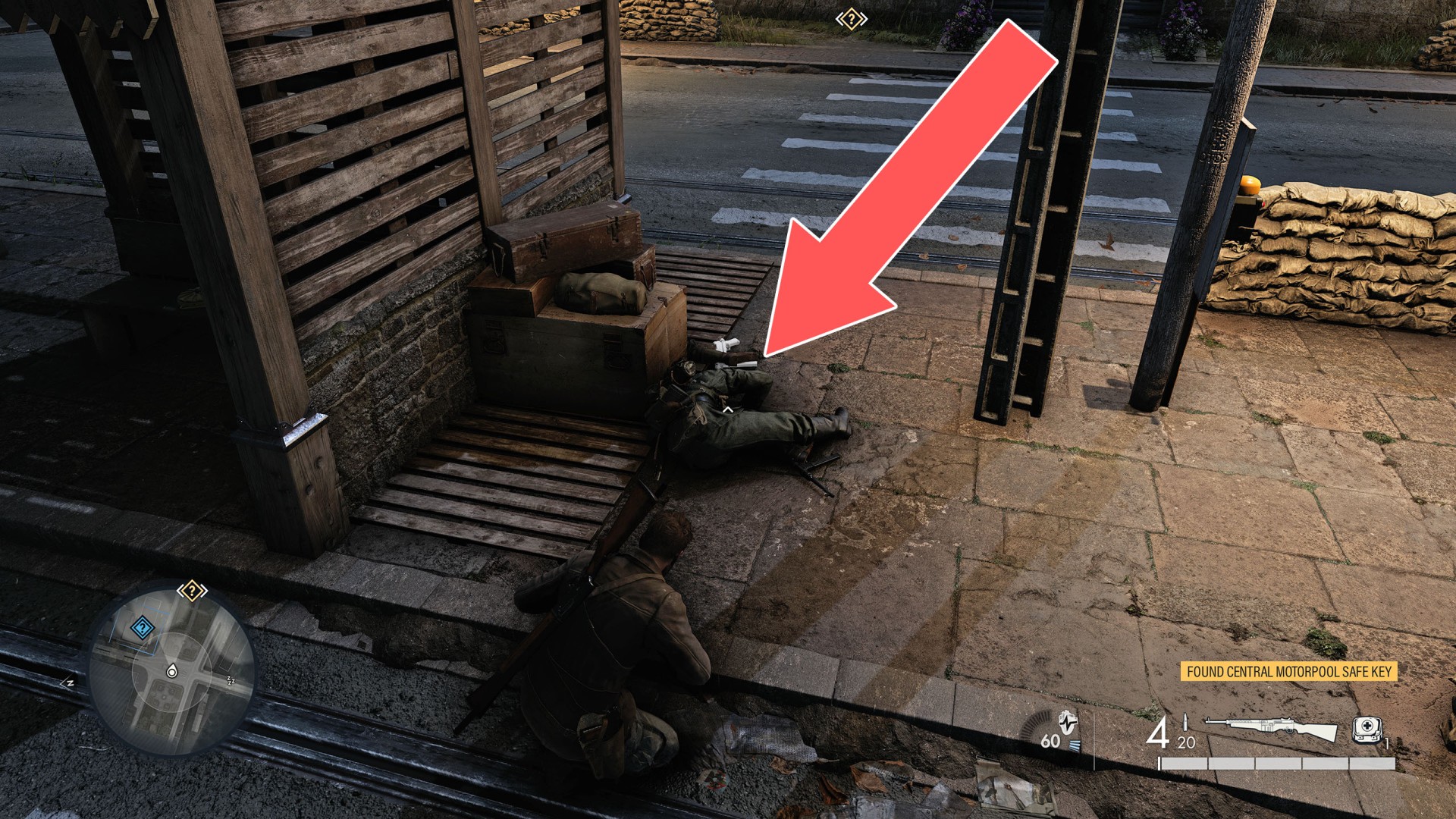 Show the mapYou will get it when you search the corpse lying on the ground. It unlocks the door to the Radio Room.