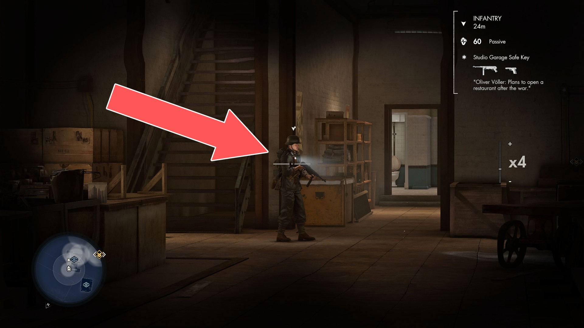 Show the mapOn a chair standing next to the bed on the upper floor. You can use it to open the safe in which you will find the "Use the Library" classified document.