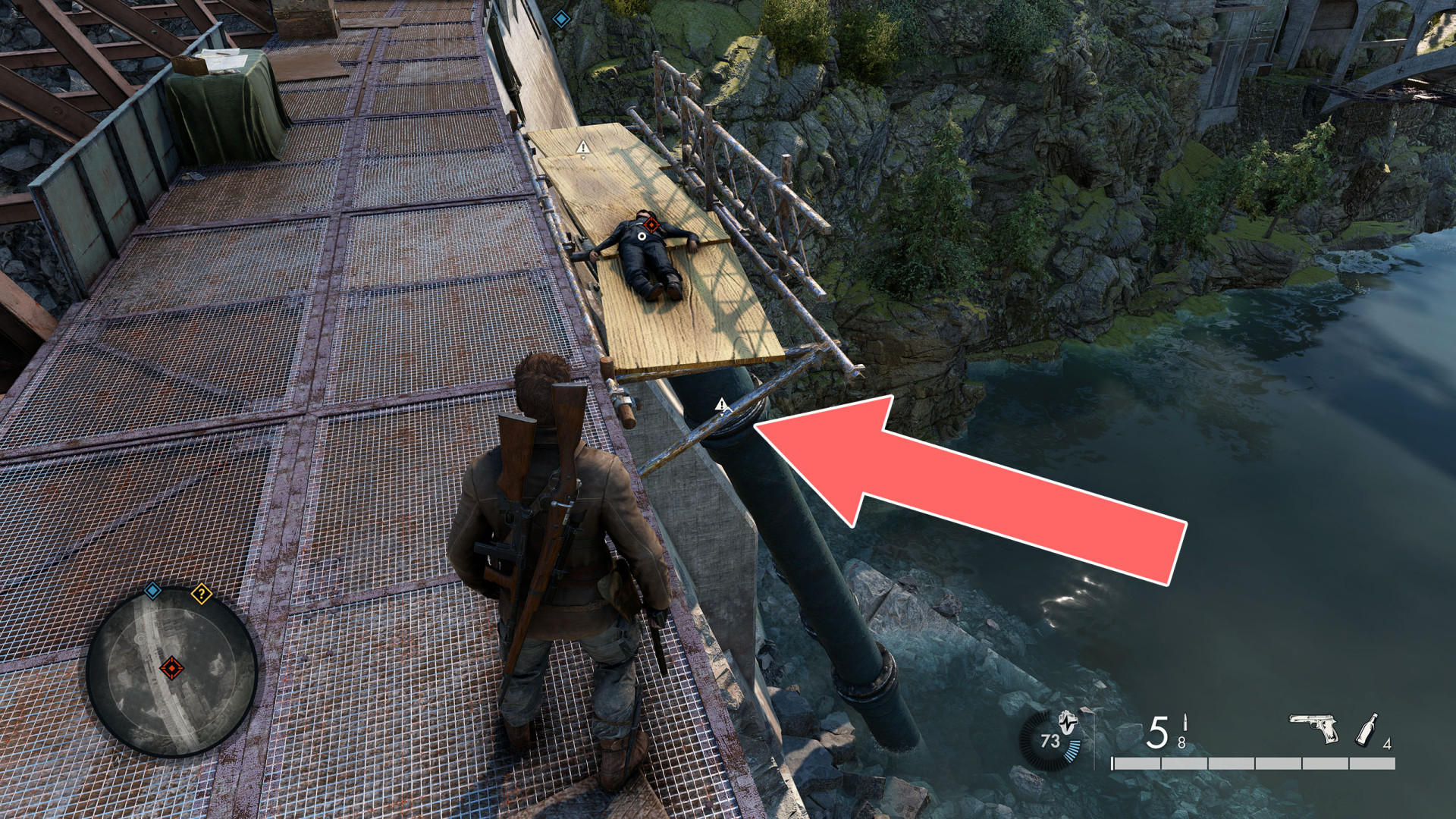 Show the mapKill Challenge: Kill Ludwig Spiegel by making him fall from the Dam. Reward: M1 Garand.