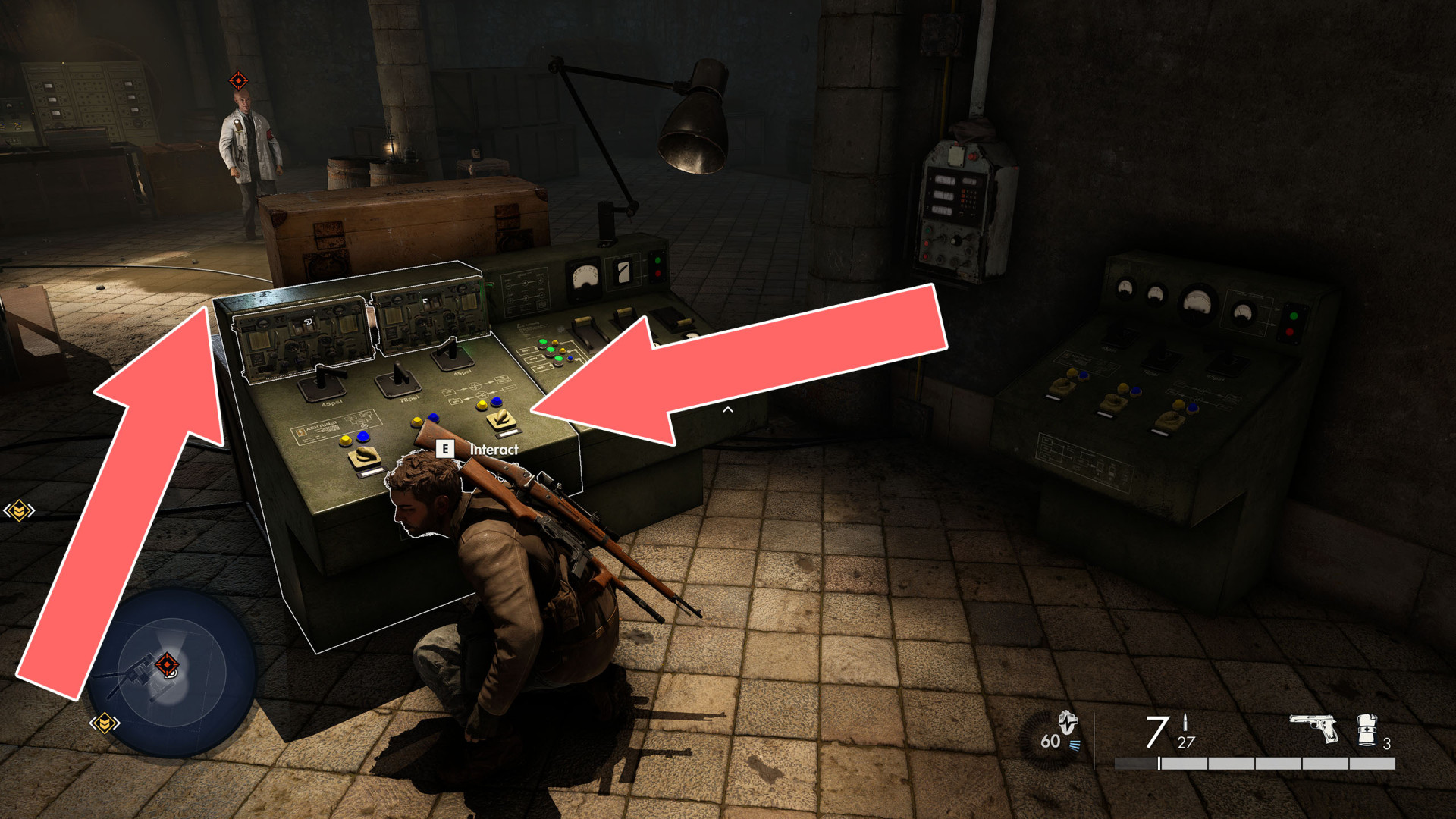 Show the mapKill Challenge: Kill Arno Lembke, by having another soldier kill him. Reward: Extended Magazine.
