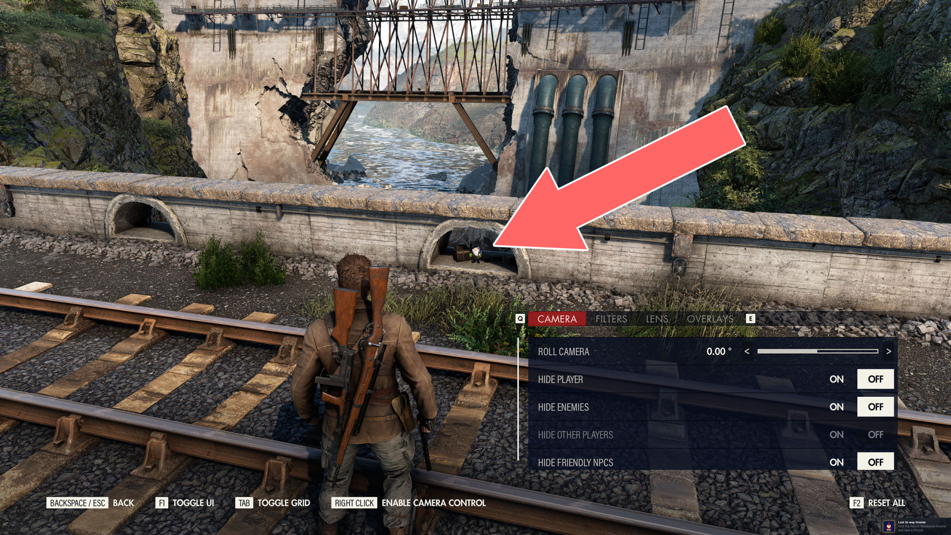 Find the gnome that is in the center of the bridge, in one of the holes in the railing, and position yourself in front of him. The achievement will be unlocked when you enter the photo mode.
