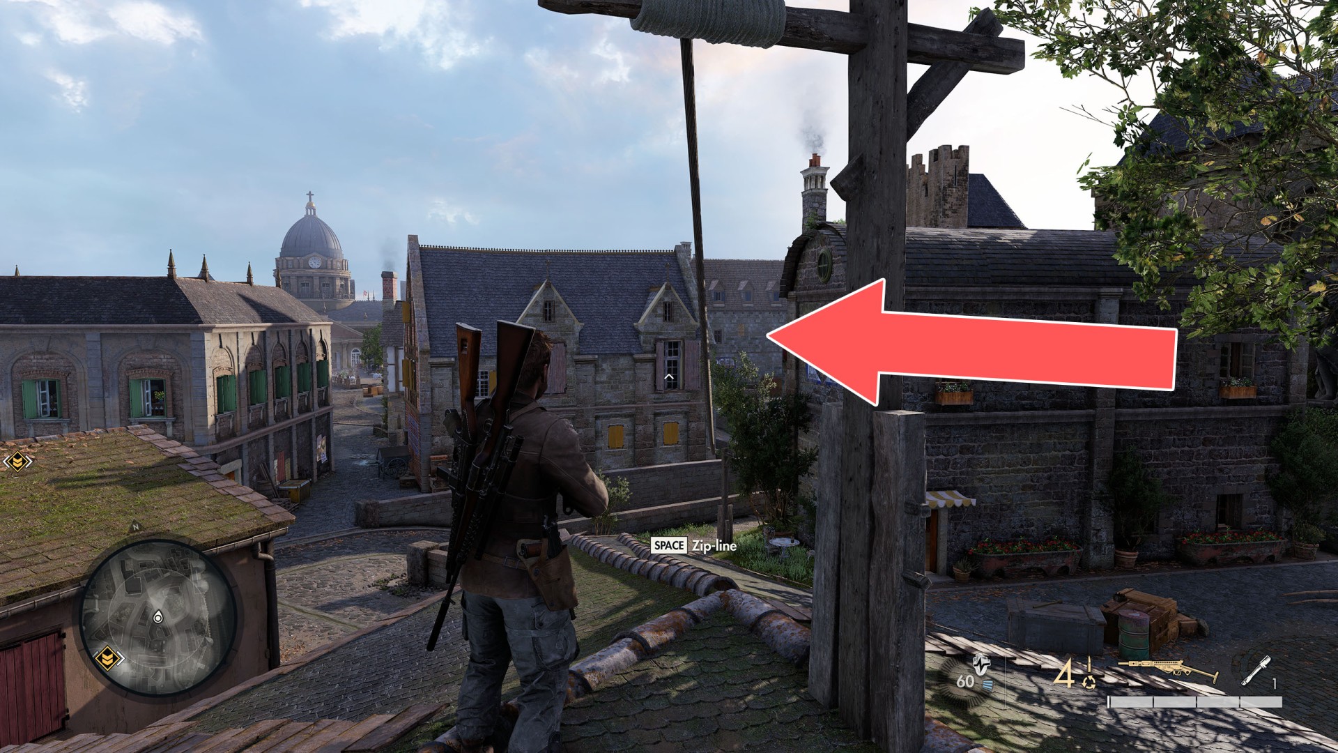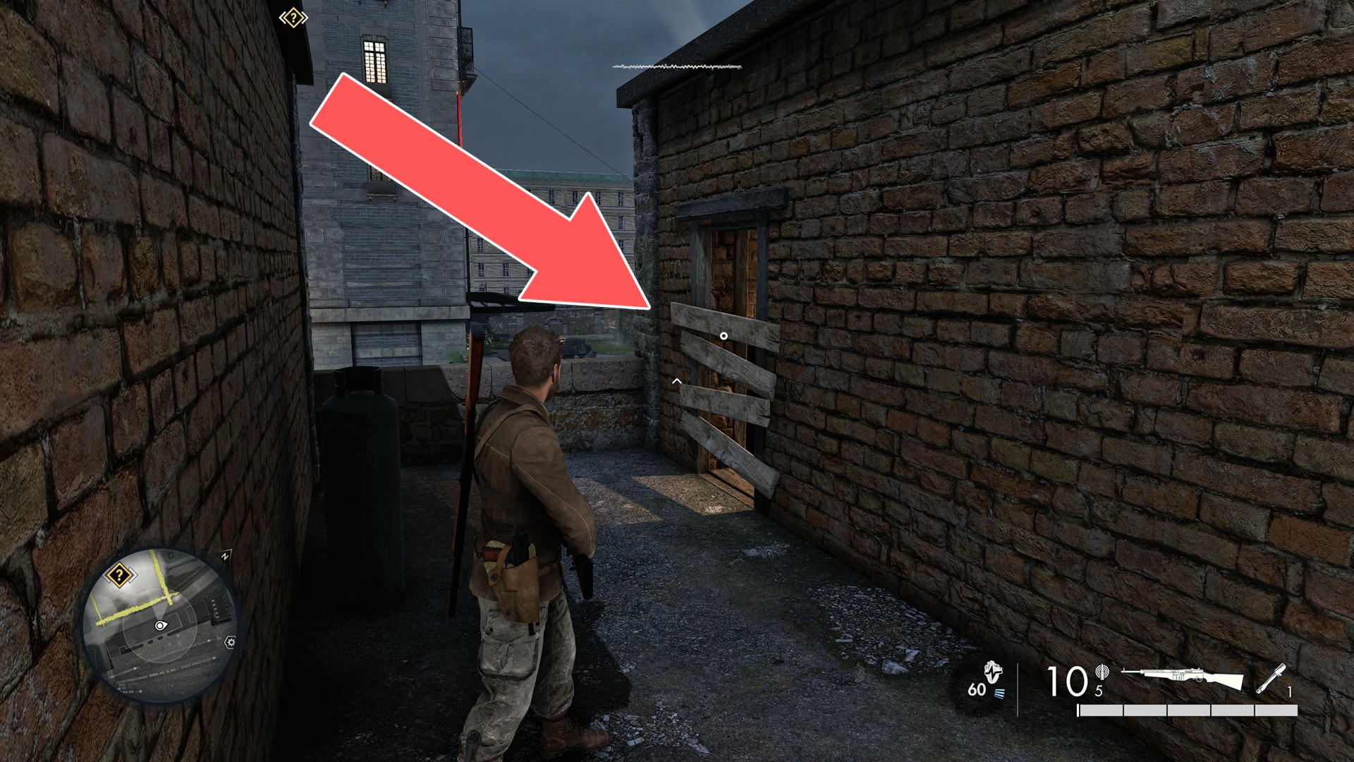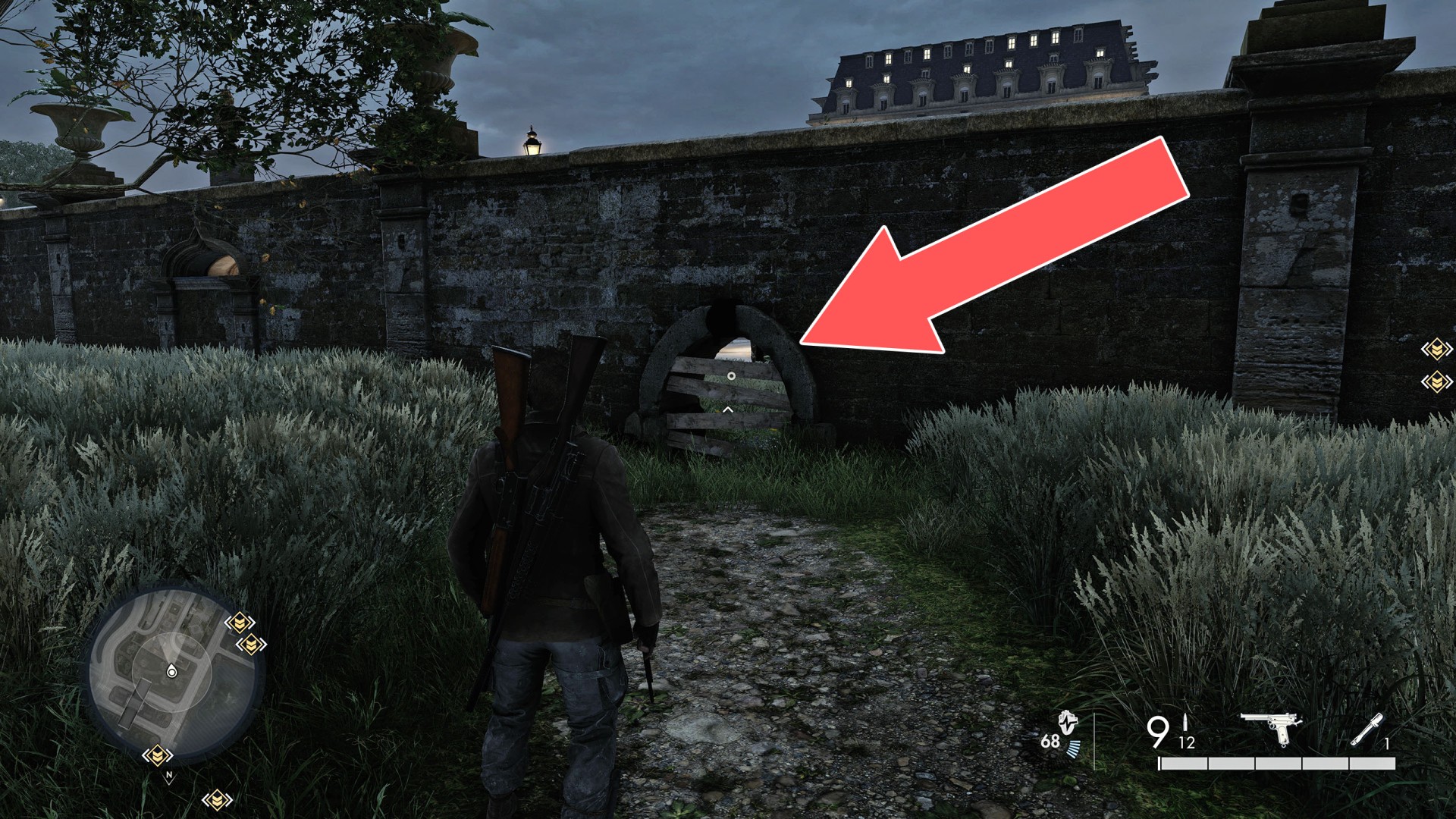 Show the mapClimb up the drainpipe of the gutter and enter through the open window located on the top floor.