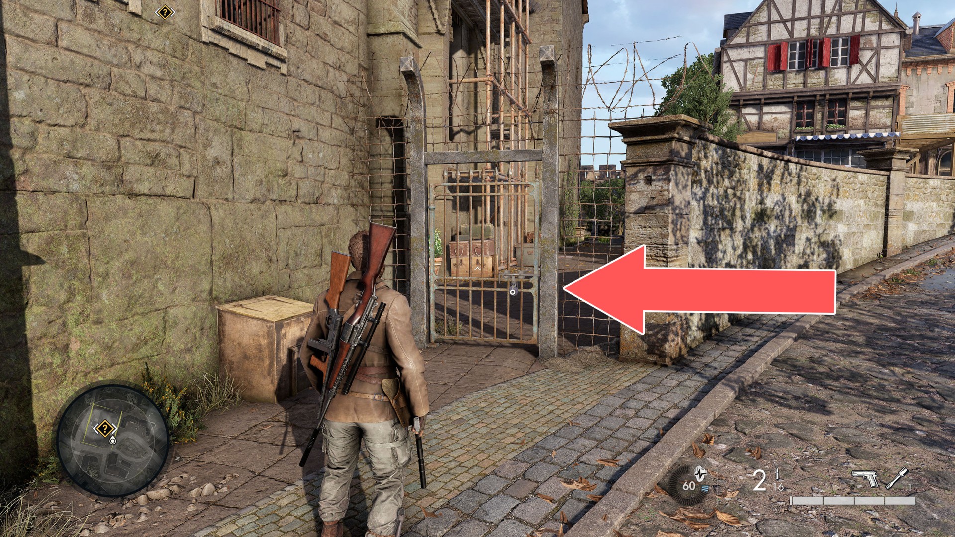 Show the mapPick Lock or Break Open (Bolt Cutters). It can be opened from the west side.