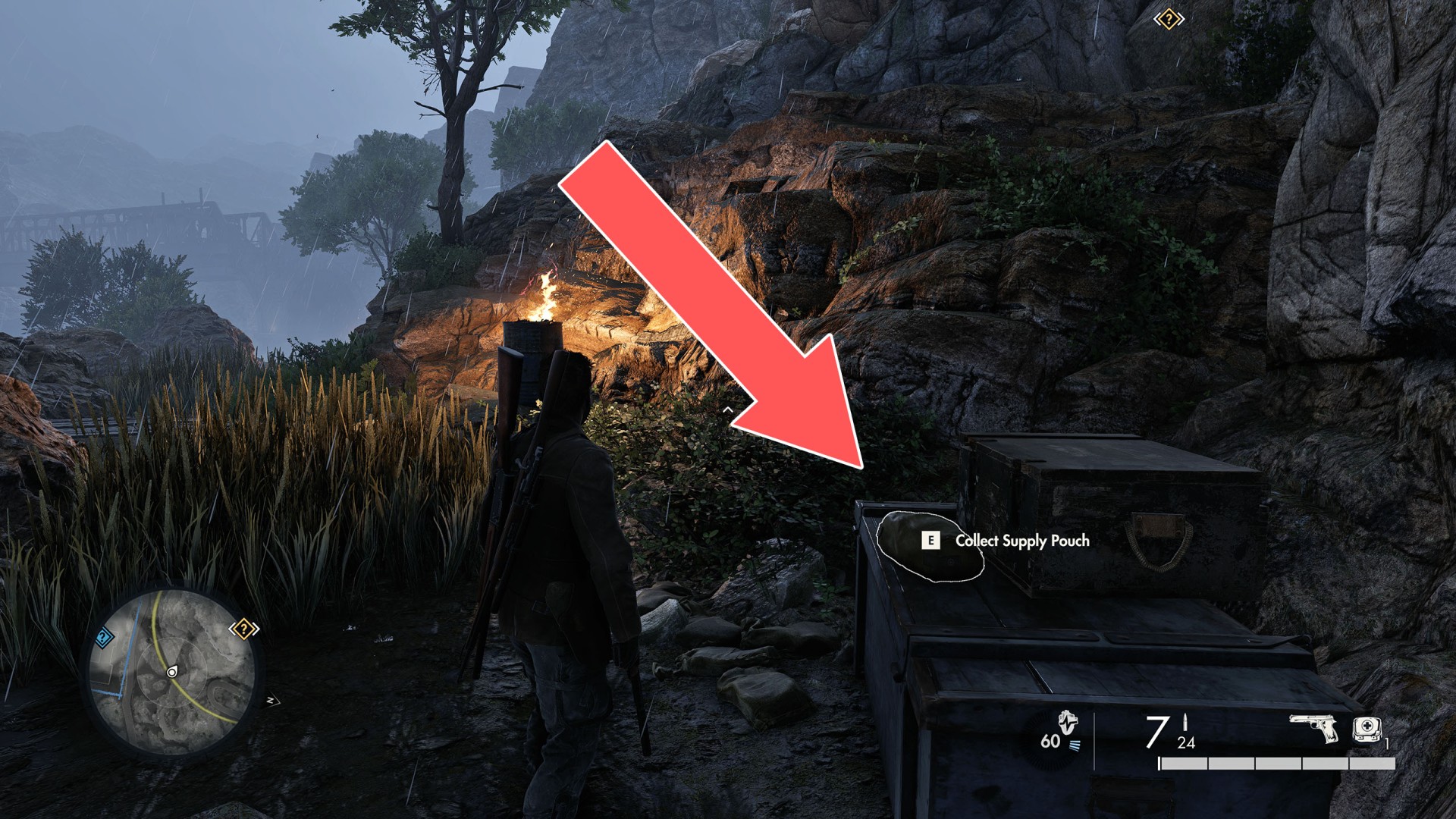 Supply Pouches contain a random selection of Items and Ammo. You can't collect one if your Inventory is full for everything inside.