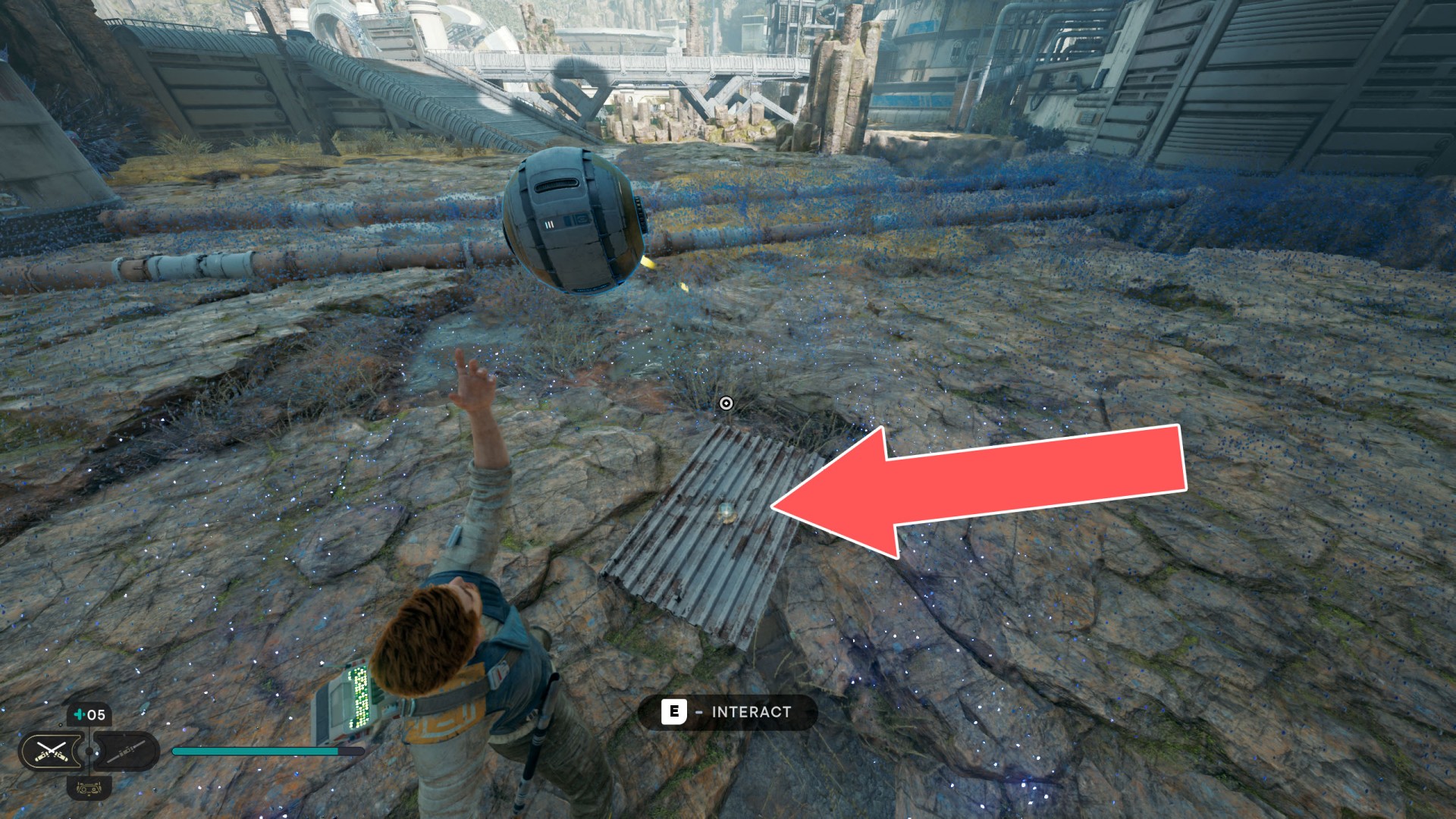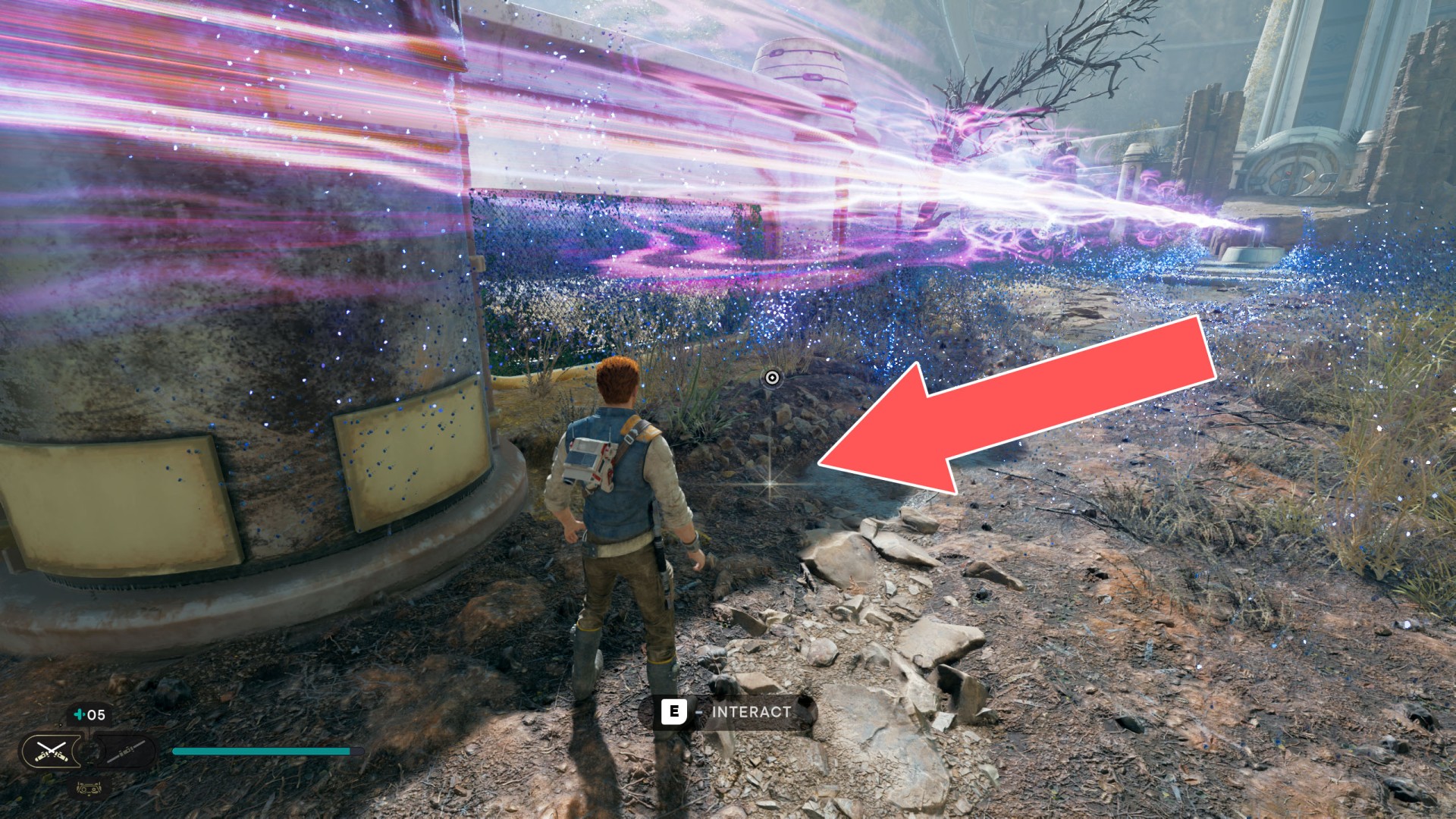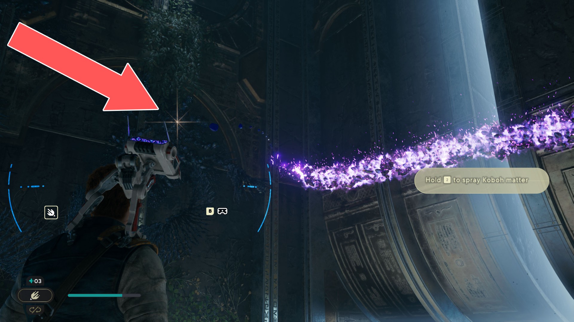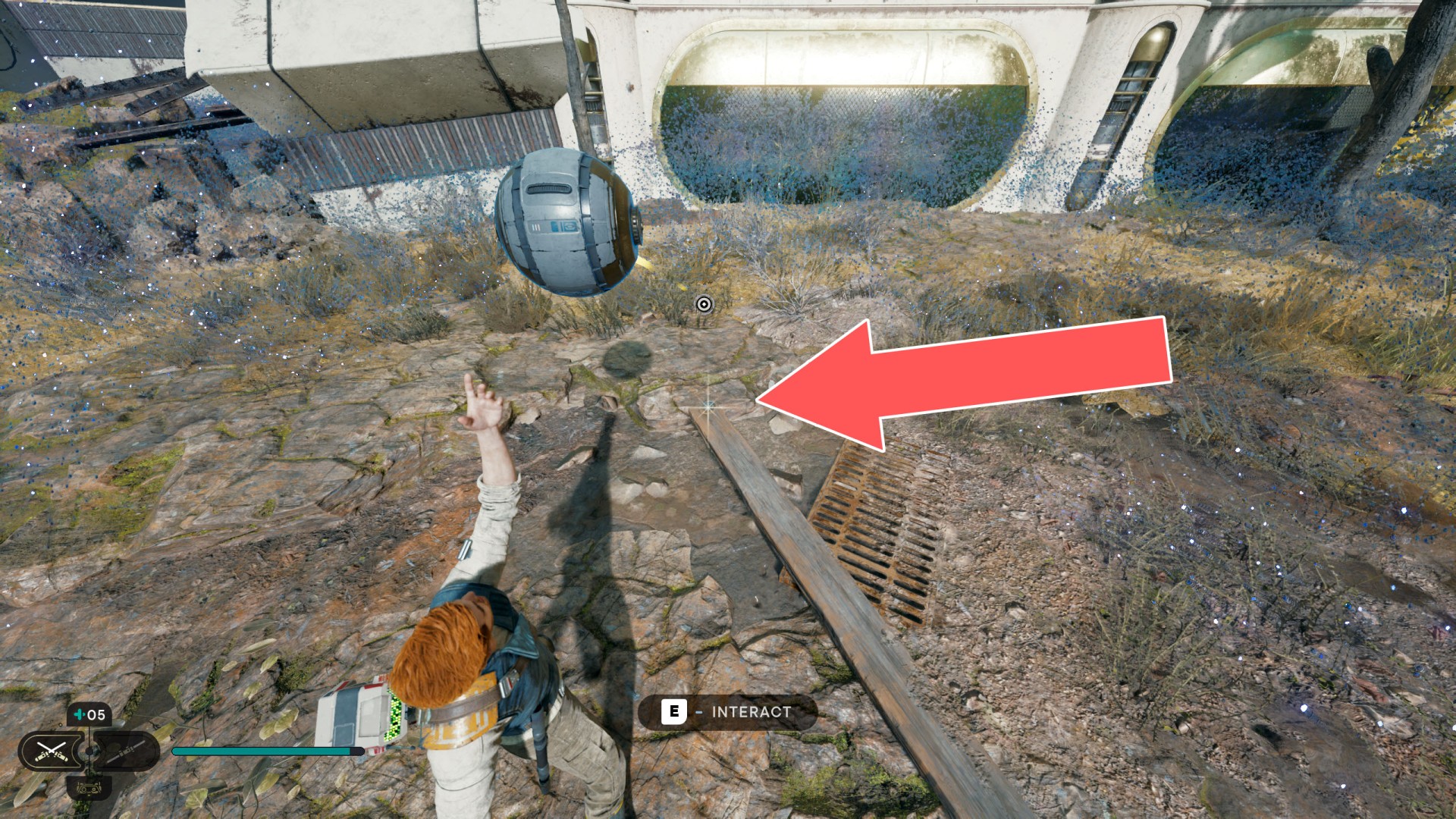 Show the mapDatadisc. If you hold the ball then the dust will move away from you and you will be able to safely walk here.