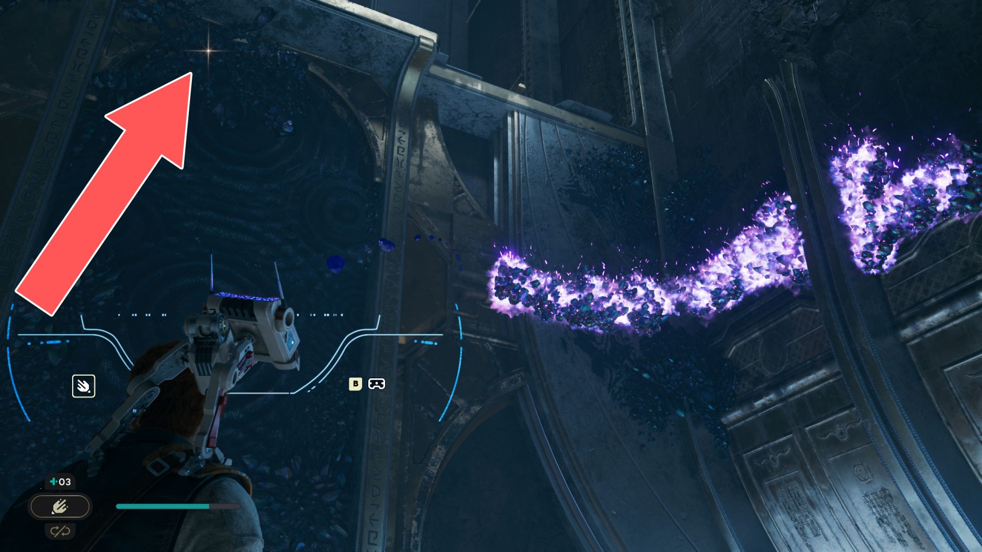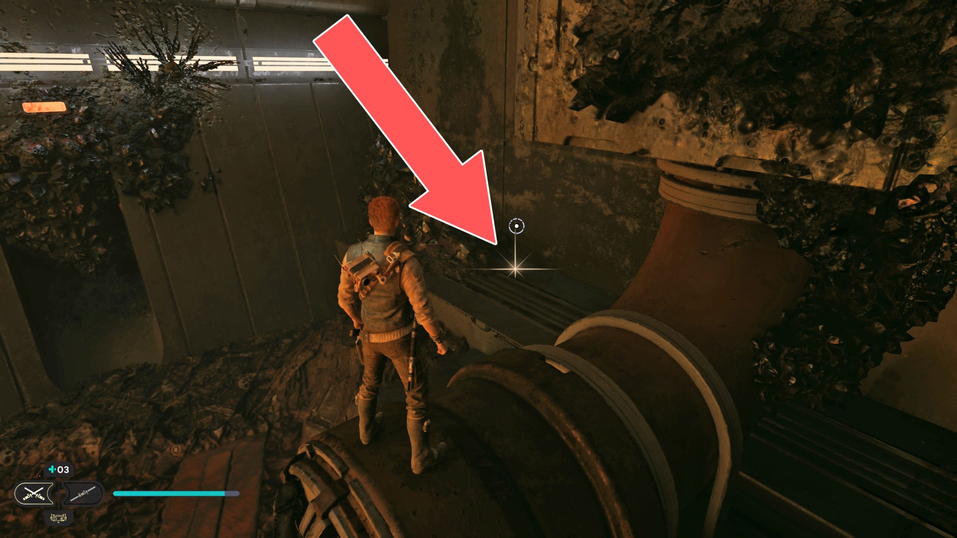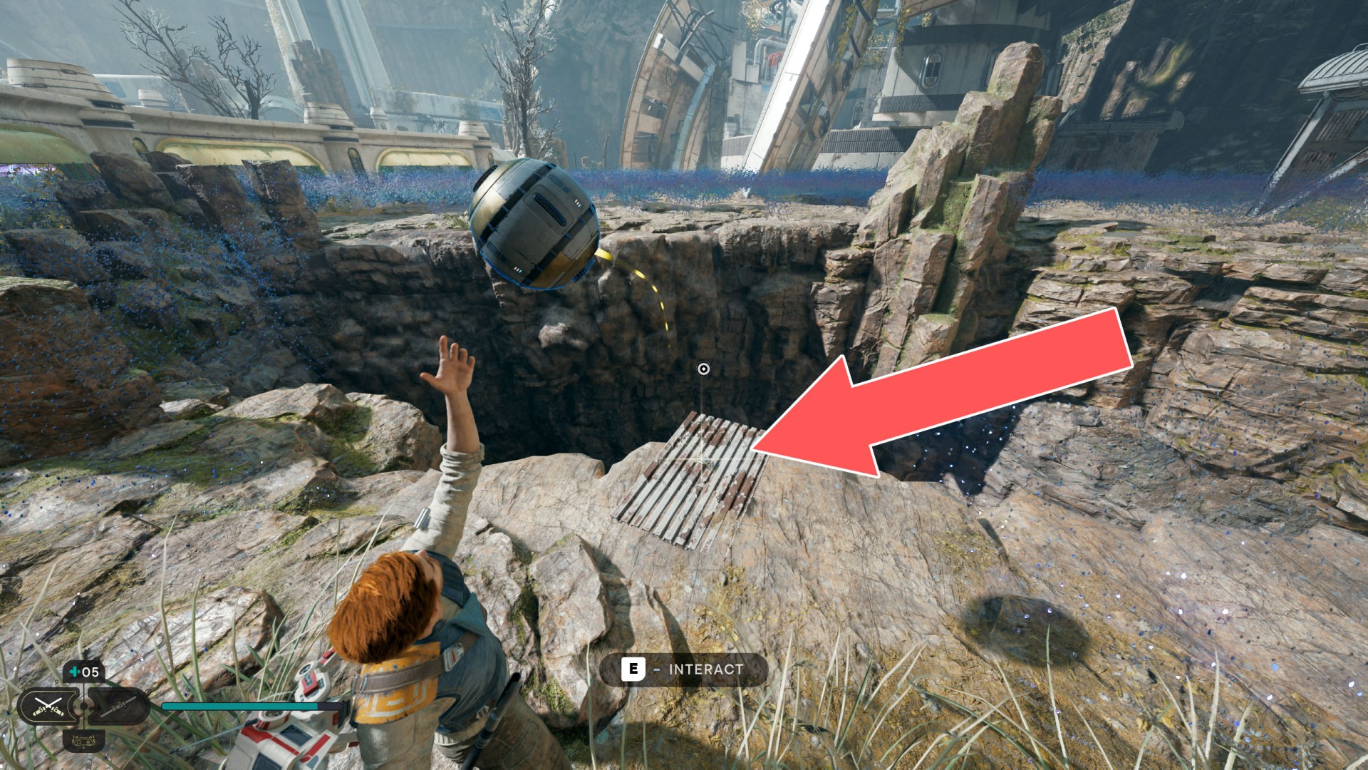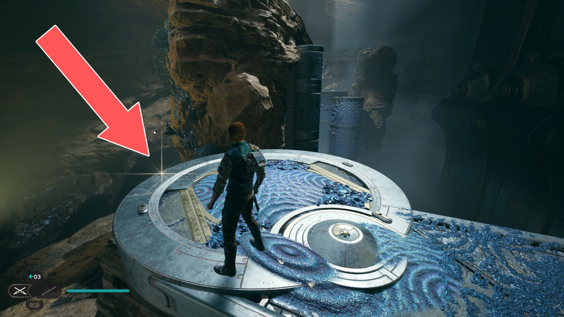 Show the mapDatadisc. If you hold the ball then the dust will move away from you and you will be able to safely walk here.
