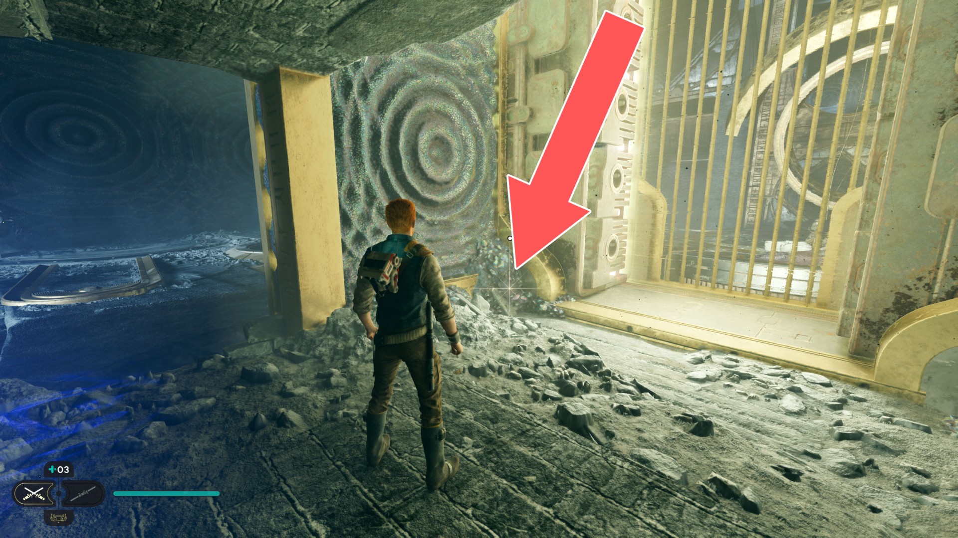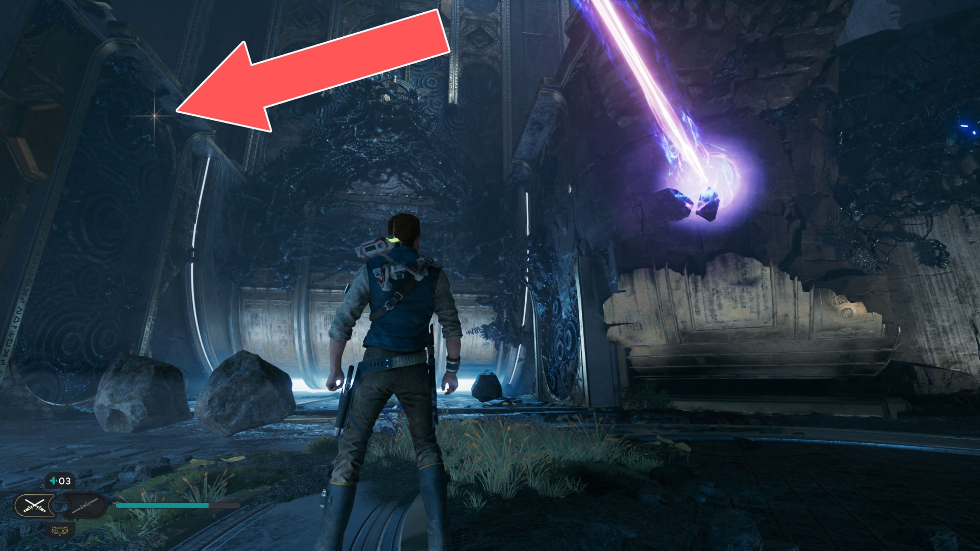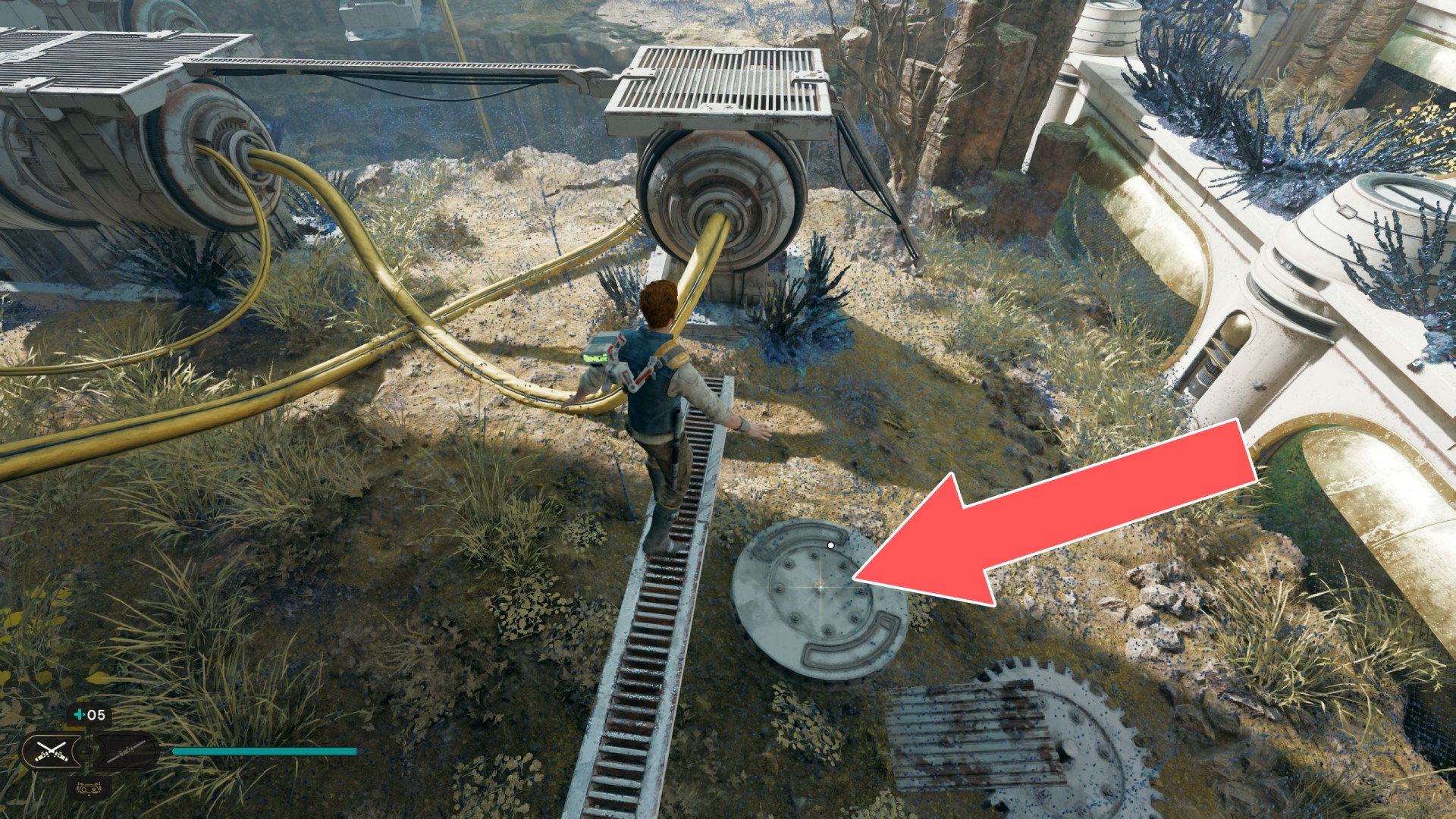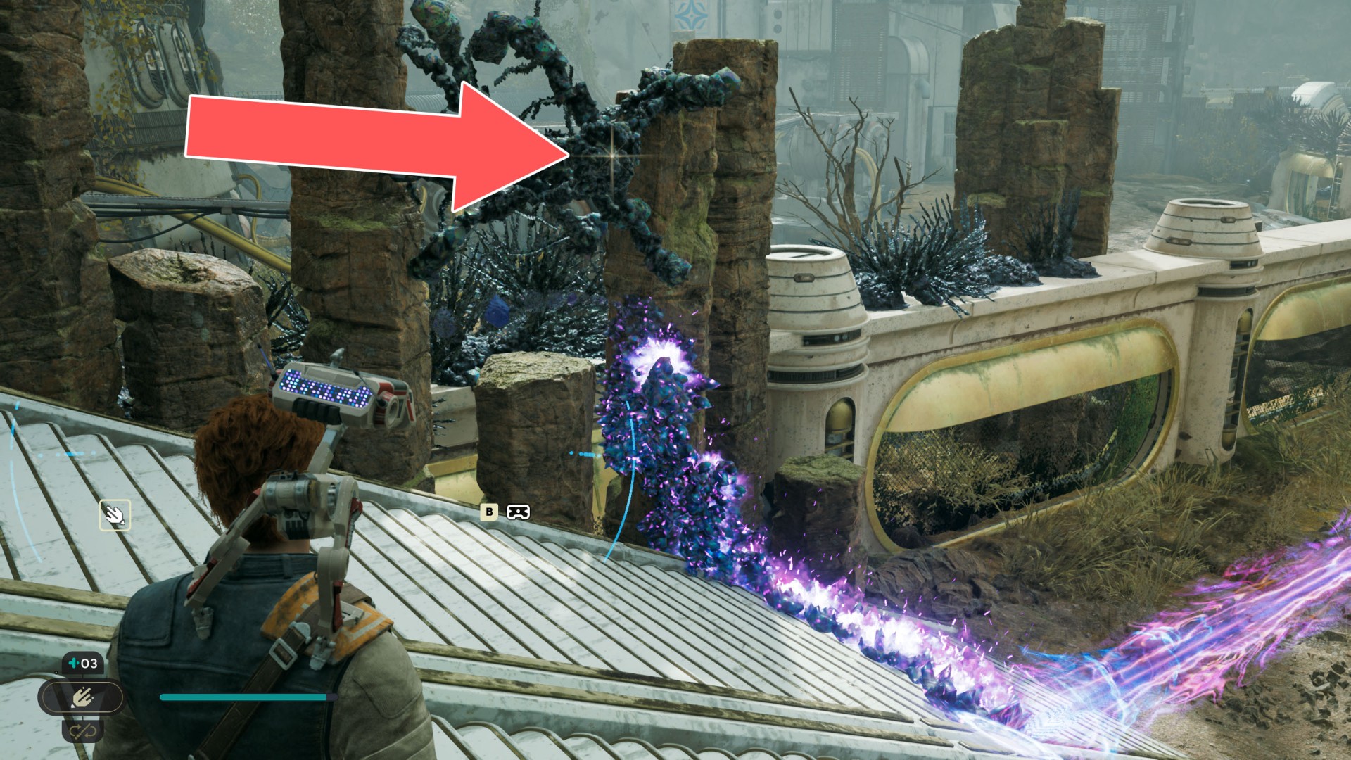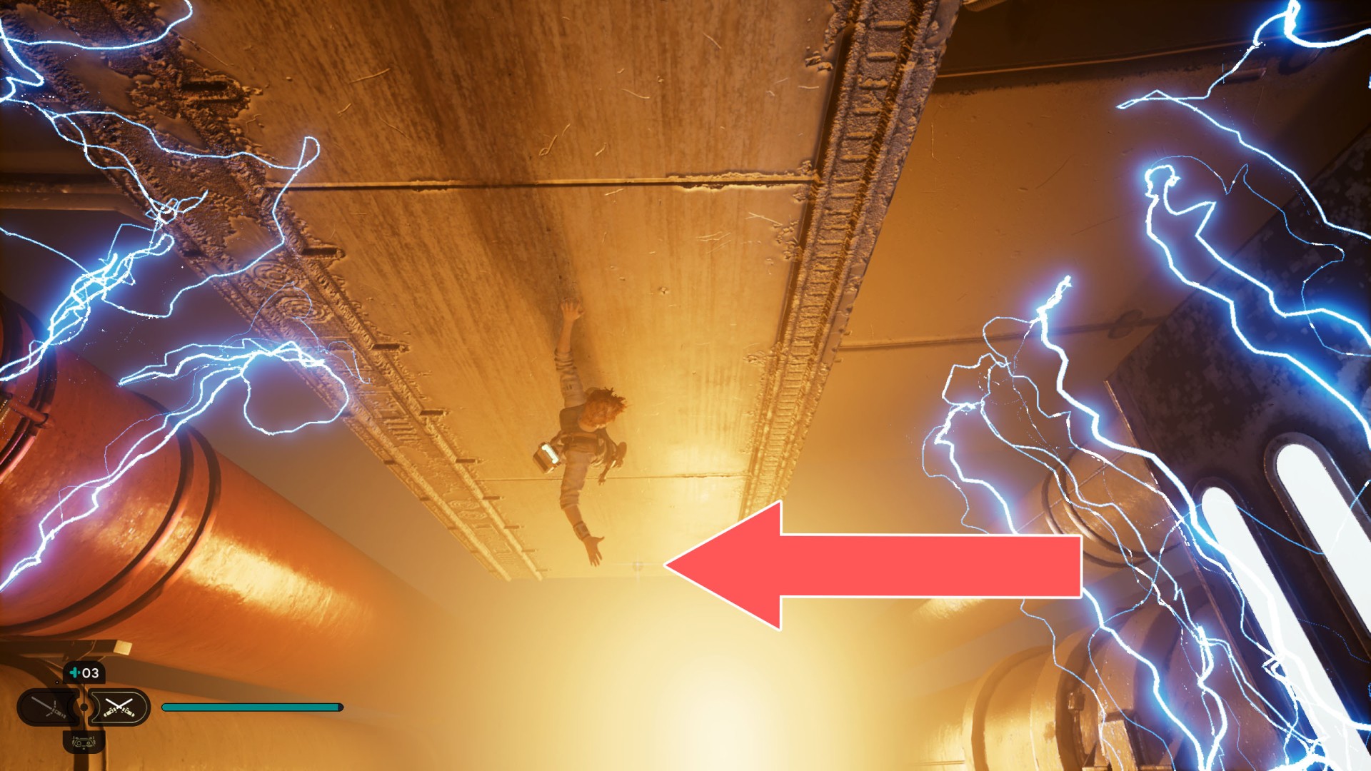 Show the mapDatadisc. If you hold the ball then the dust will move away from you and you will be able to safely walk here.