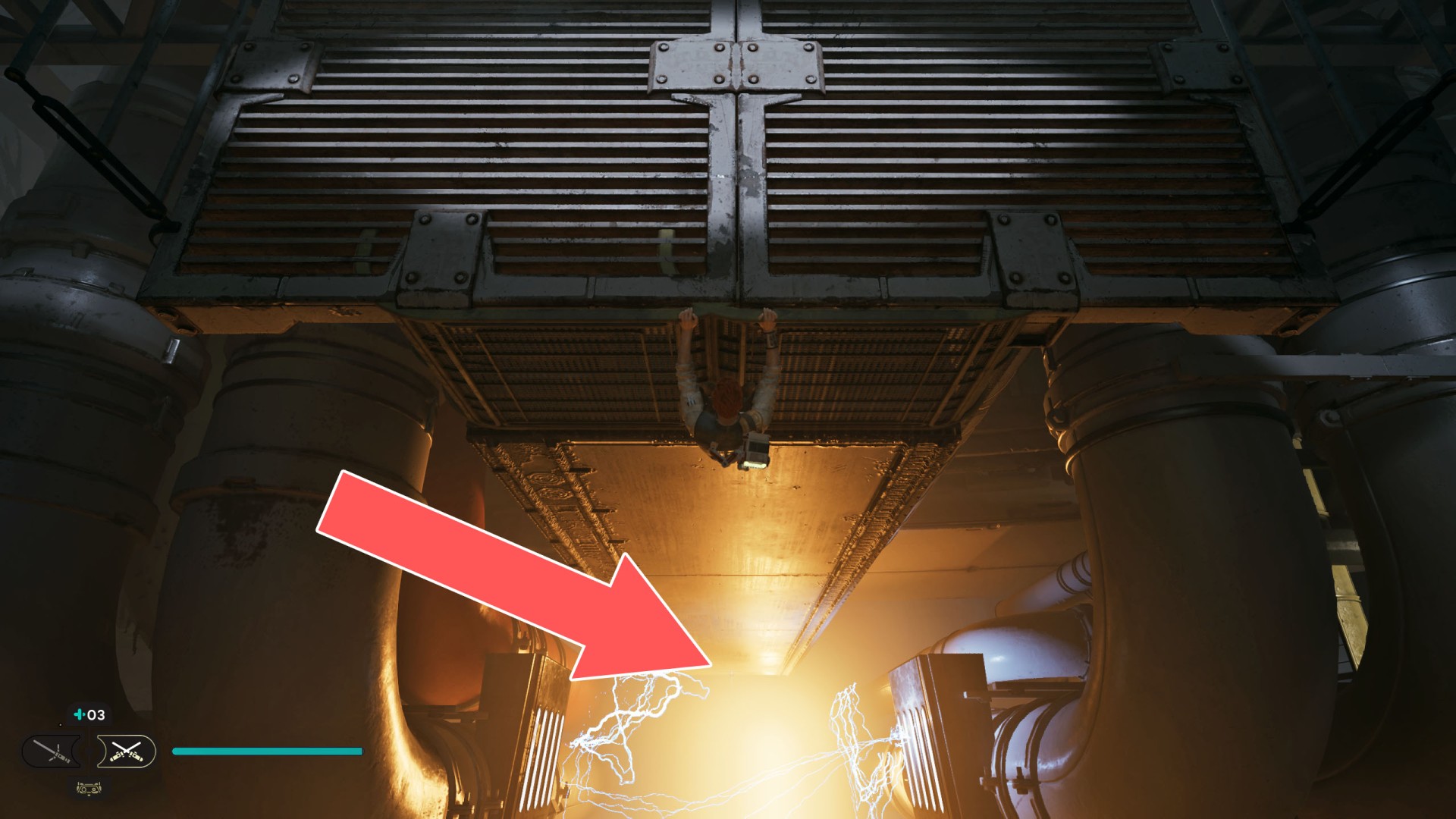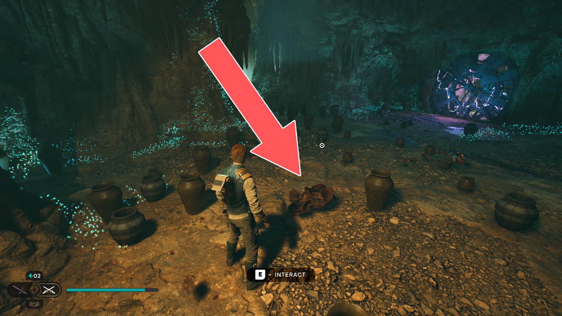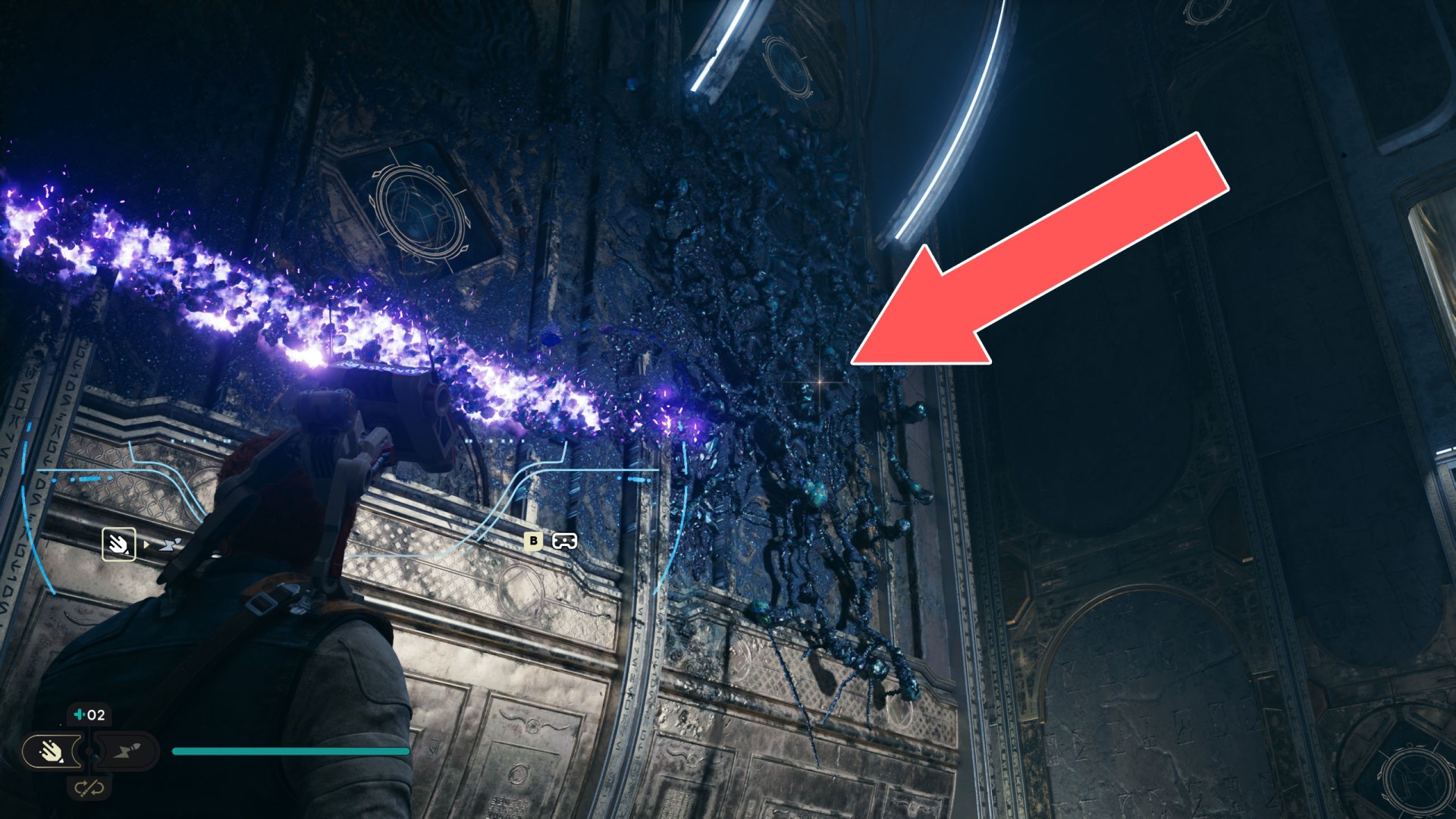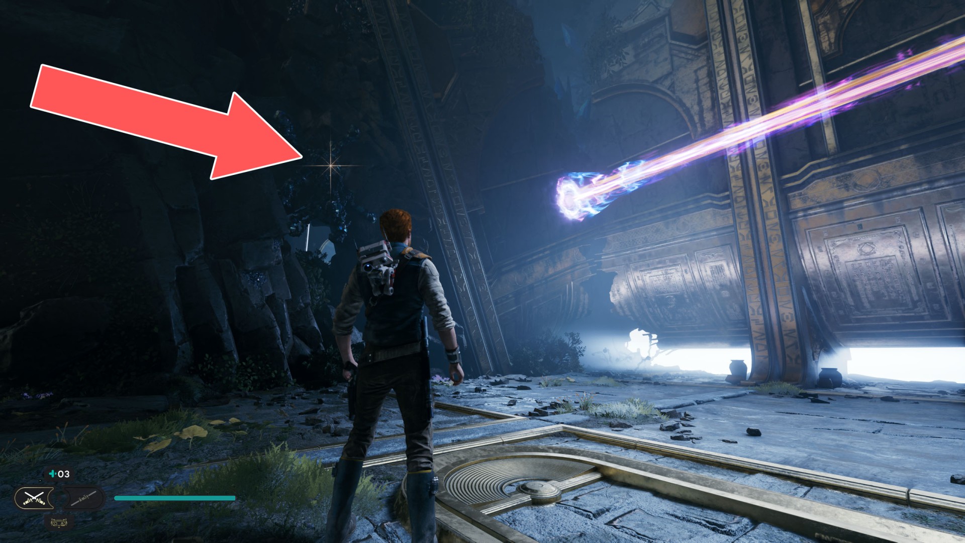 Show the mapDatadisc. If you hold the ball then the dust will move away from you and you will be able to safely walk here.