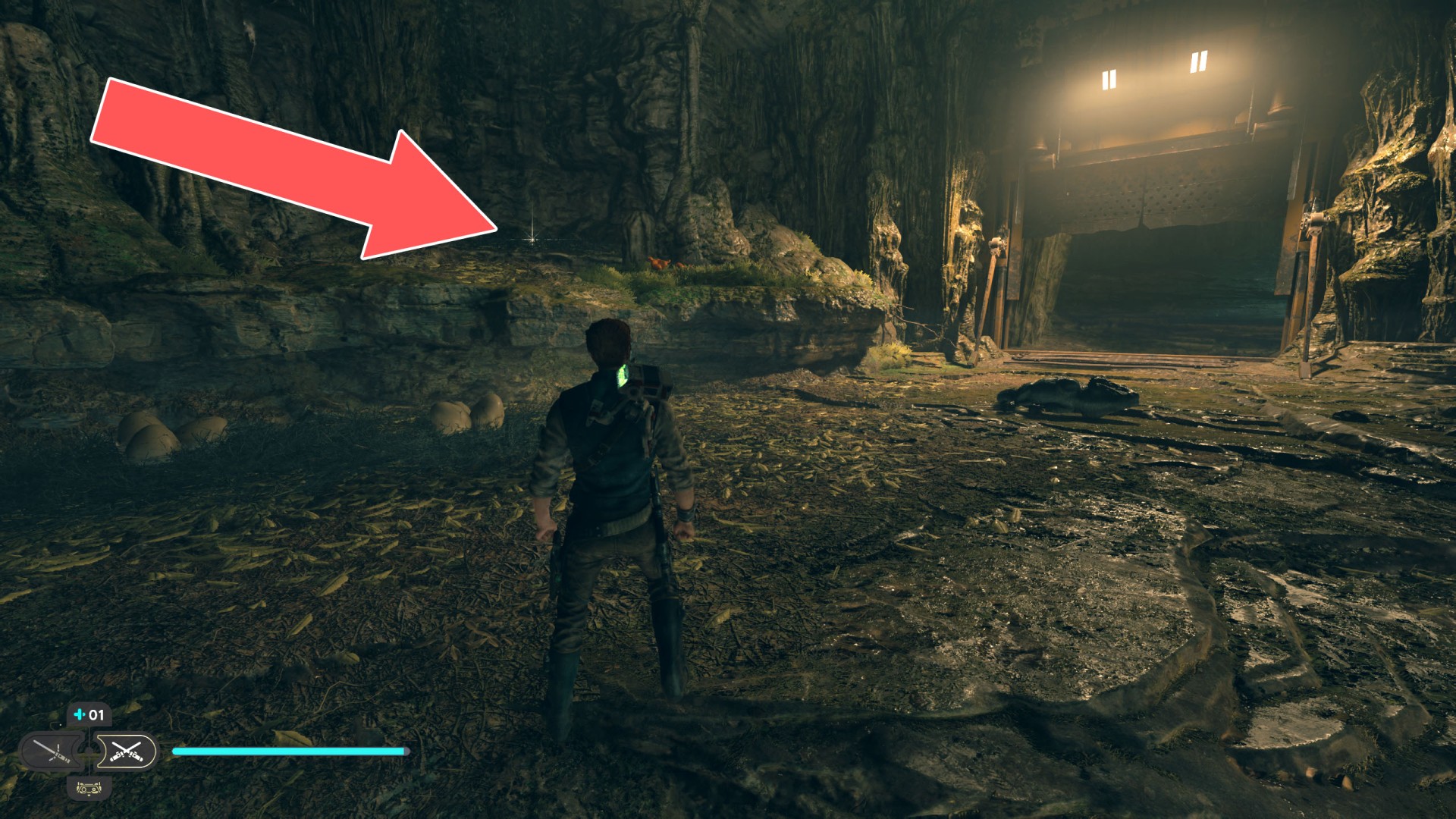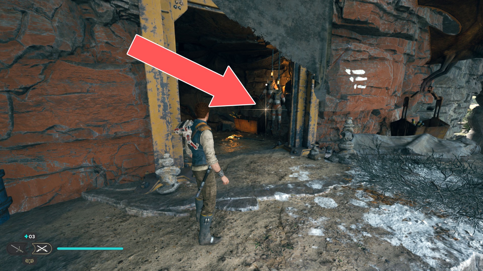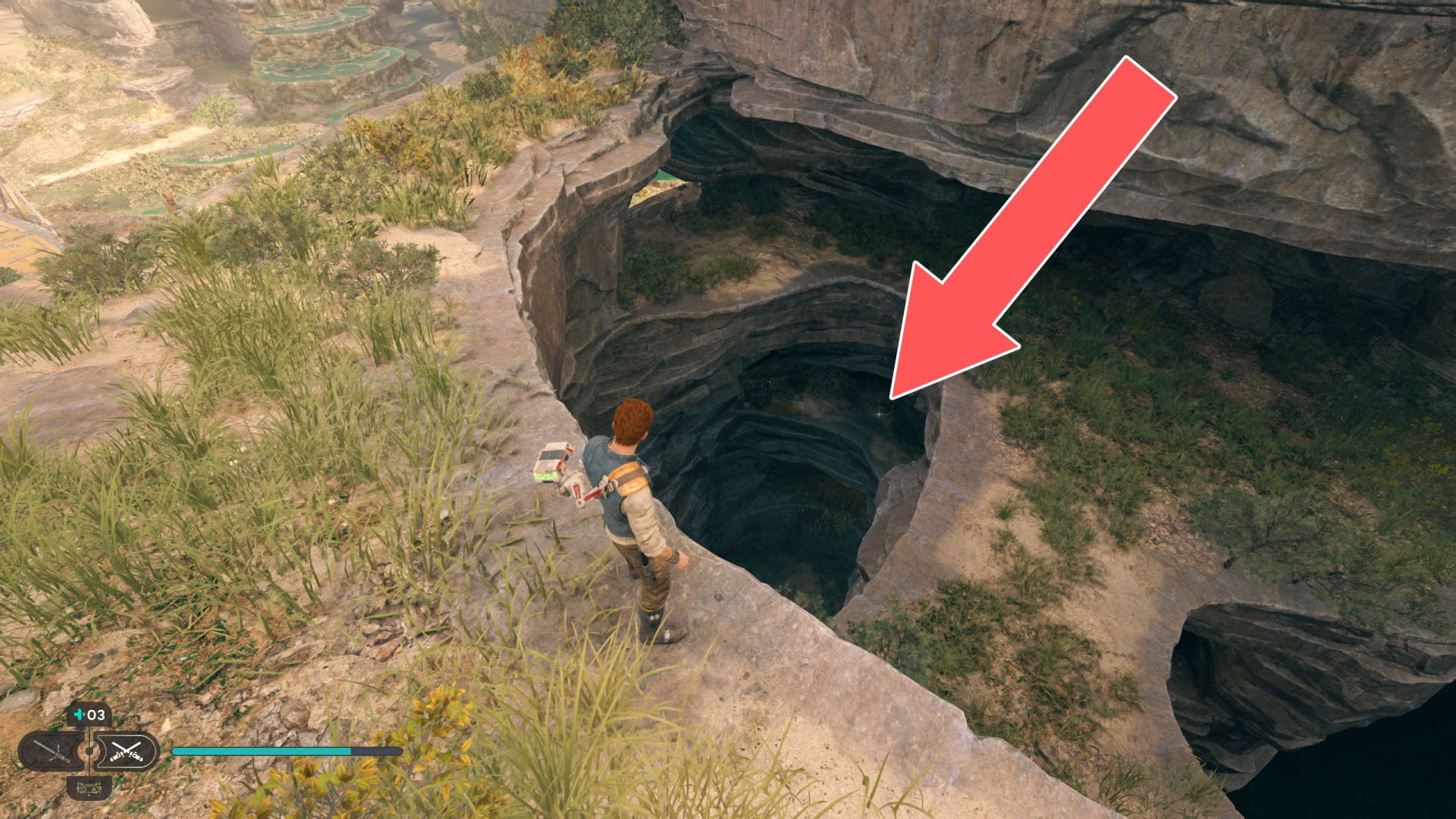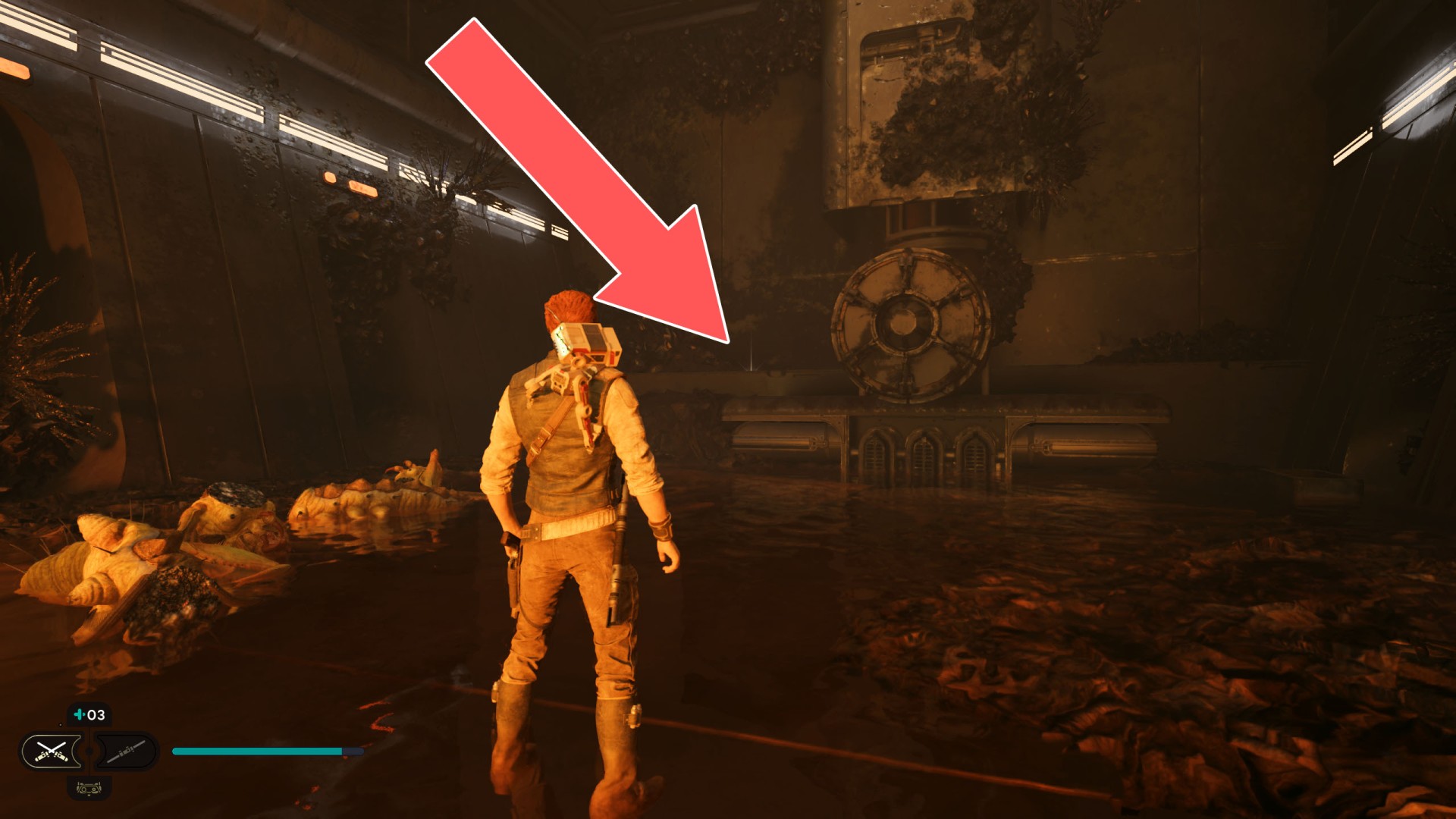 Show the mapDatadisc. If you hold the ball then the dust will move away from you and you will be able to safely walk here.