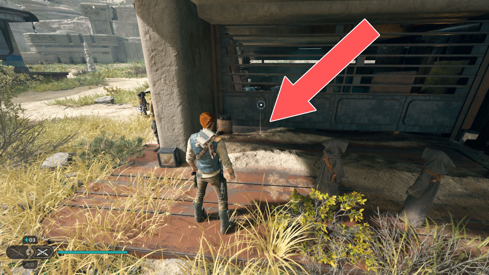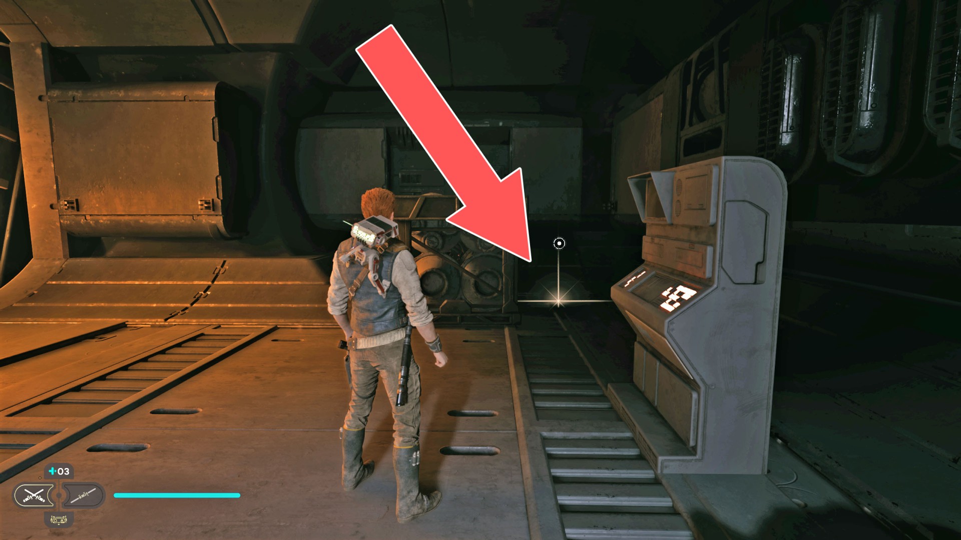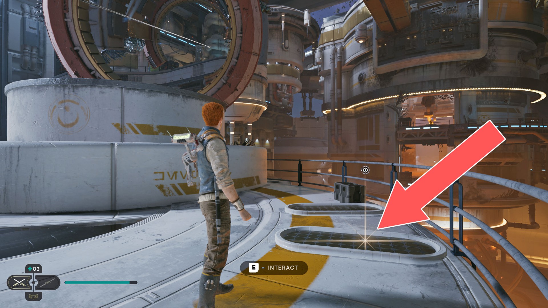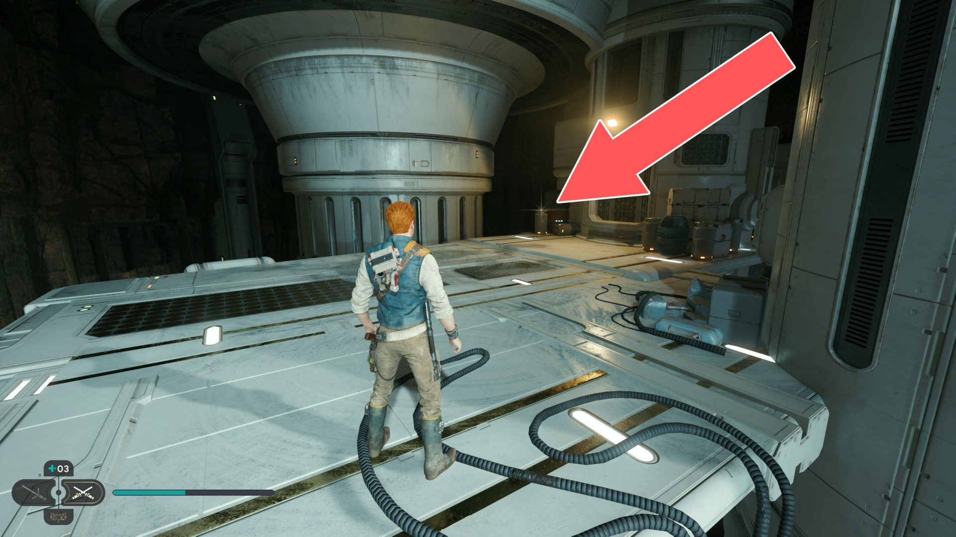 Show the mapDatadisc. The disk sits between the railing and the crates.