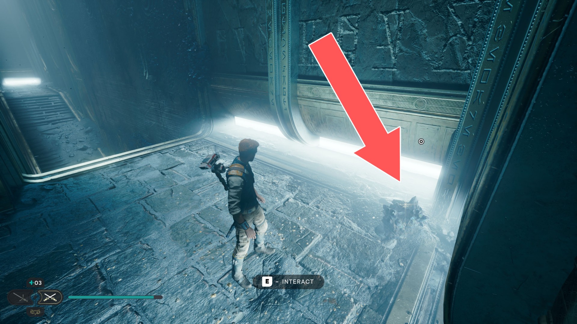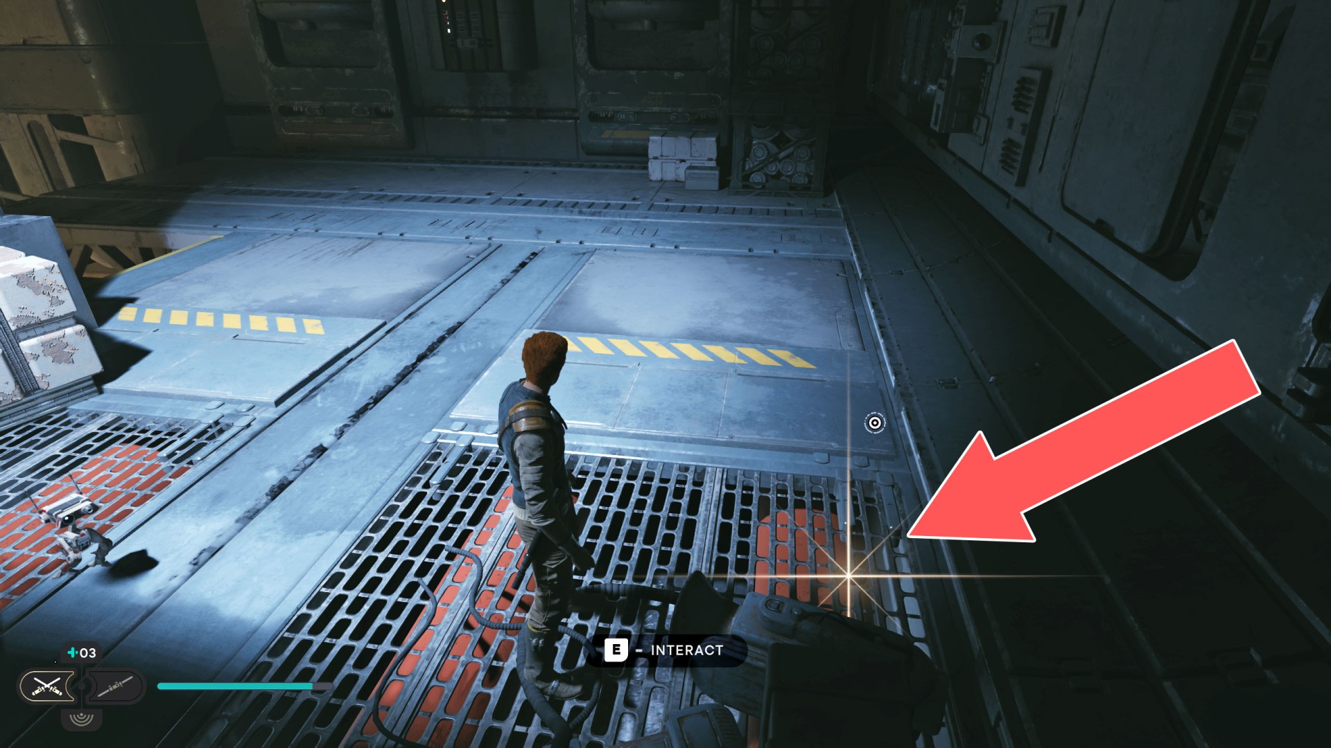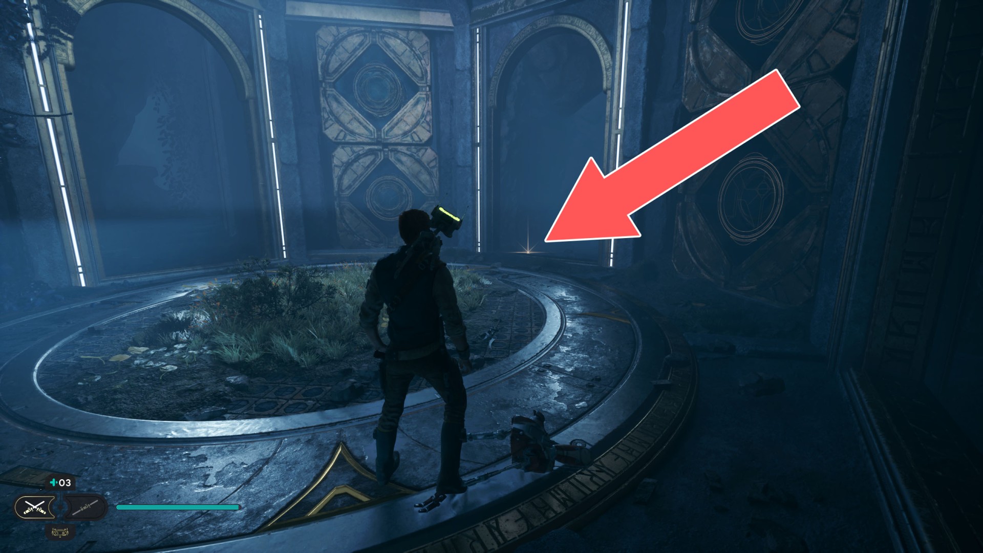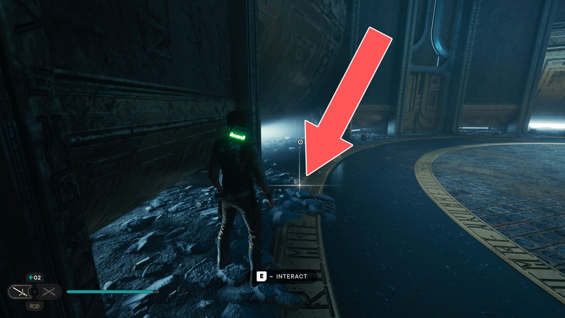 Show the mapDatadisc. It's stuck to the bottom of the sliding wall. Very difficult to collect so you will probably fall down after collecting it ;-)