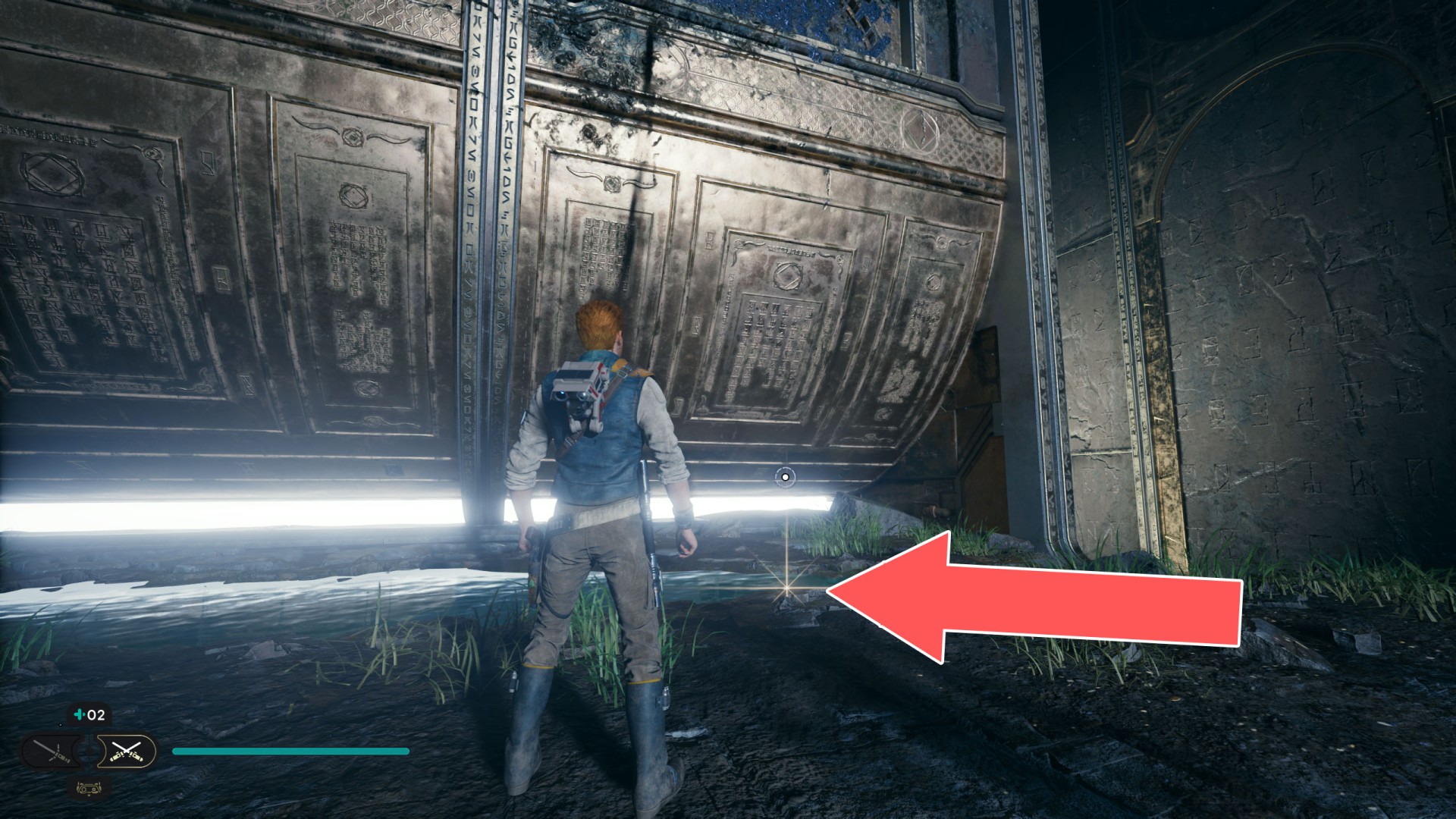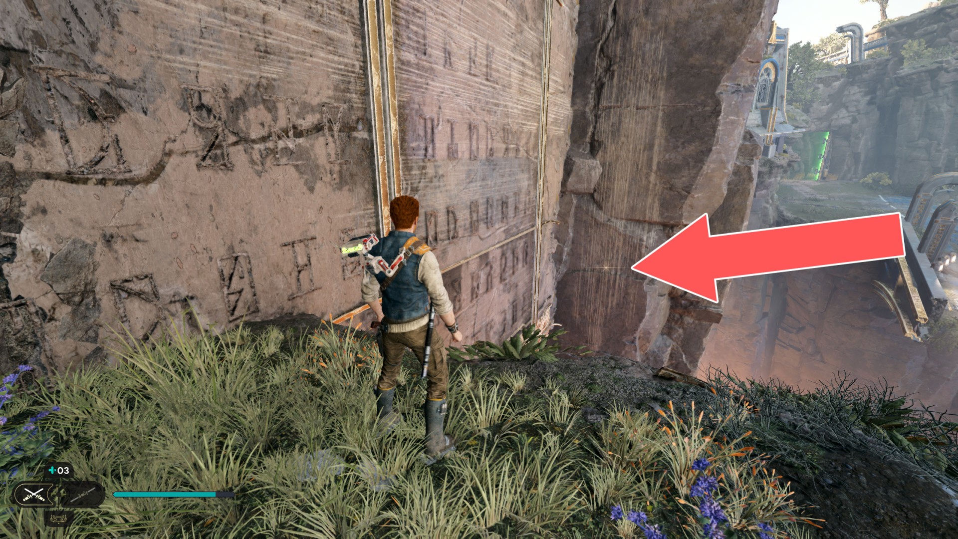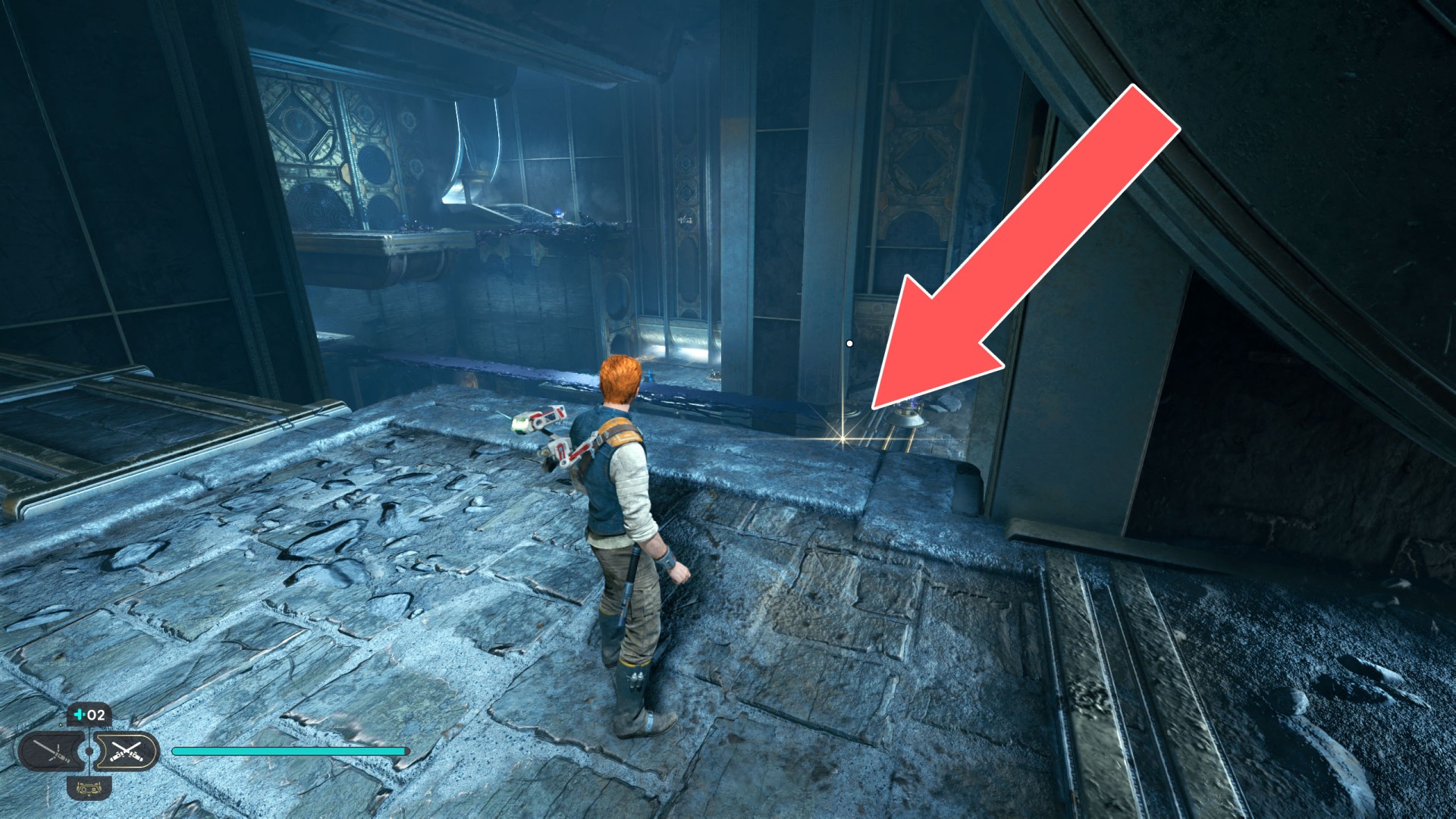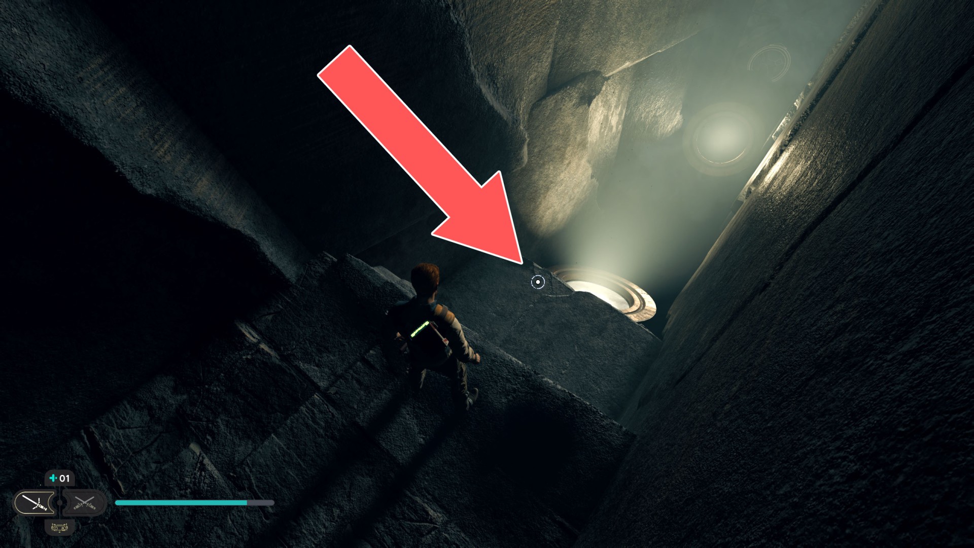 Show the mapDatadisc. It's stuck to the bottom of the sliding wall. Very difficult to collect so you will probably fall down after collecting it ;-)