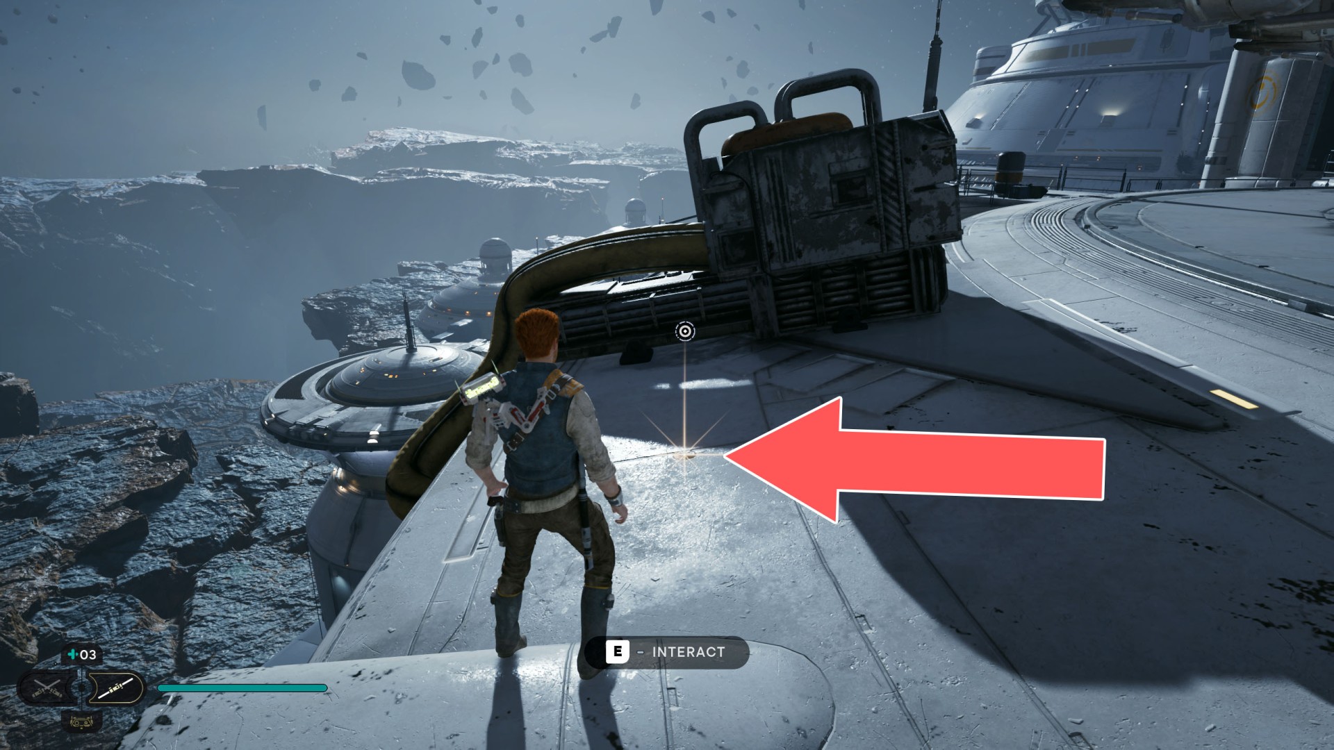 Show the mapDatadisc. You will find this disk on the edge of the landing pad where you landed the Mantis.