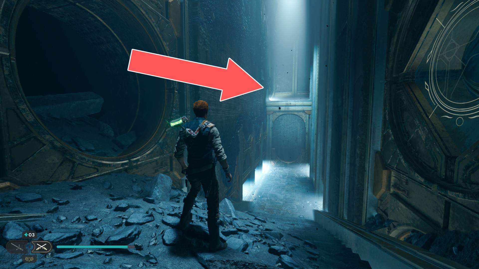 Show the mapDatadisc. You'll find it in the corner of the chamber you drop into at some point, where you have to kill some Shiverpedes.
