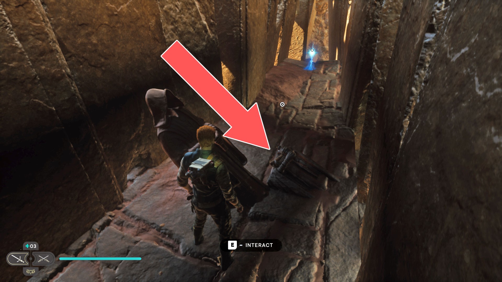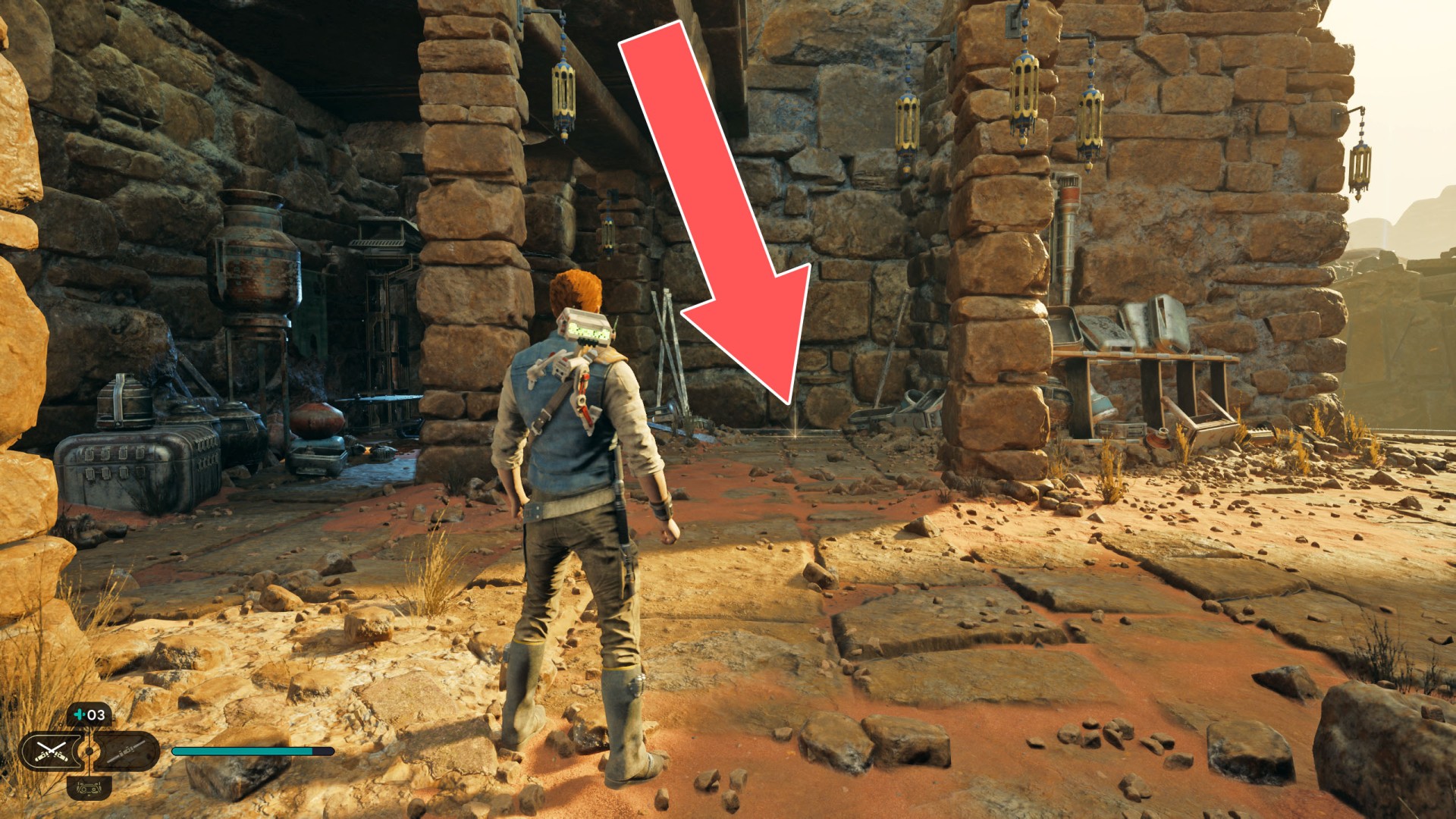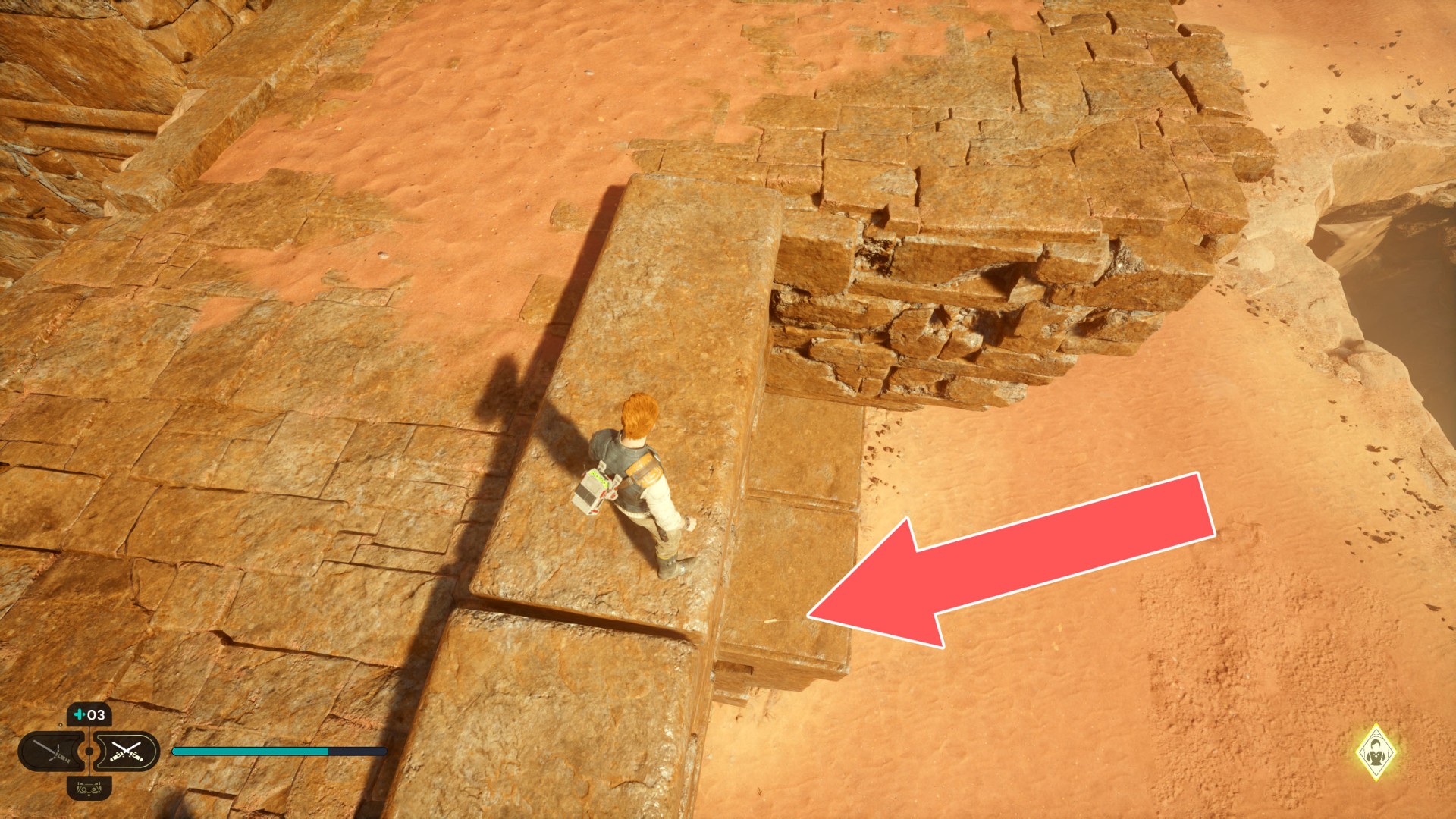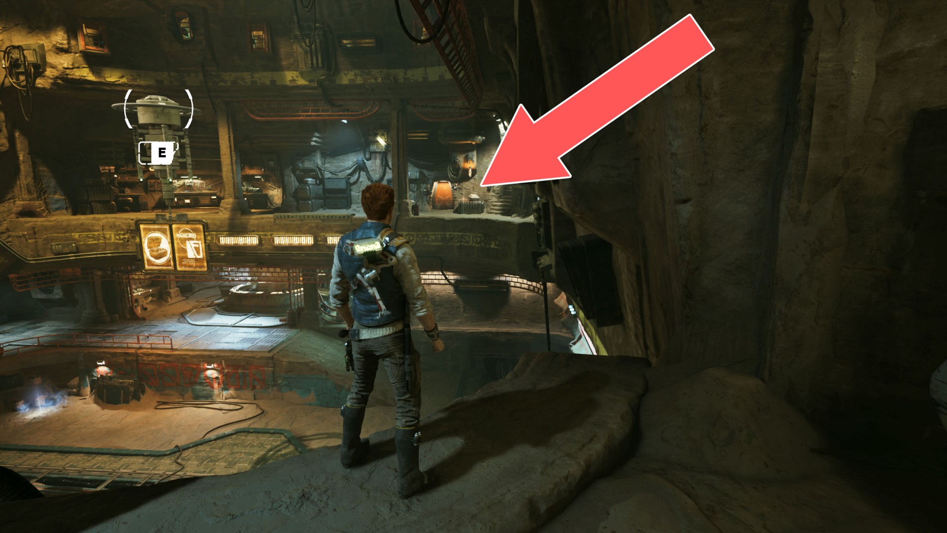 Jedha Scroll. You can get here by just using a double jump and hugging the wall, but this was probably not intended. And maybe it will be changed someday. Normally, you can get here at a later stage of the storyline. Kill a scavenger droid and it will drop a scroll.