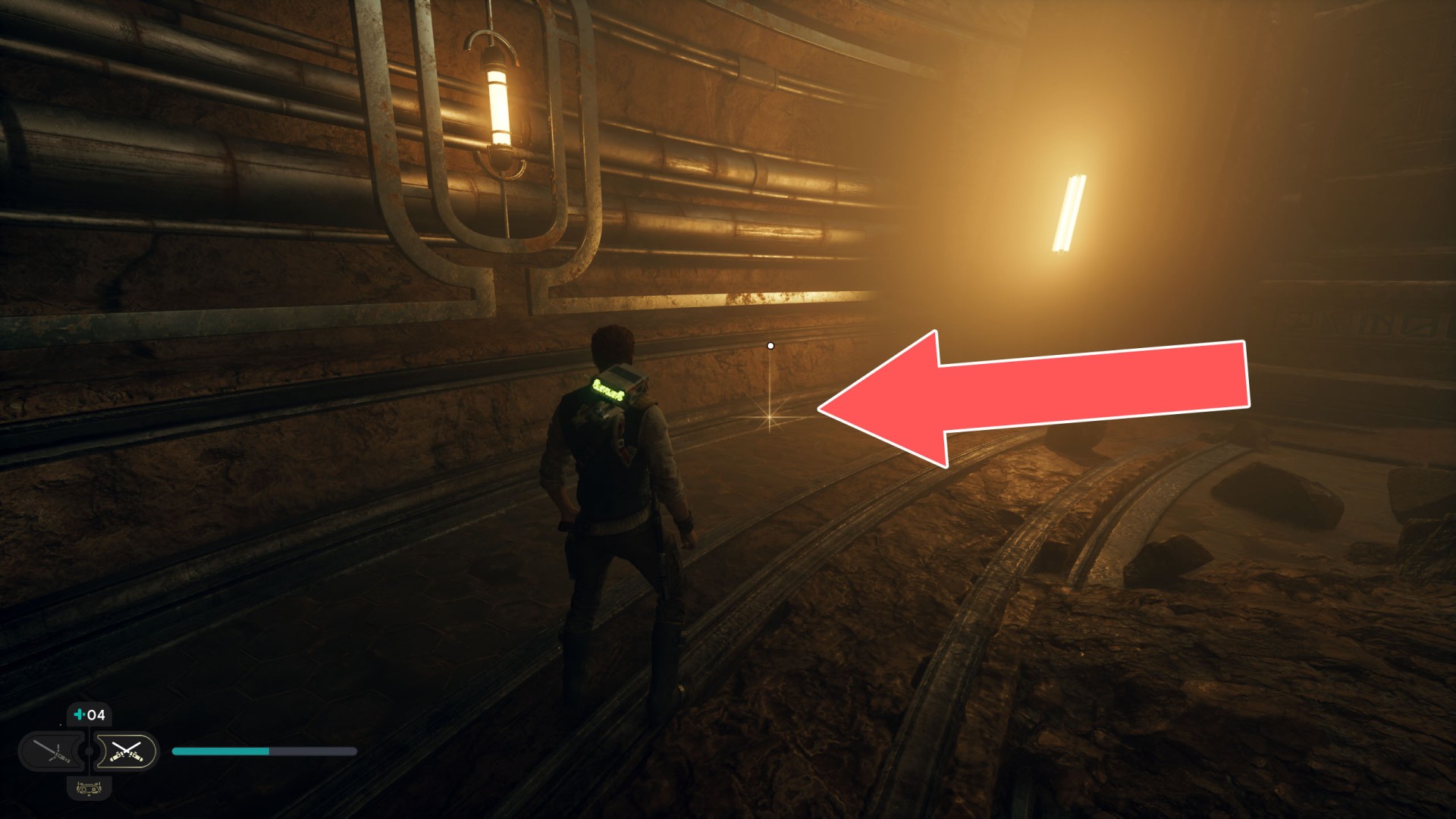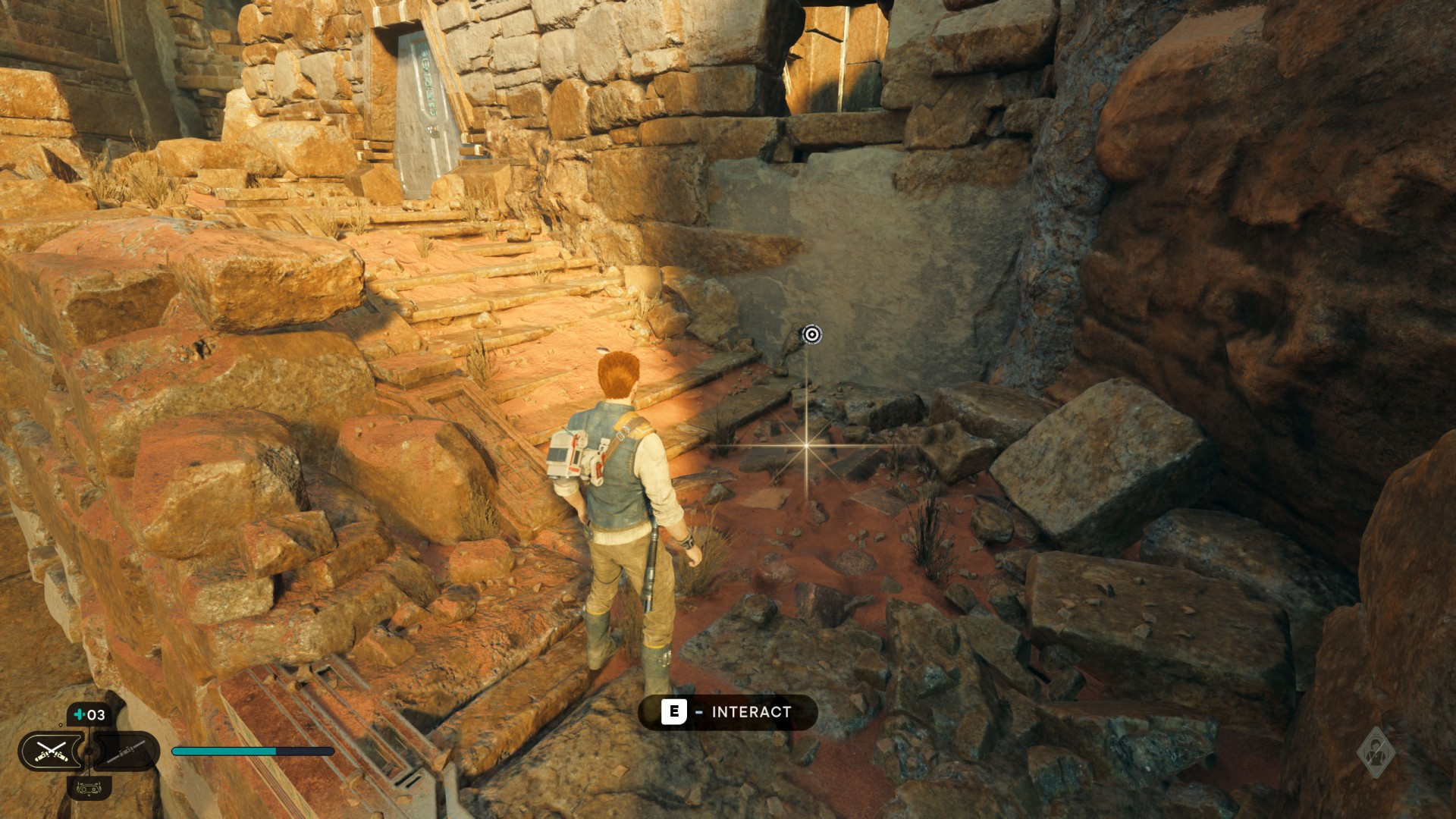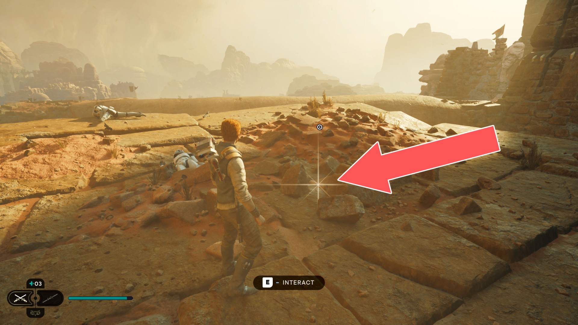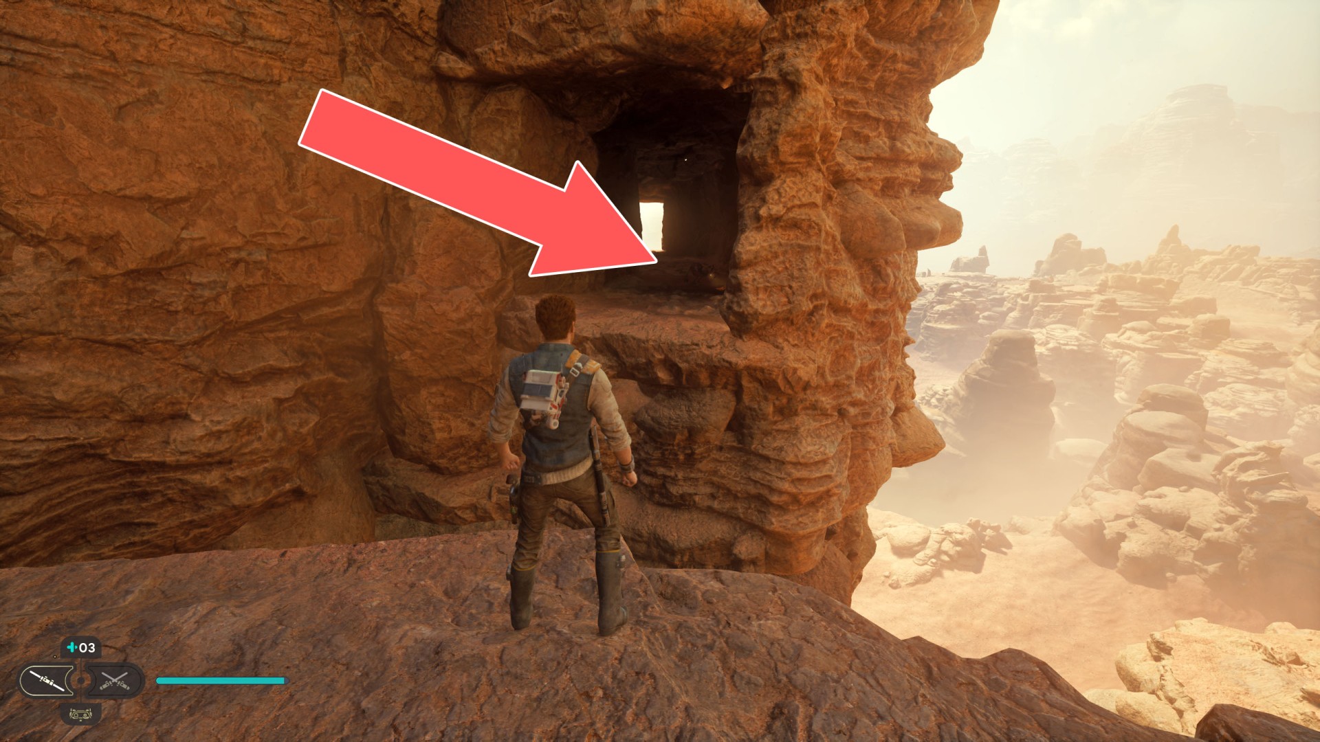 Jedha Scroll. You can get here by just using a double jump and hugging the wall, but this was probably not intended. And maybe it will be changed someday. Normally, you can get here at a later stage of the storyline. Kill a scavenger droid and it will drop a scroll.