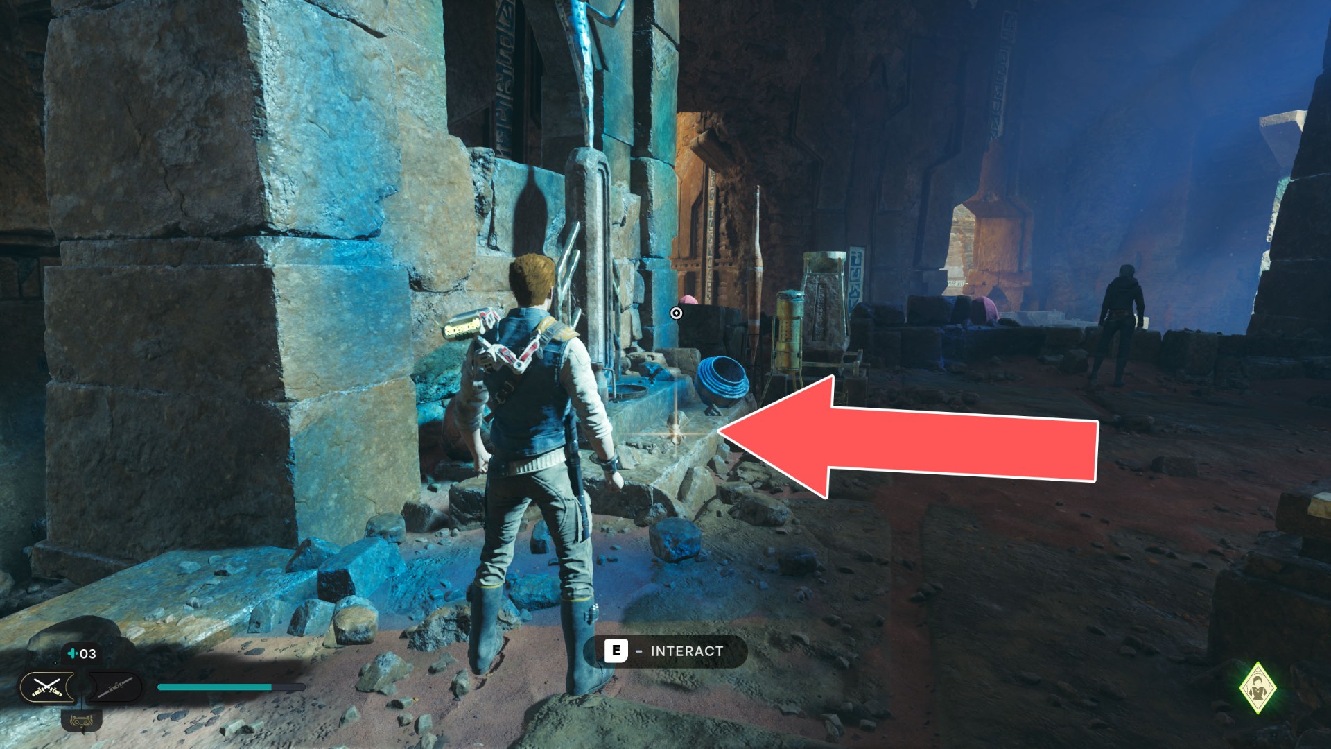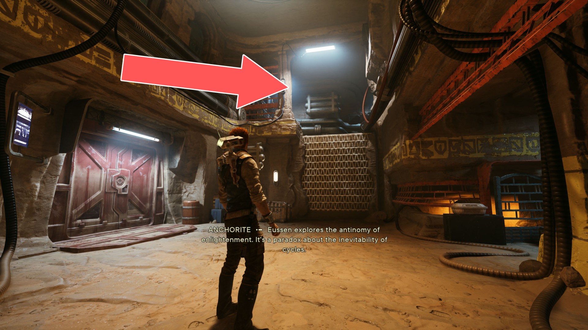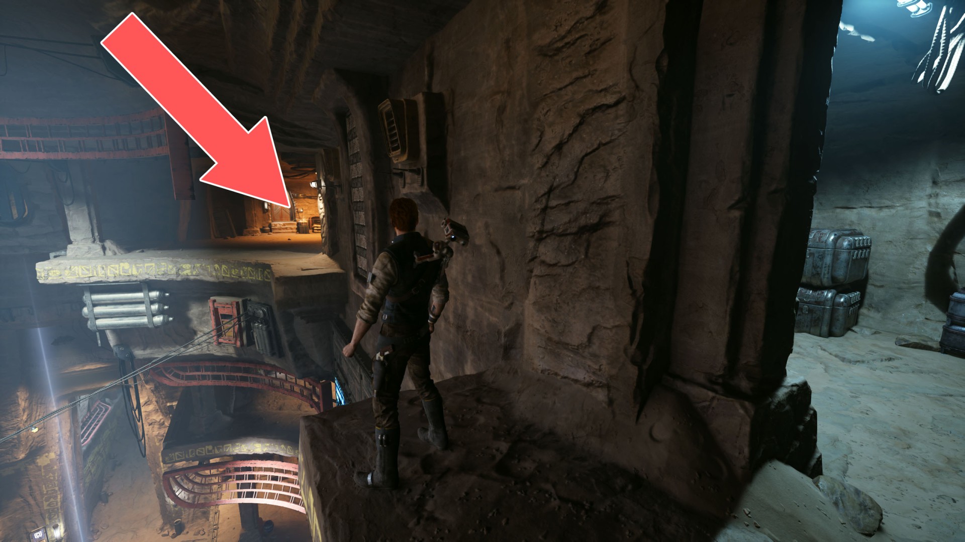 Show the mapJedha Scroll. Requires: Dash ability (the fact that this is possible may be unintentional) or Upgraded Ascension Cable (Grappling Hook).