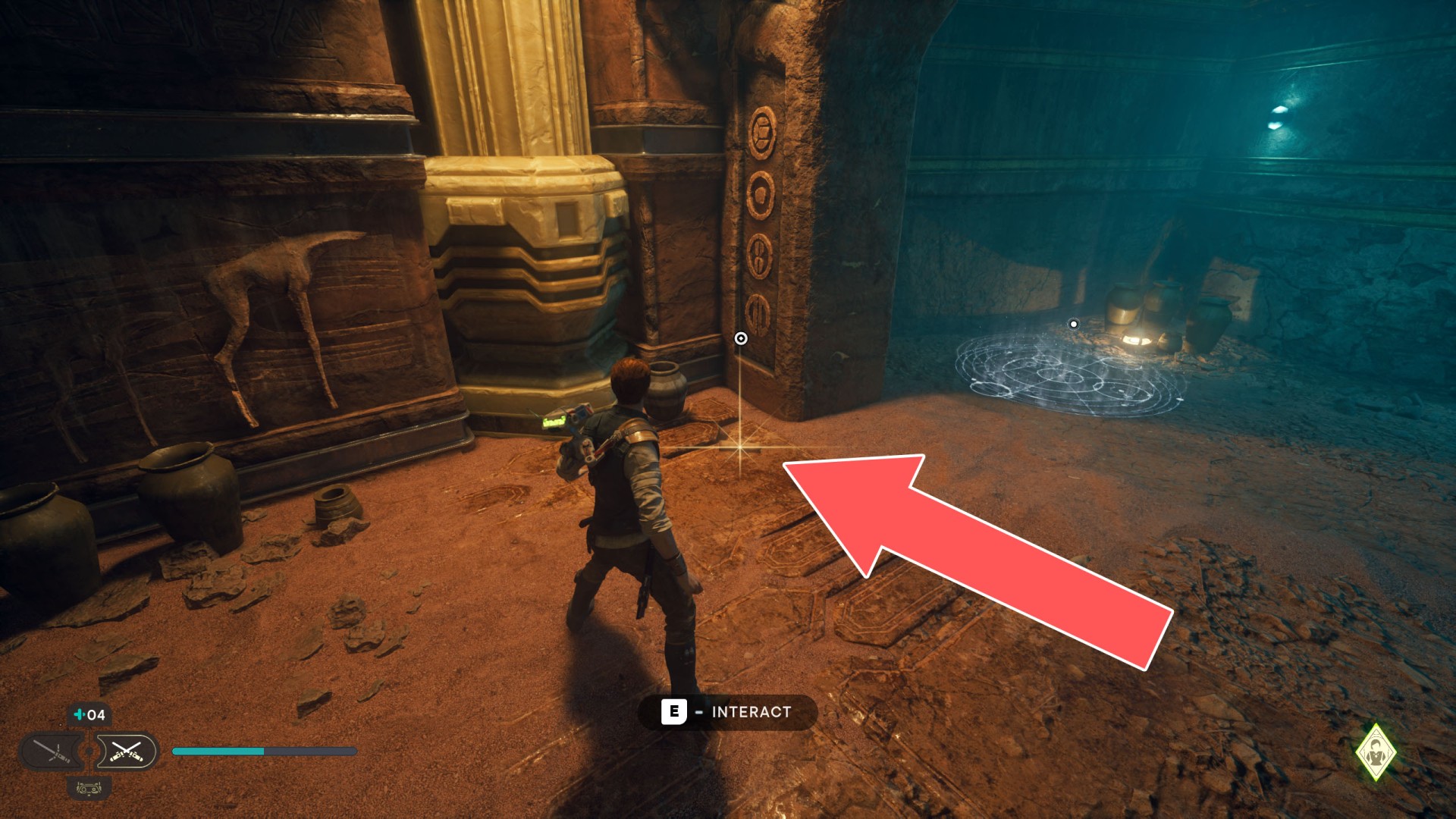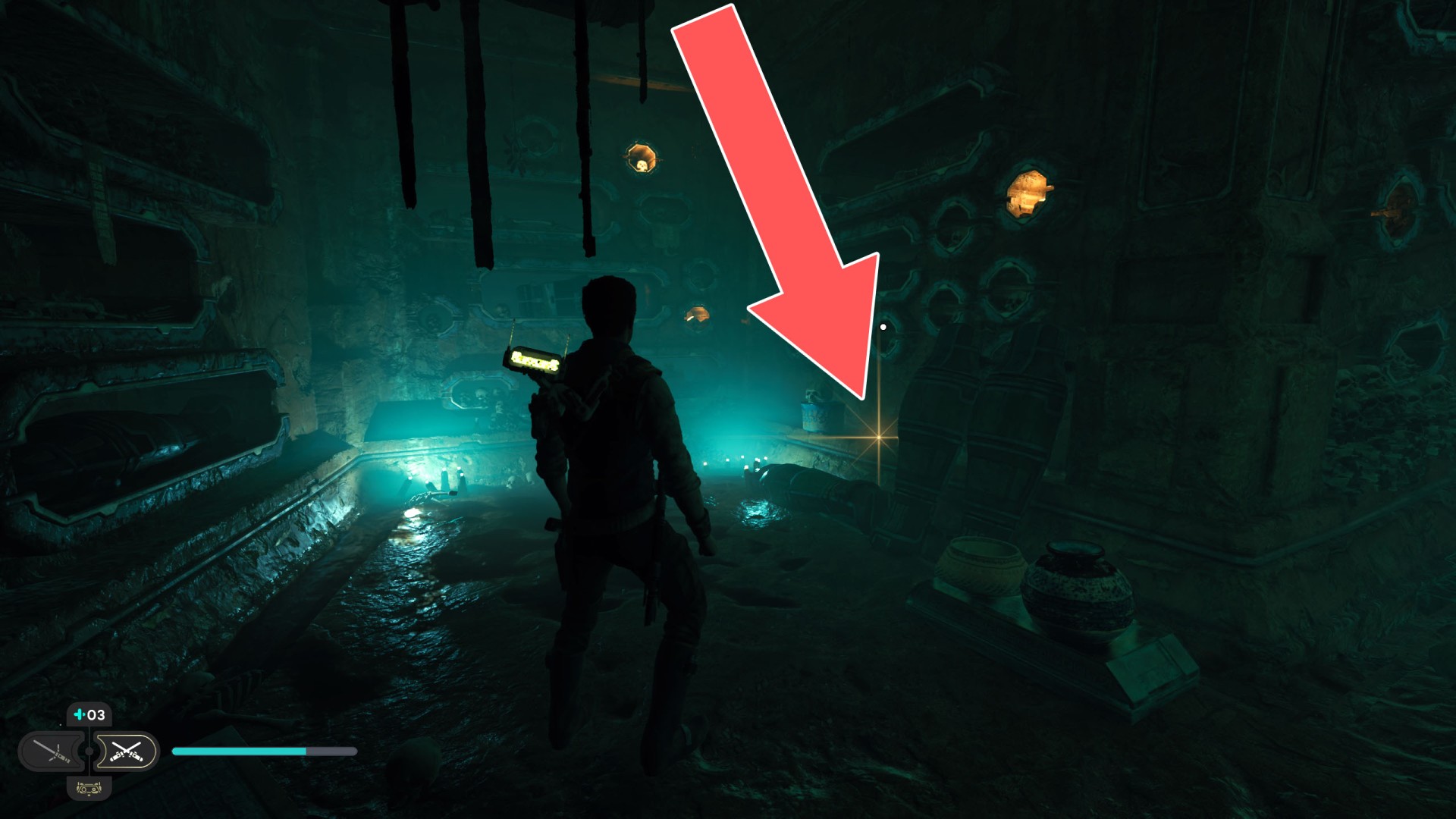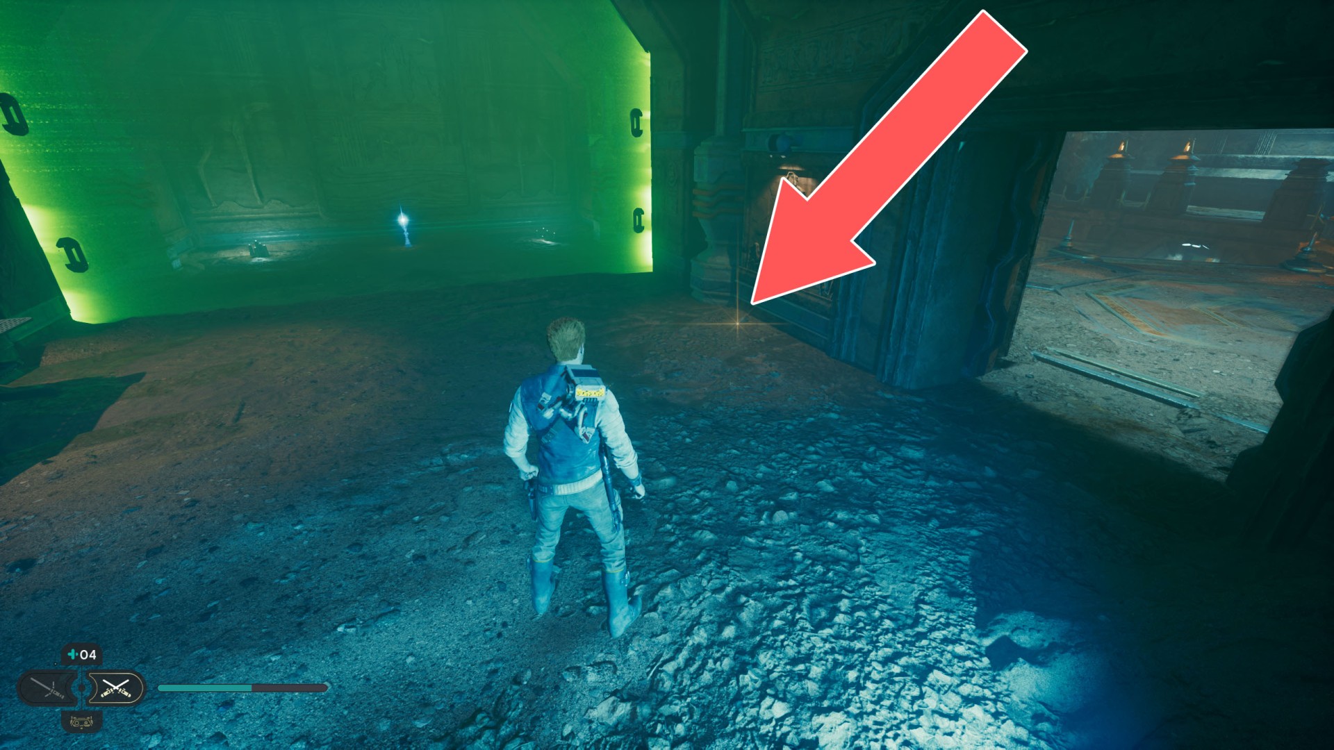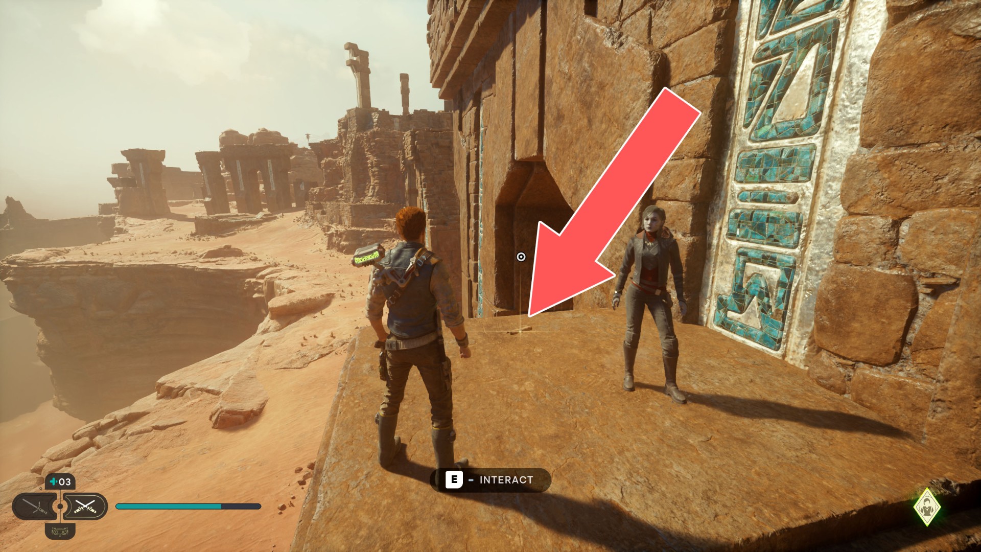 Show the mapJedha Scroll. Requires: Dash ability (the fact that this is possible may be unintentional) or Upgraded Ascension Cable (Grappling Hook).