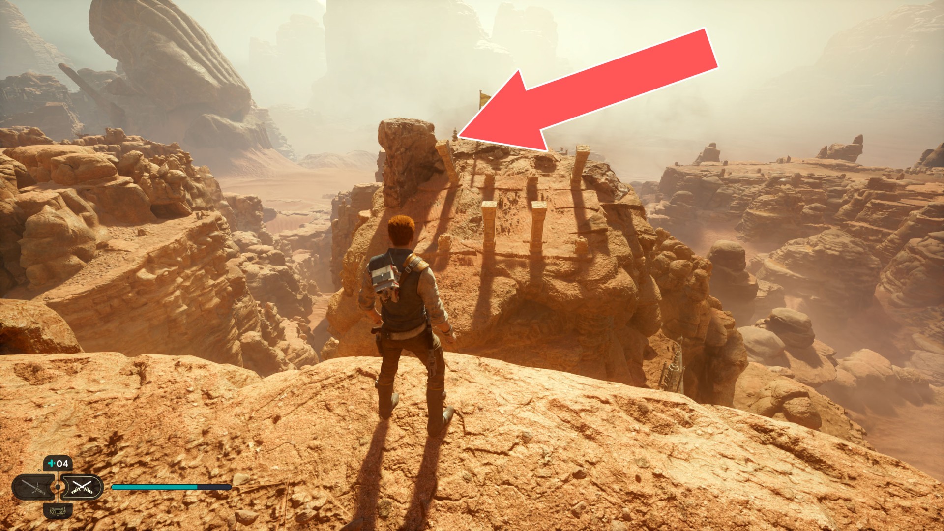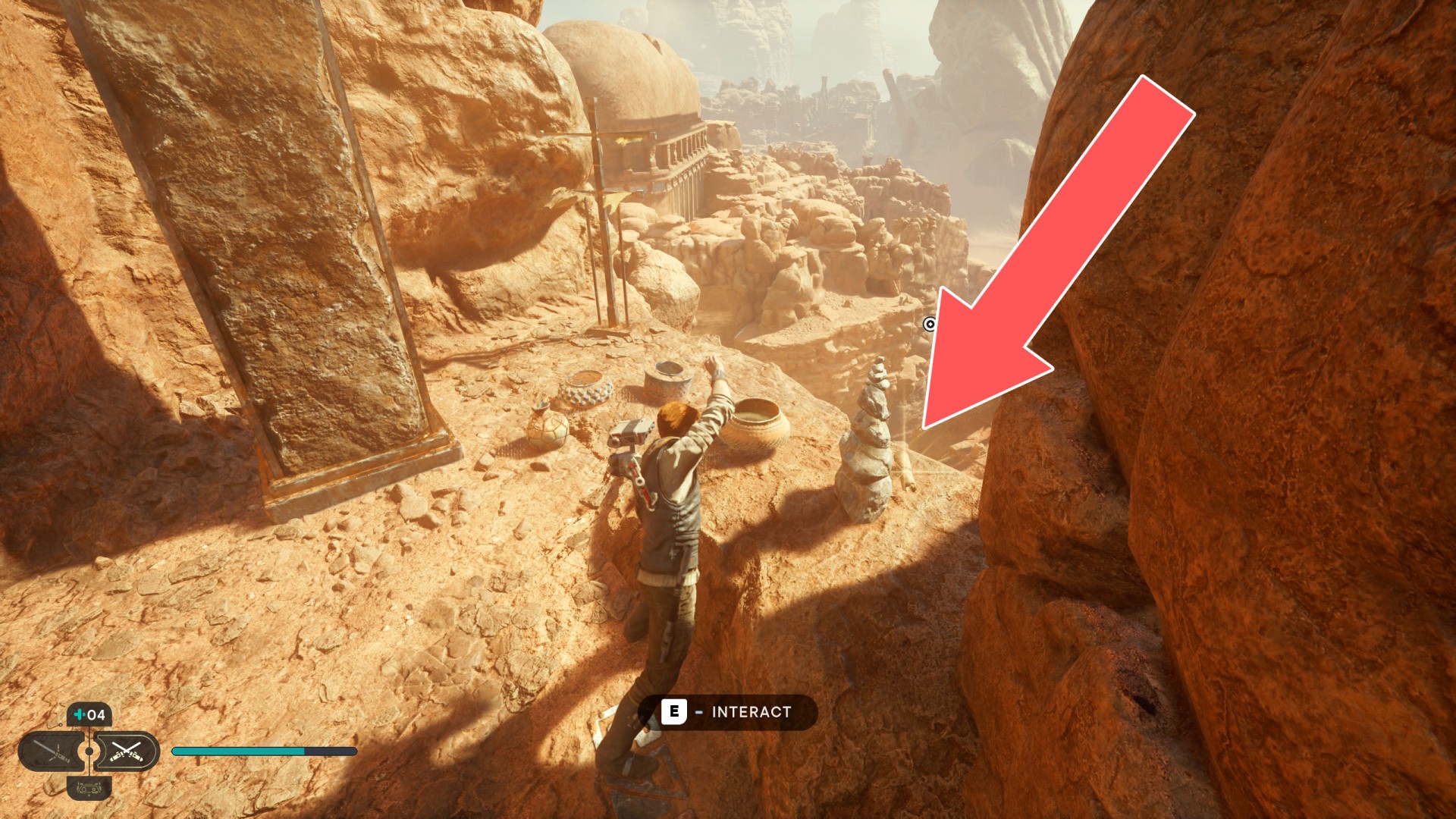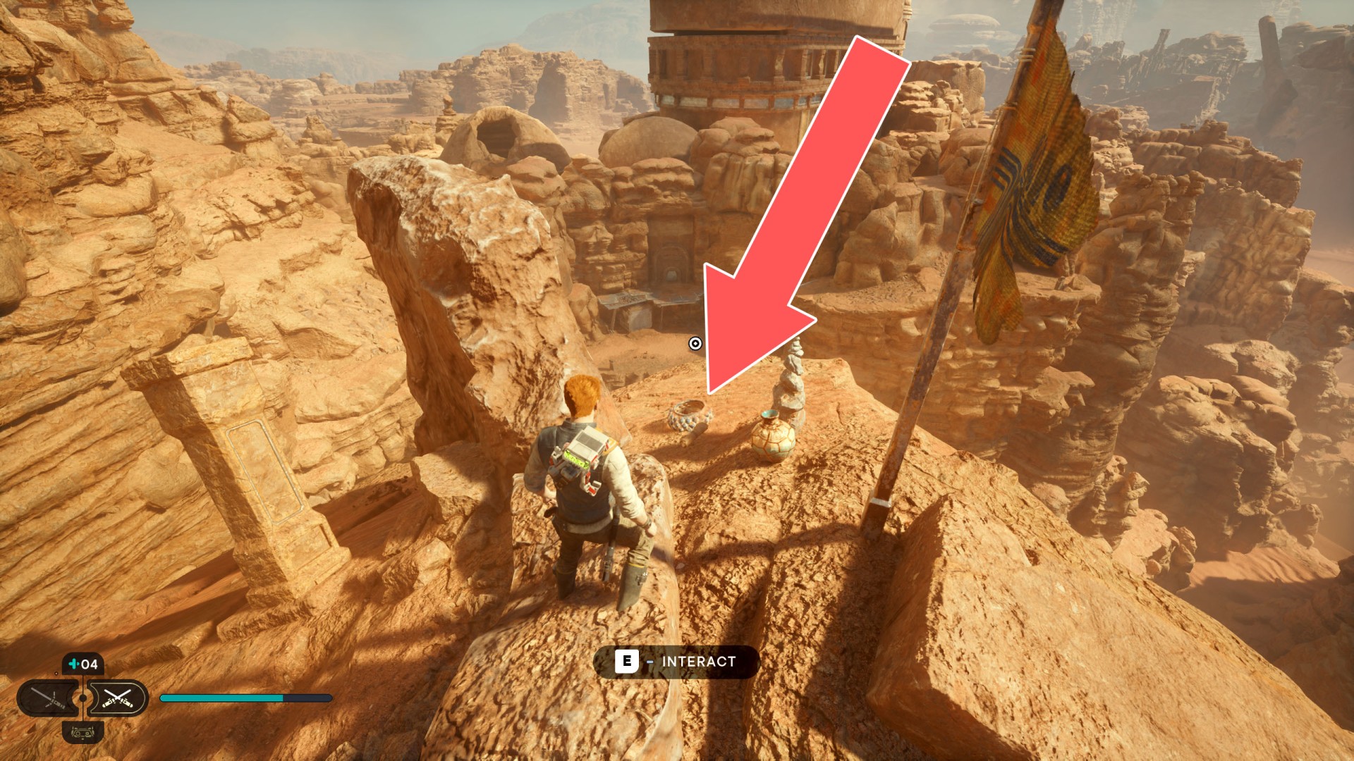 Show the mapJedha Scroll. Requires: Upgraded Ascension Cable (Grappling Hook). To reach it jump off the stone column on which the Arid Flats Essence 3/3 is.