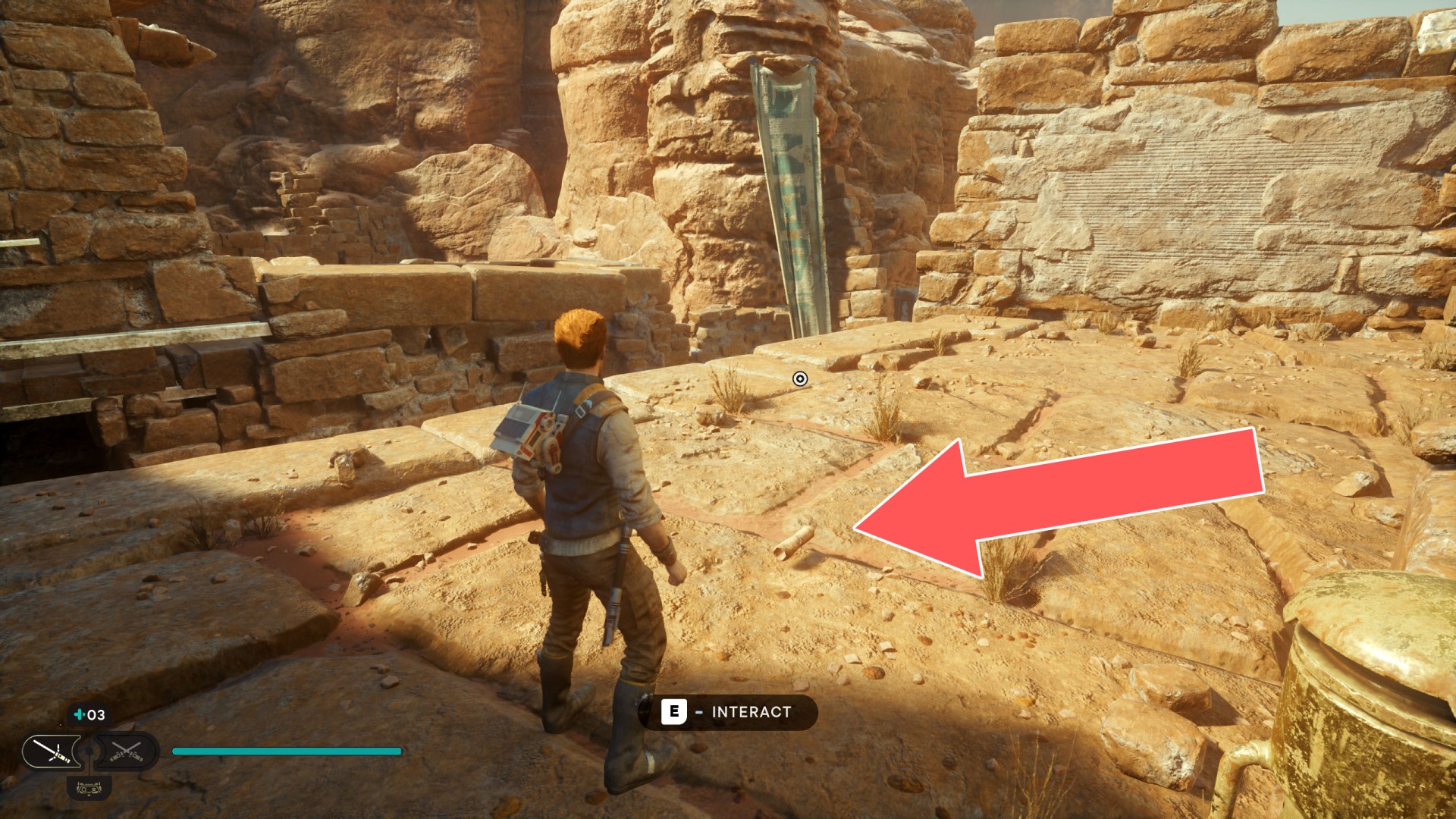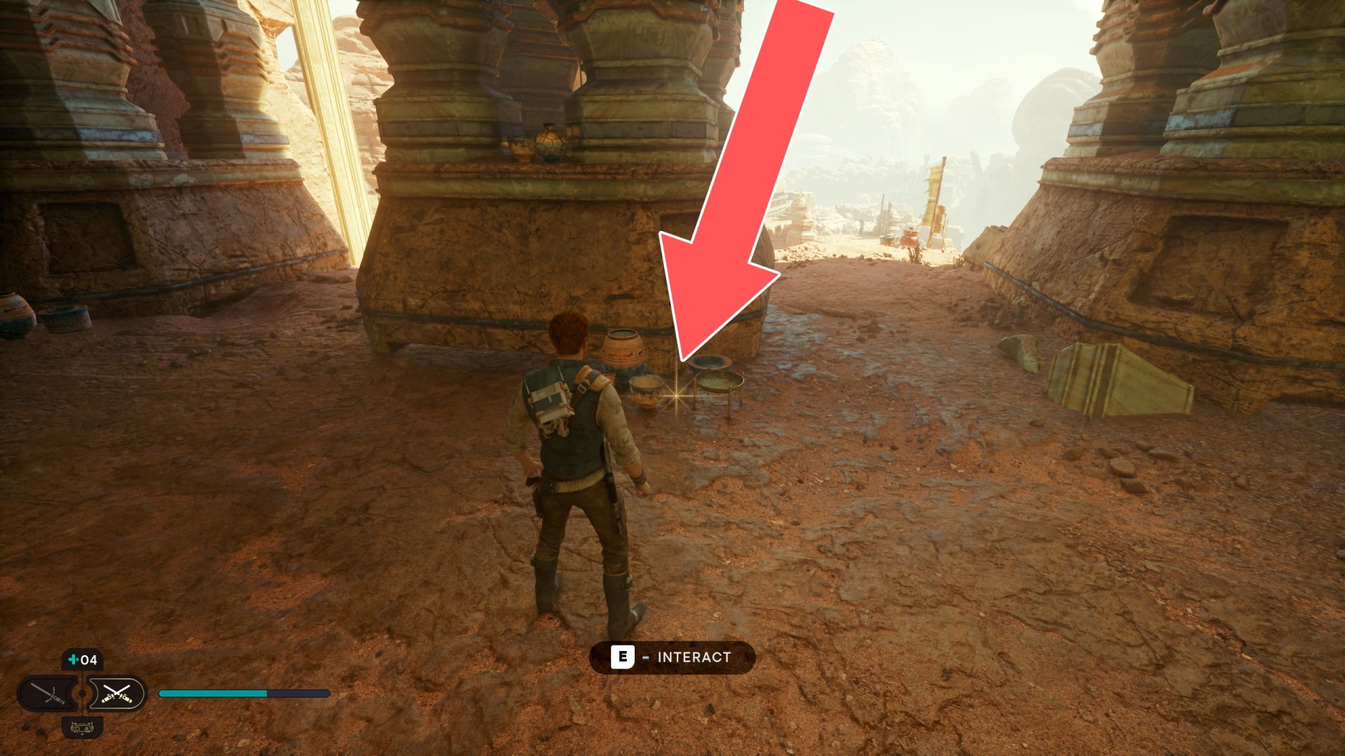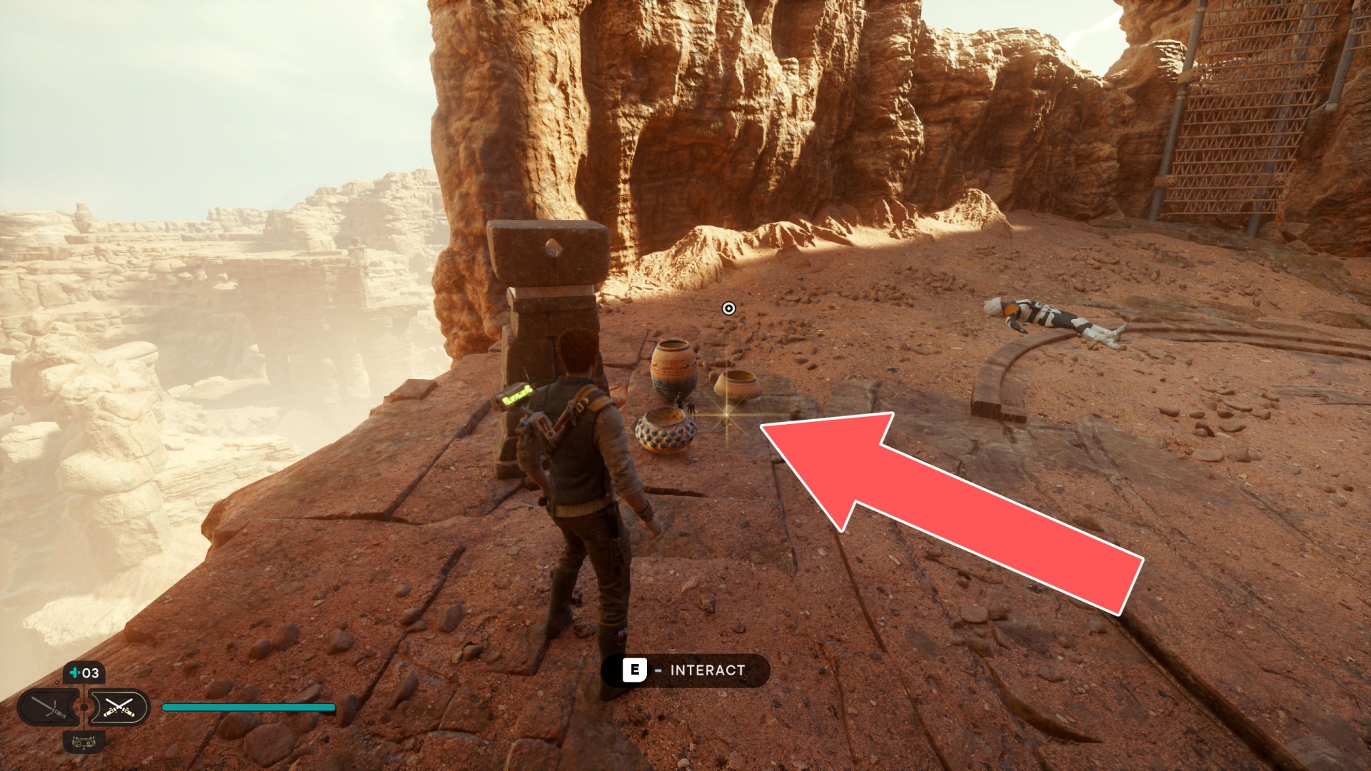 Show the mapJedha Scroll. Requires: Upgraded Ascension Cable (Grappling Hook). To reach it jump off the stone column on which the Arid Flats Essence 3/3 is.