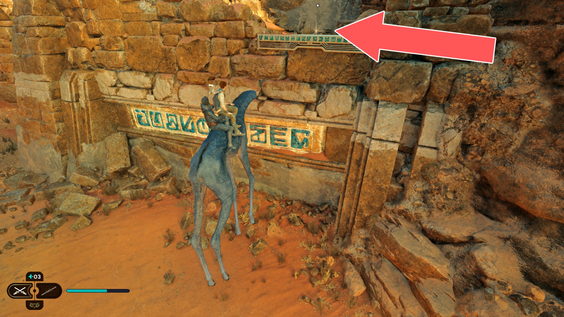 Show the mapJedha Scroll. To be able to get here get on the spamel, ride up to the edge and jump up.