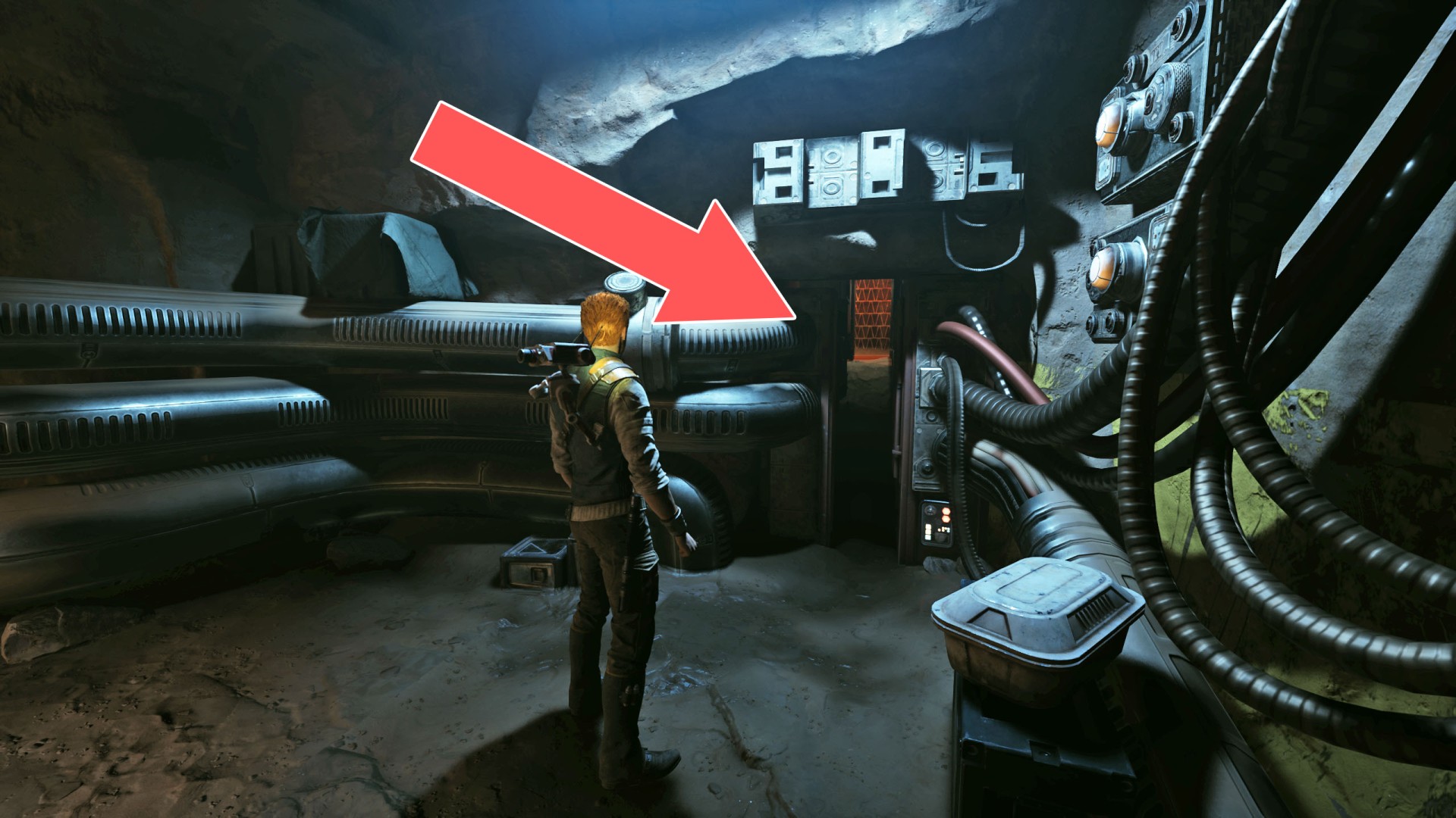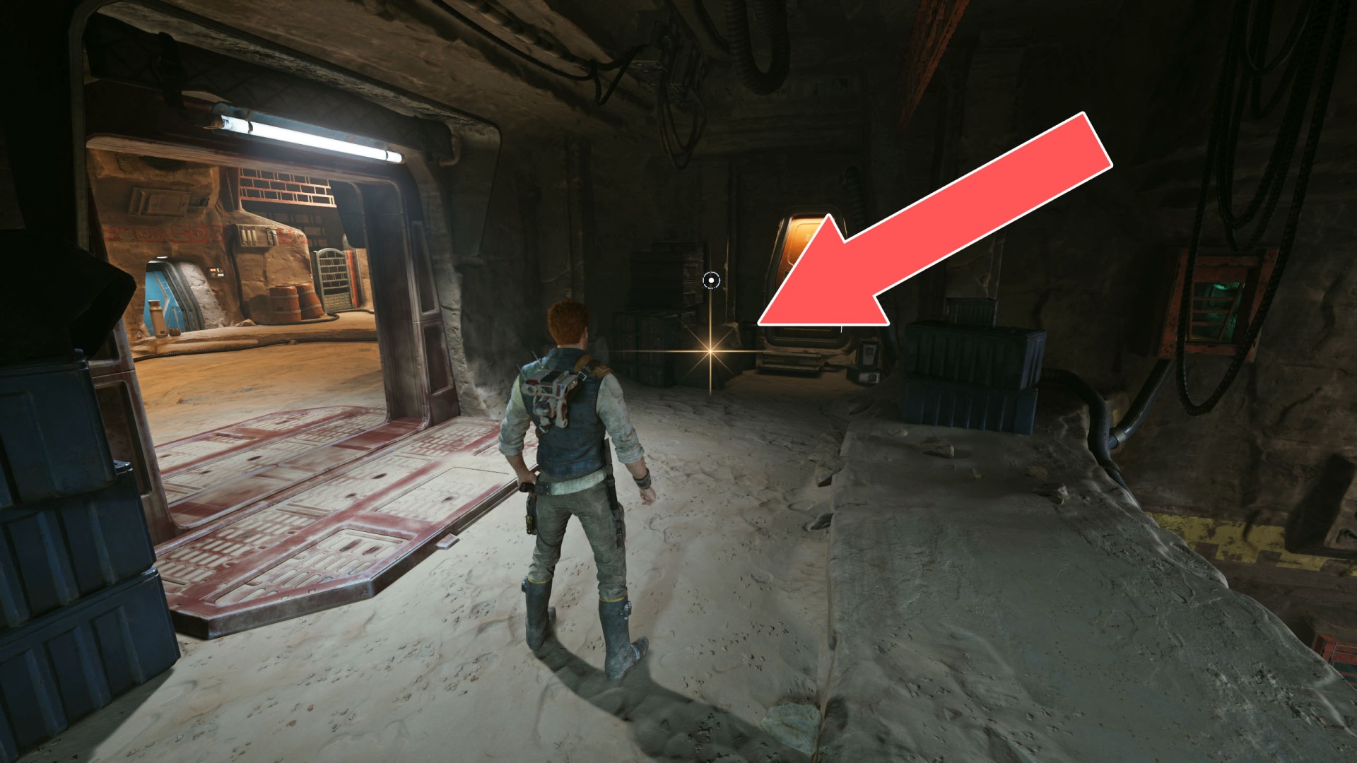 Show the mapJedha Scroll. This is near where you will encounter a stormtrooper with his back turned to you and sitting on the ground.