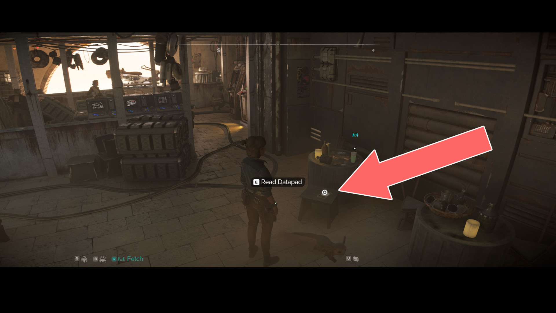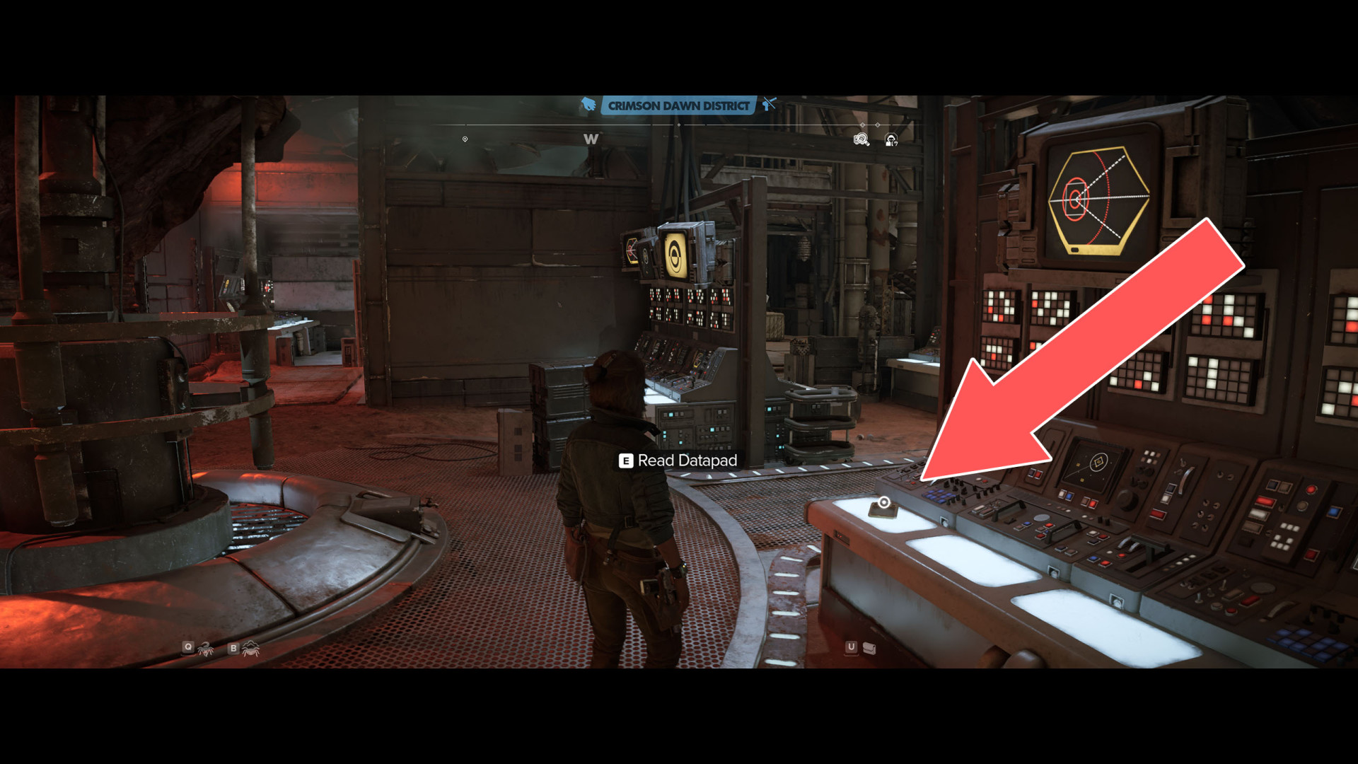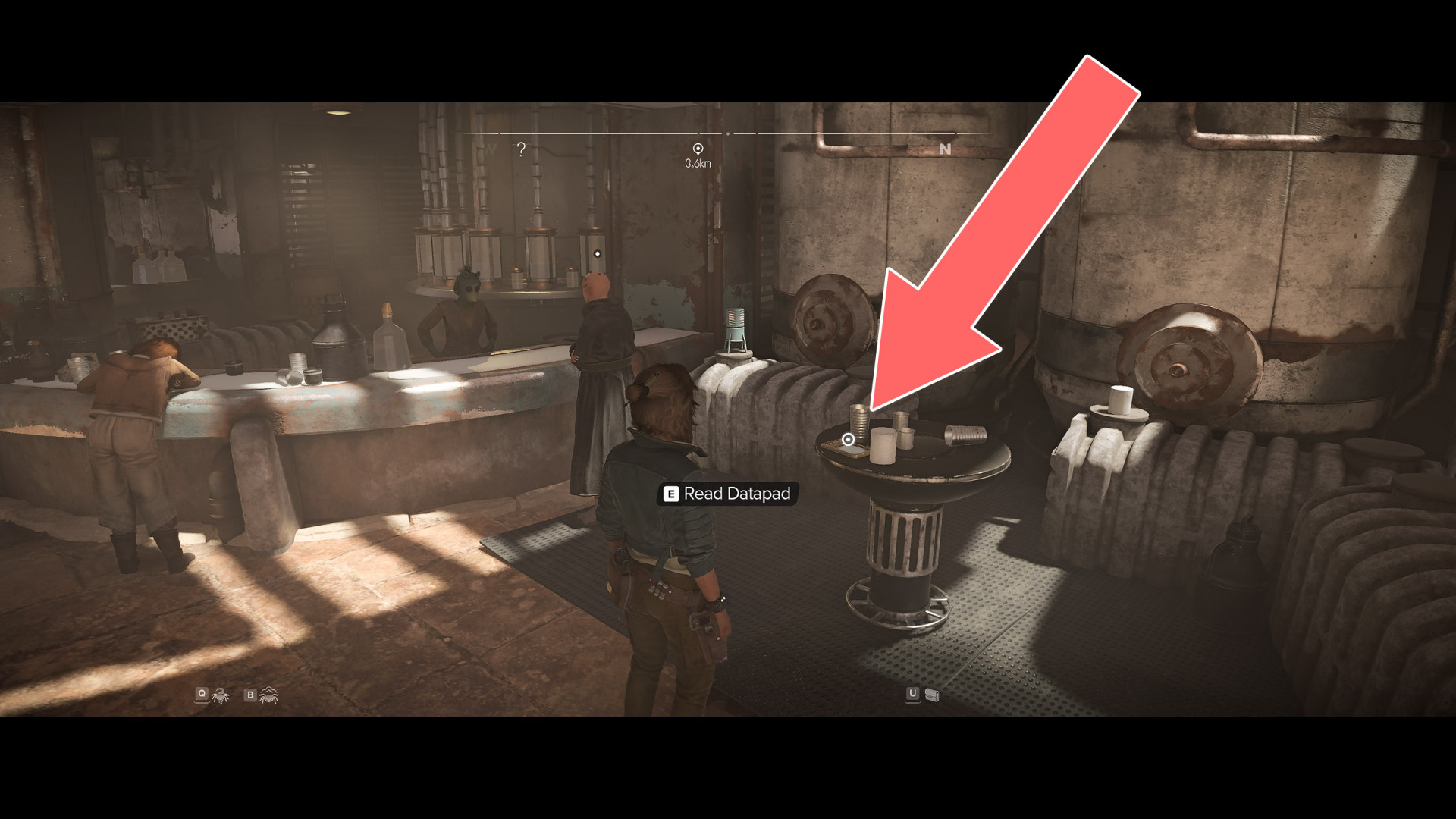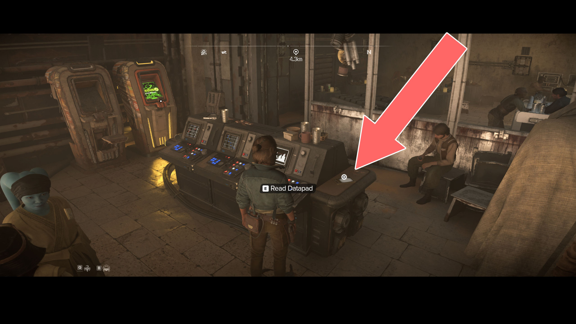 This datapad sits on one of the consoles. When you read it you will receive a new intel - Smuggler's Hideout.