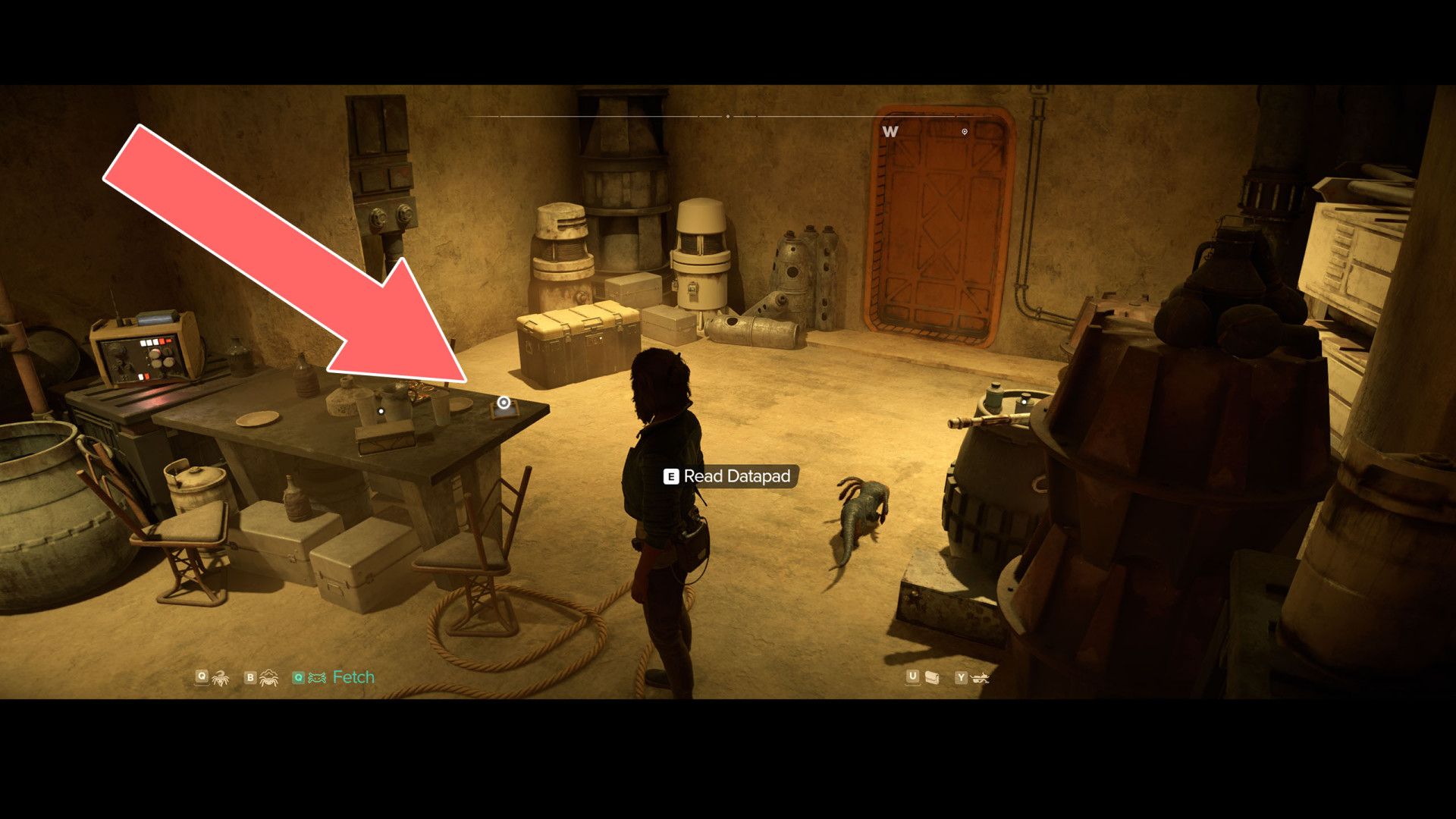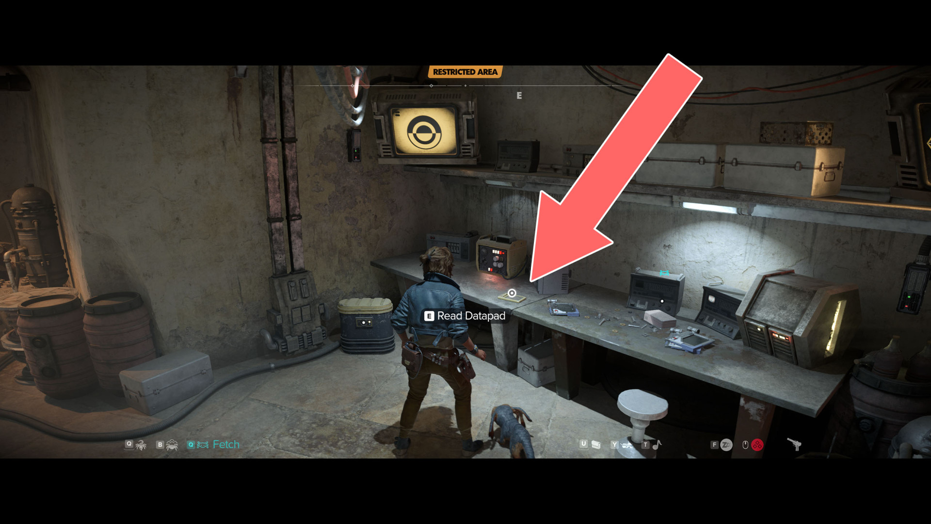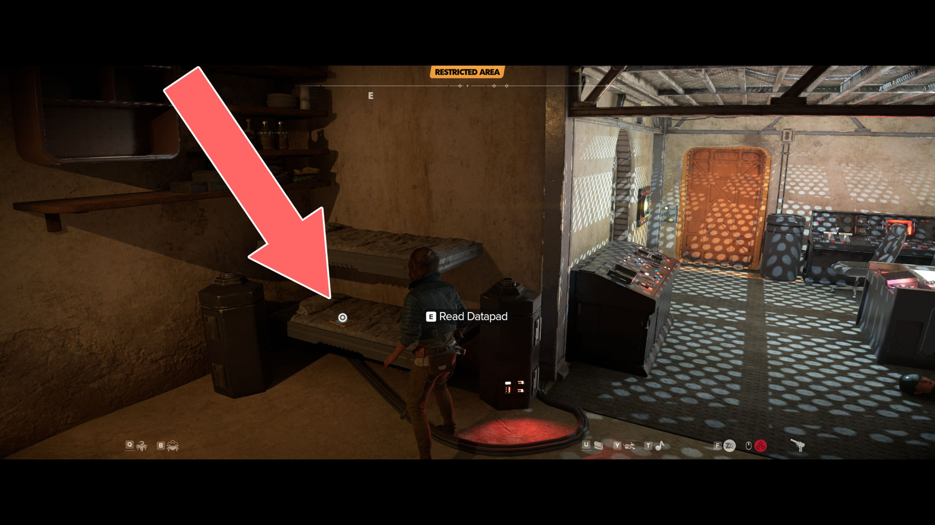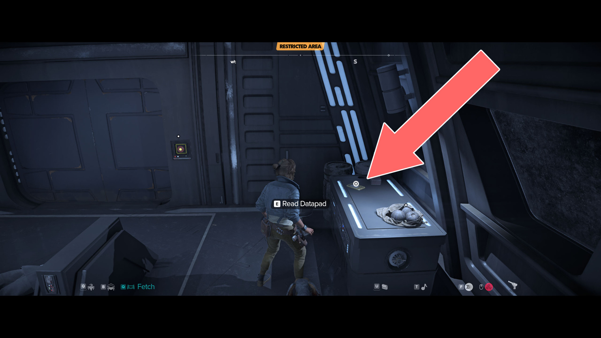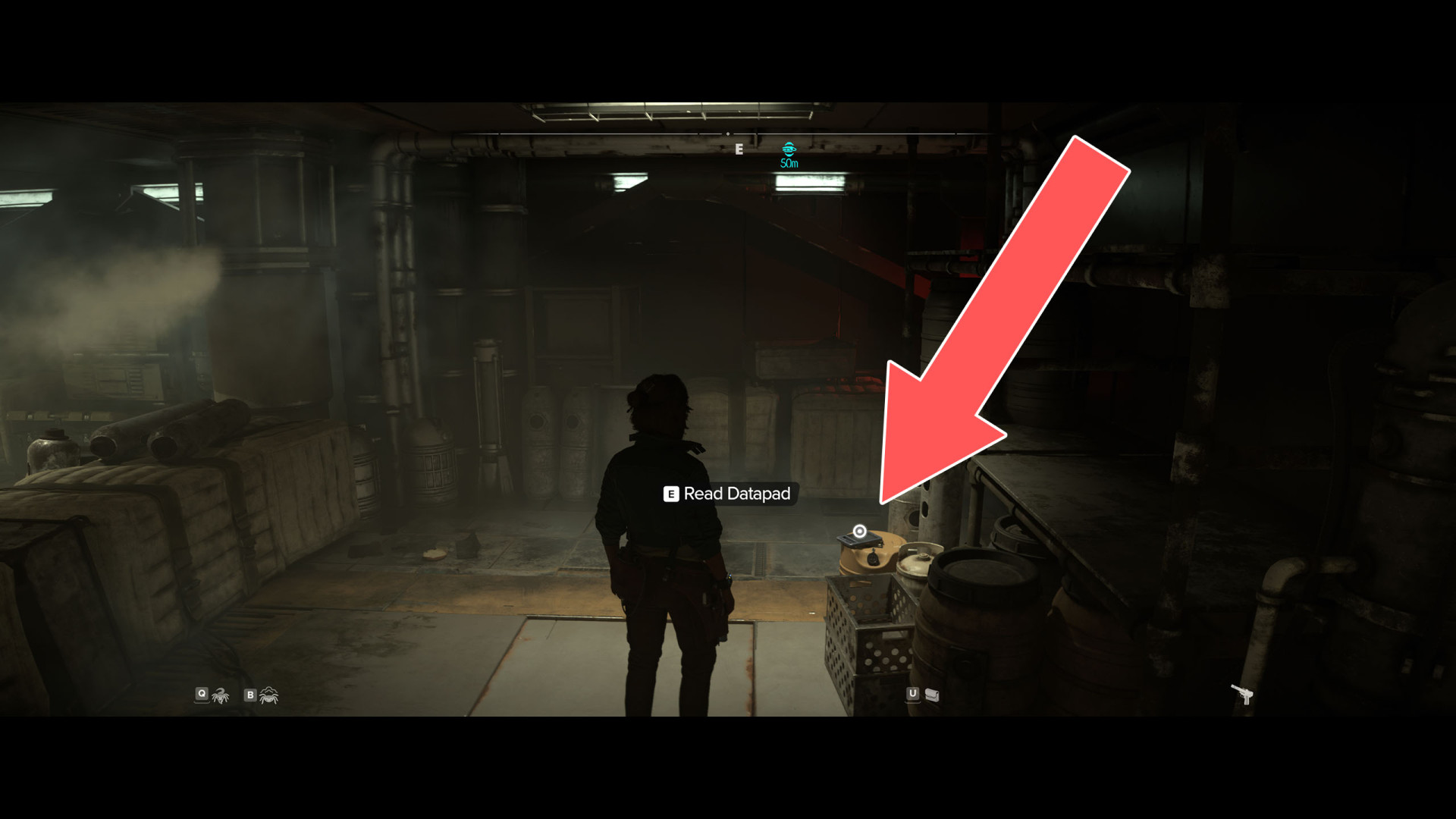 This datapad sits on one of the consoles. When you read it you will receive a new intel - Smuggler's Hideout.