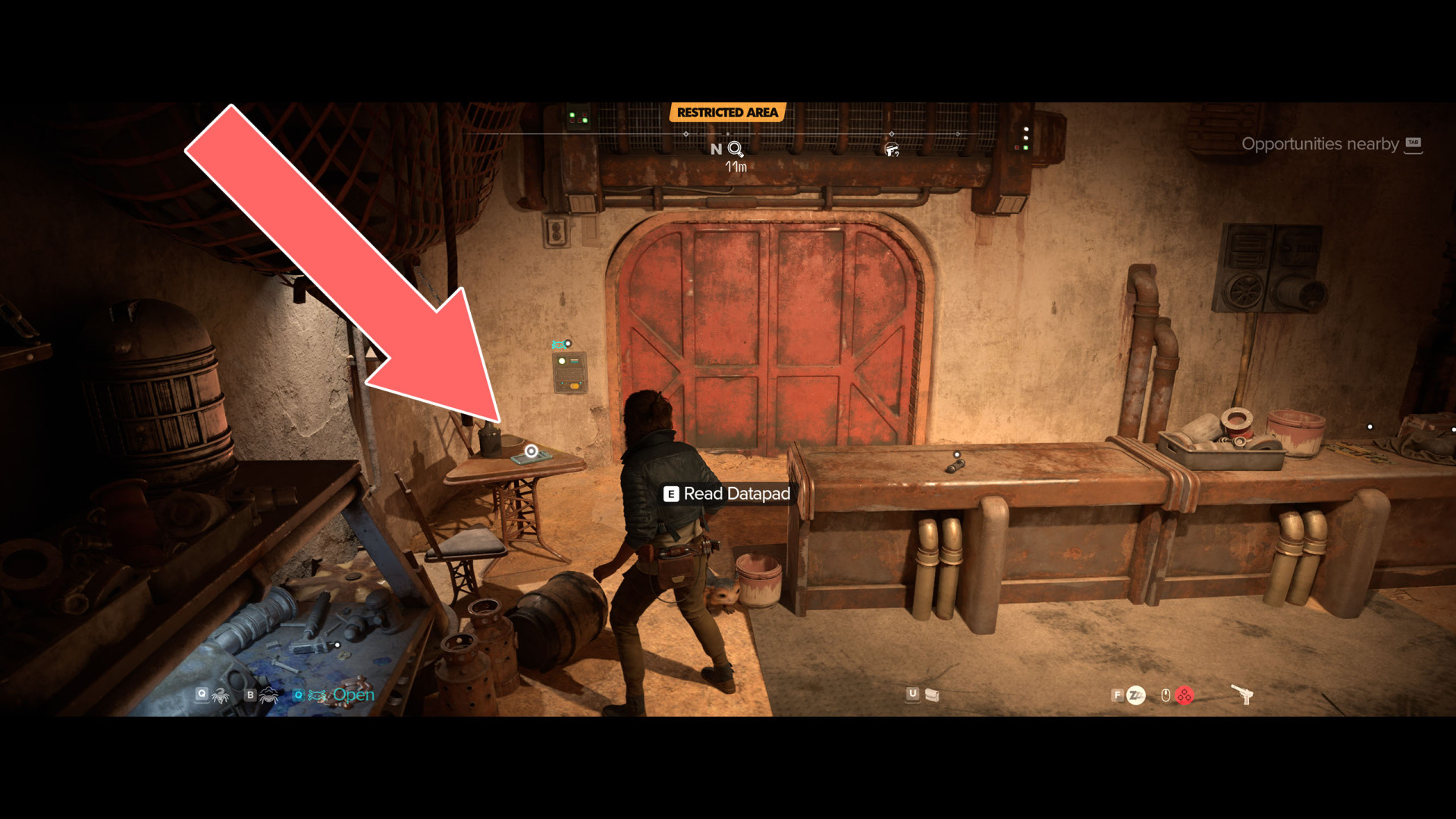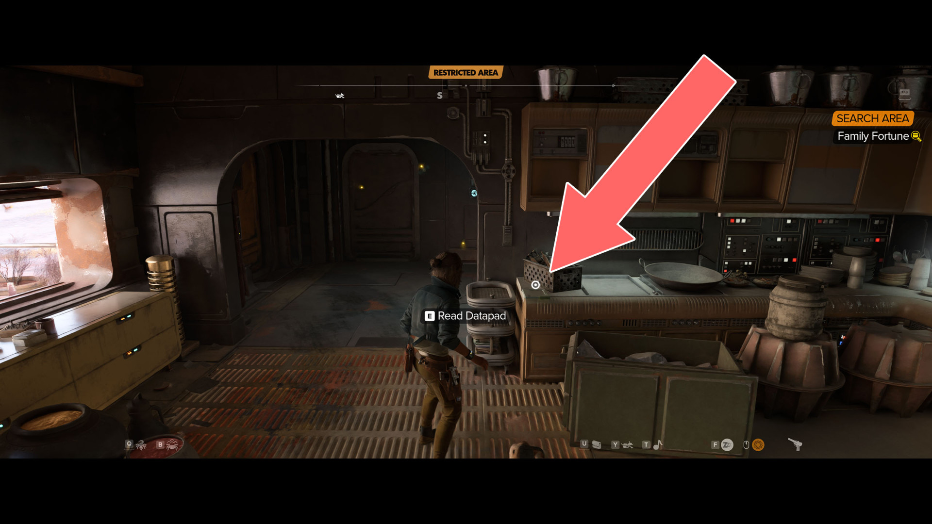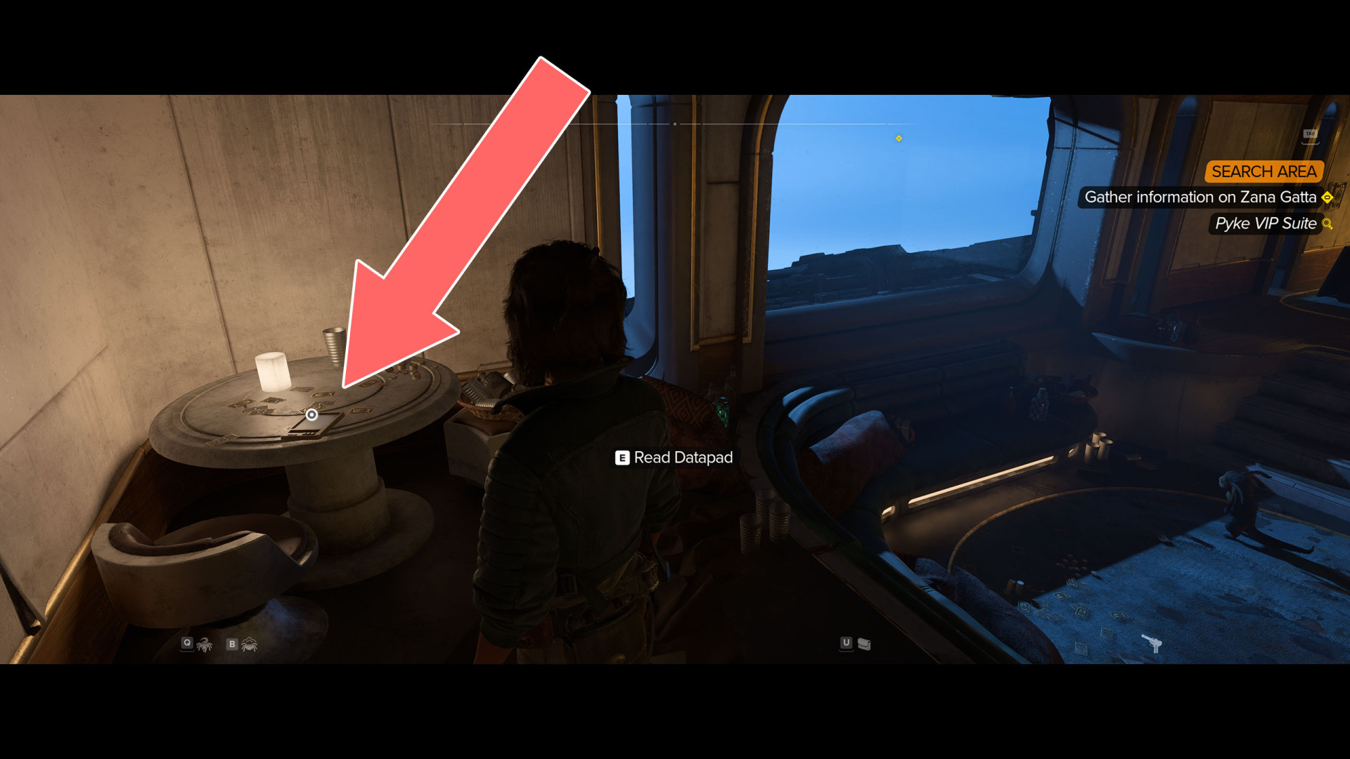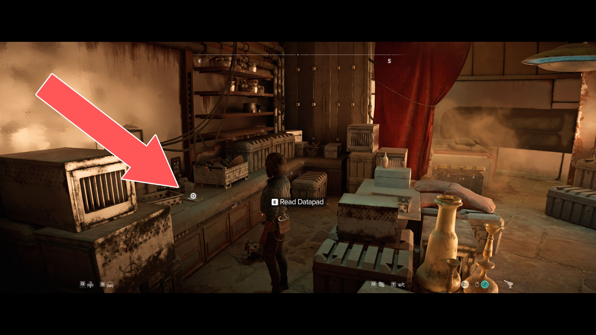 This datapad sits on one of the consoles. When you read it you will receive a new intel - Smuggler's Hideout.