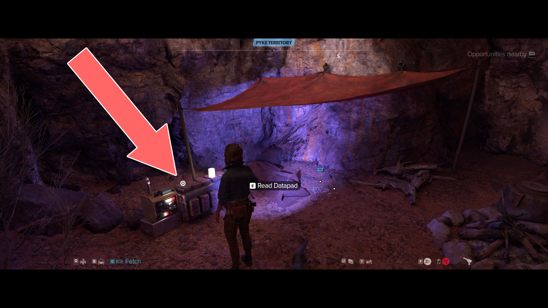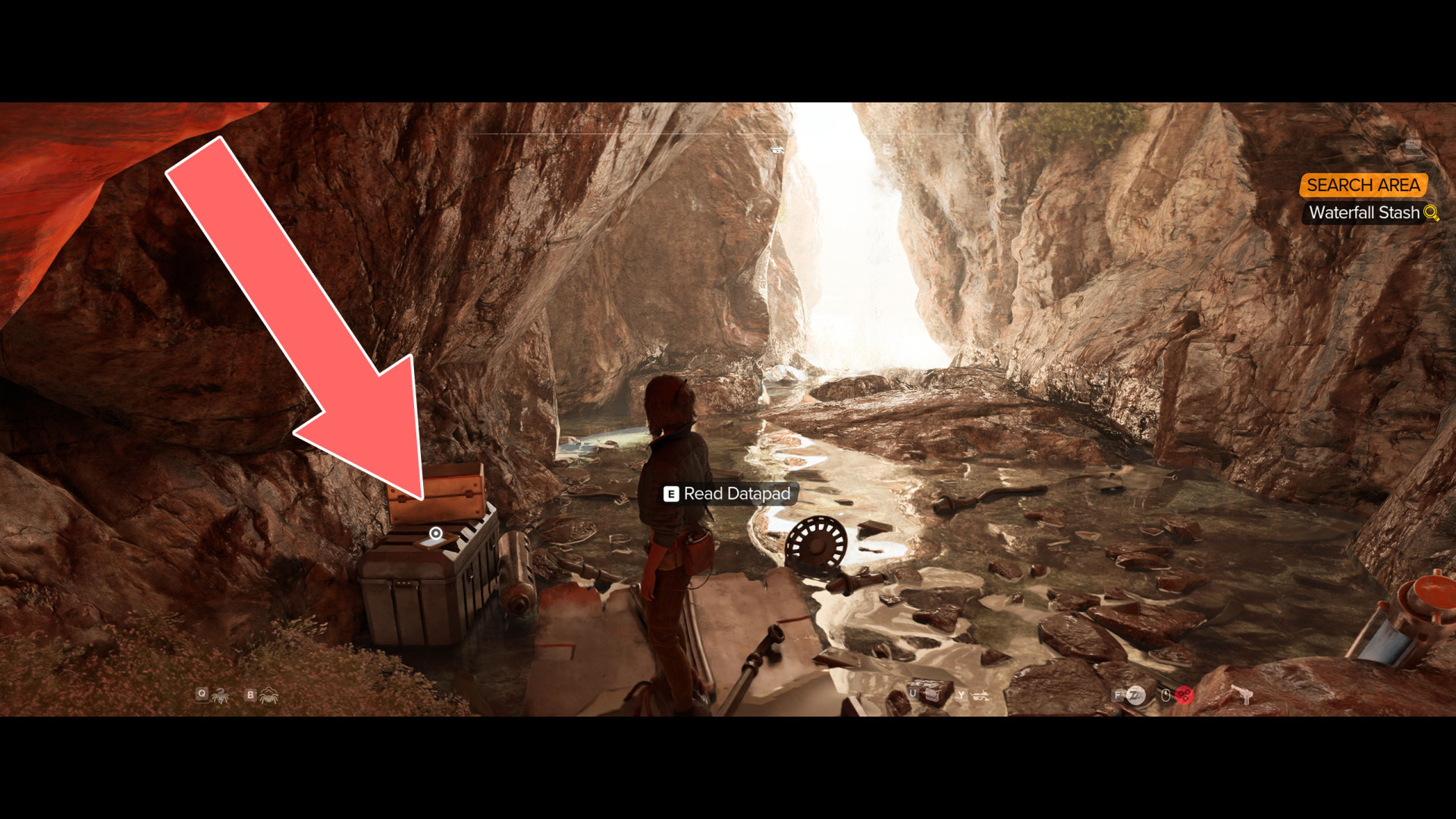 This datapad is located in a small cave hidden behind a waterfall. Read it to get ...