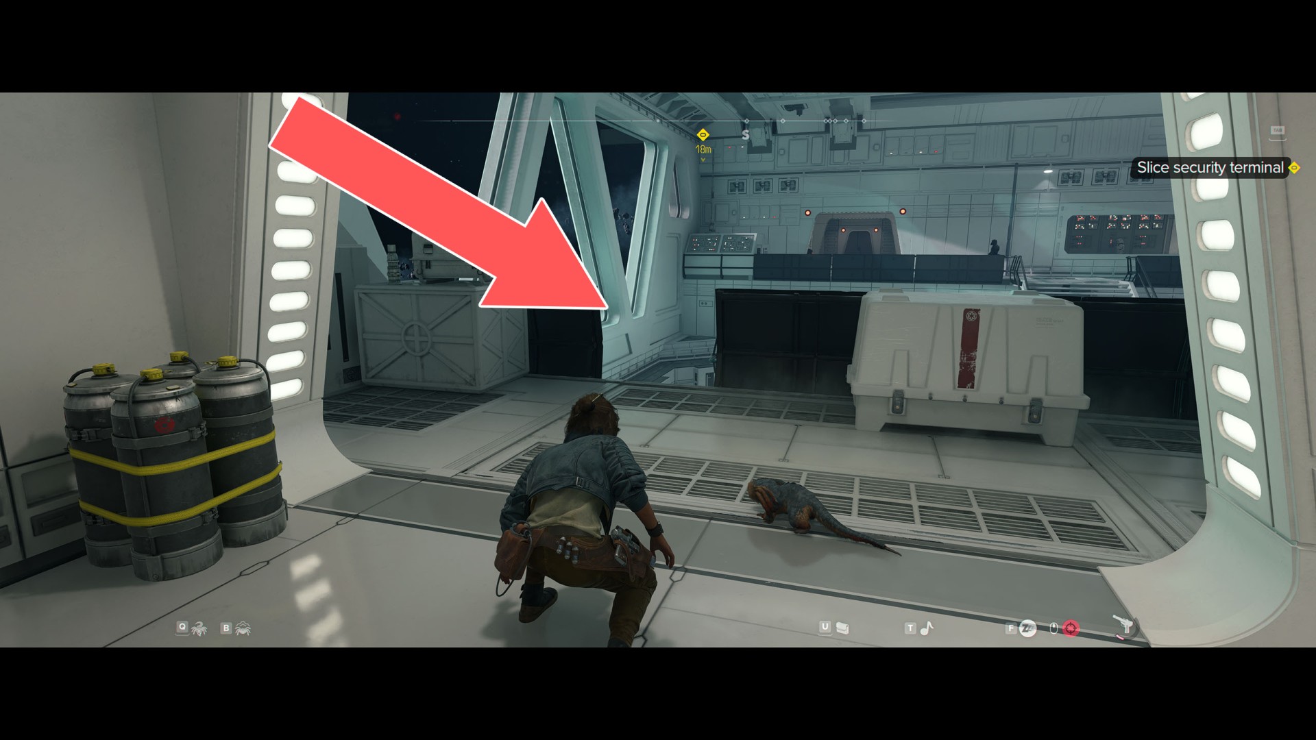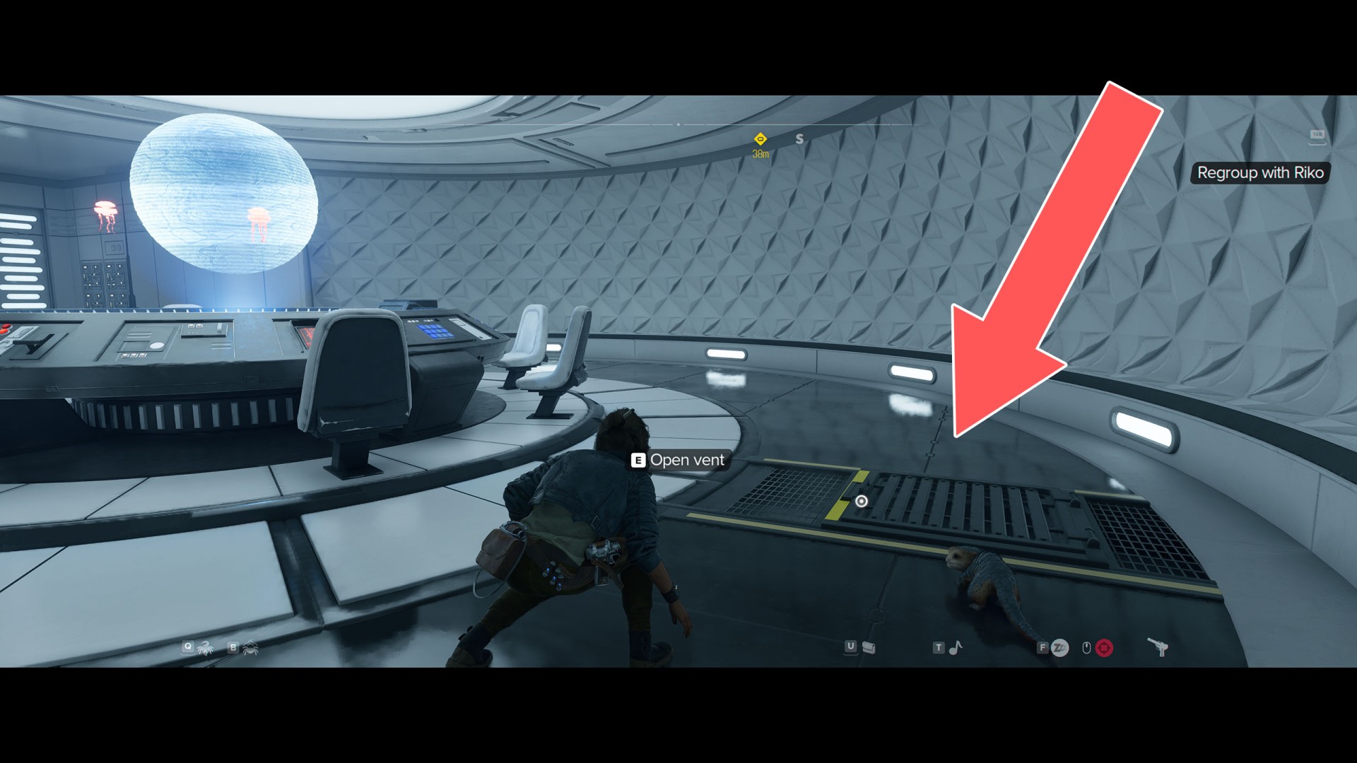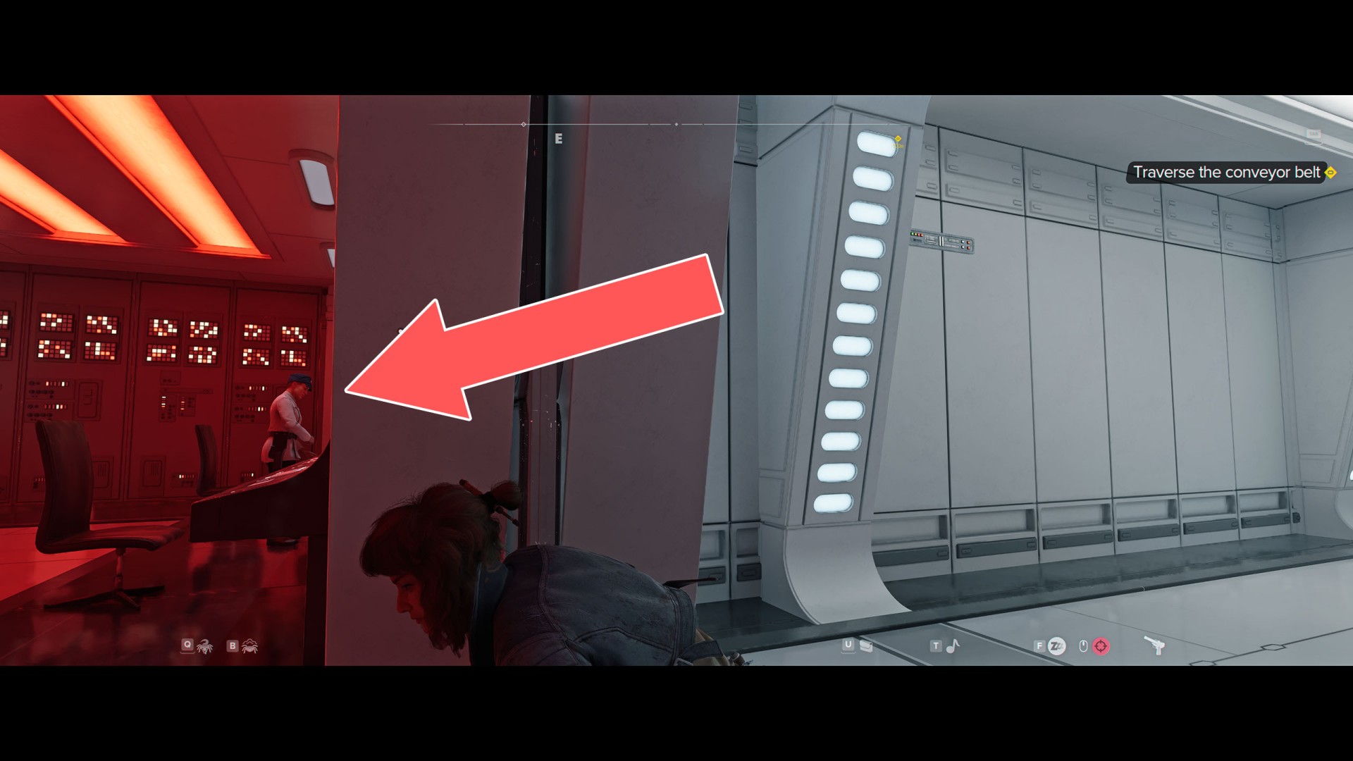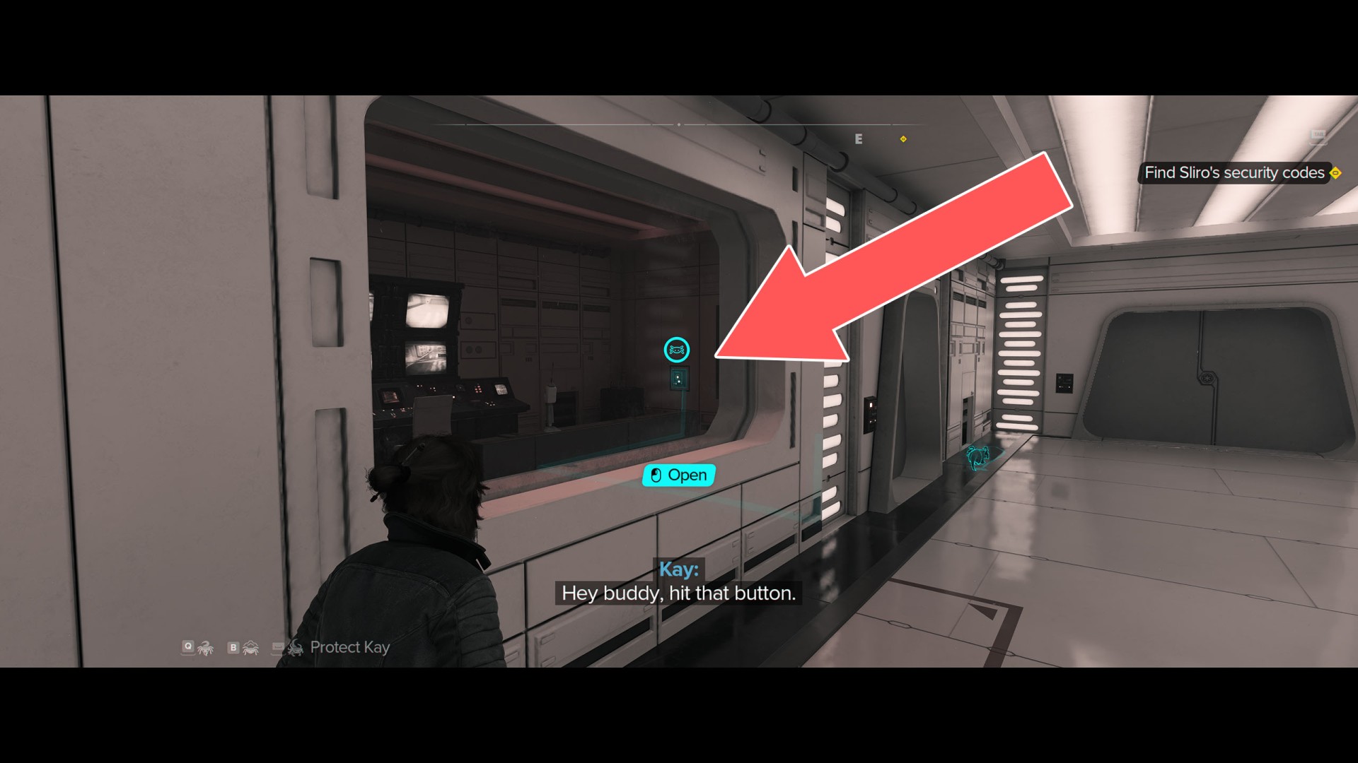 Continue going through the vents until you enter a hallway. Send Nix to press a button inside the security room on the left to open its door.